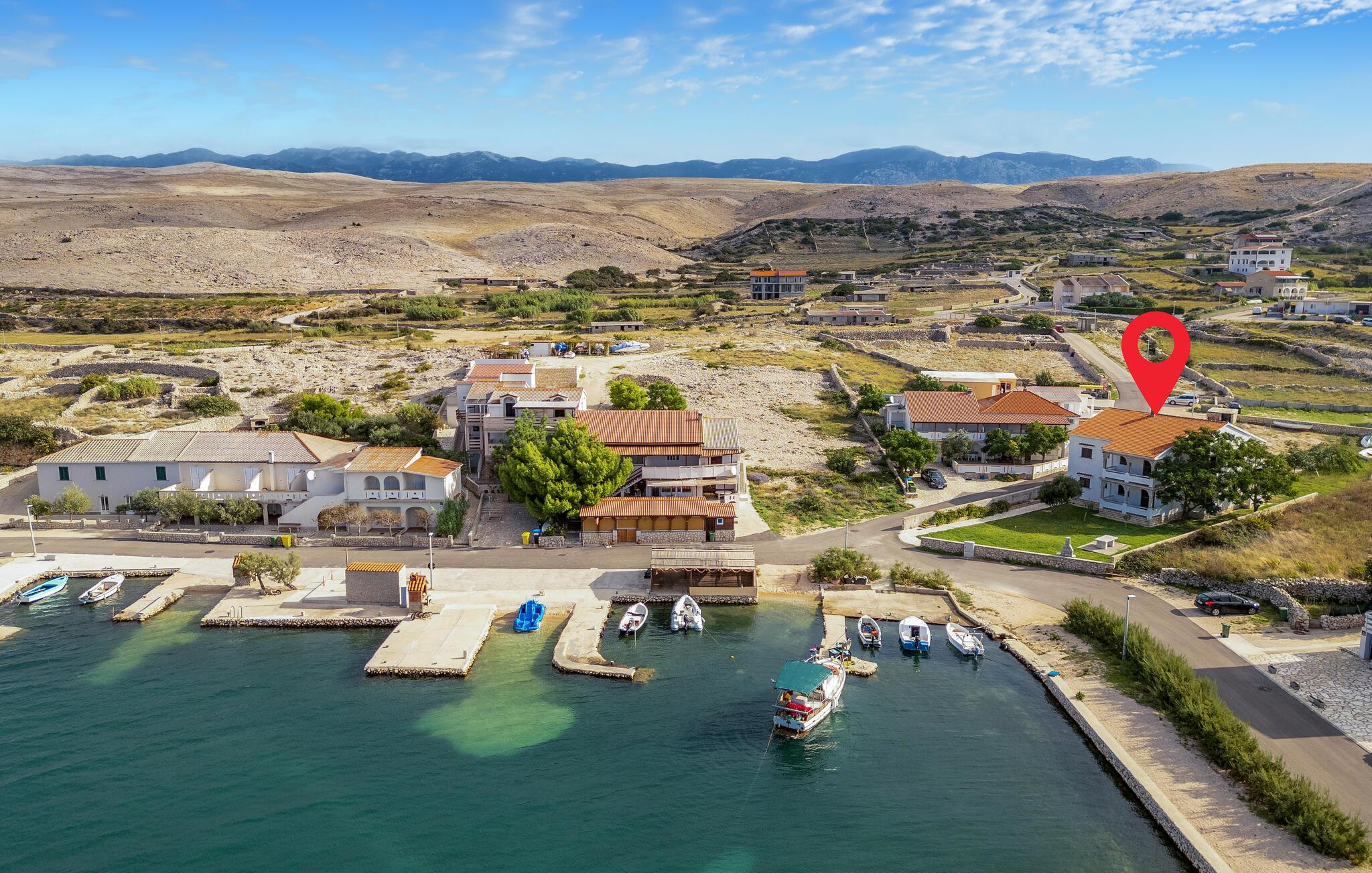 Auf einem großen Grundstück, in zweiter Wasserreihe, heißt Sie diese hübsche Ferienwohnung auf der Insel Pag willkommen.