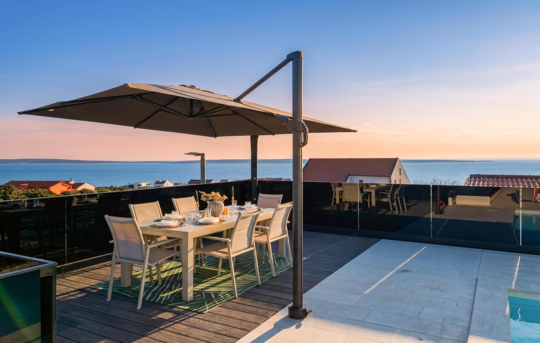 Genießen Sie stilvolle Urlaubstage mit Meerblick und privatem Pool in modernem Ambiente.