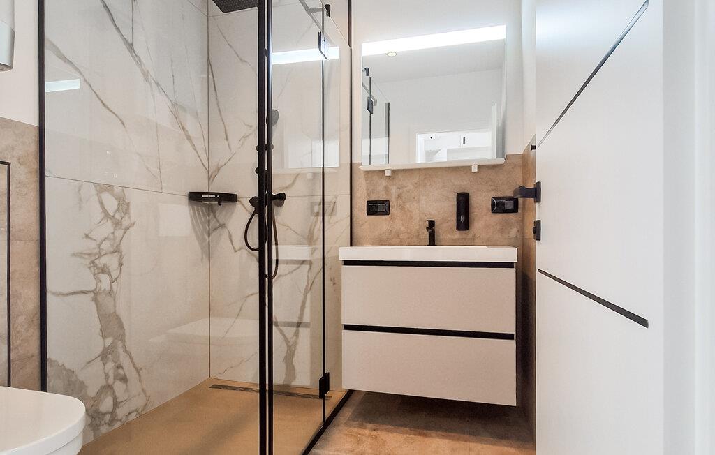 Entspannen Sie im großzügigen Wohnbereich mit bodentiefen Fenstern, abgestimmten Designelementen und direktem Blick Richtung Meer. Machen Sie es sich auf dem komfortablen Sofa gemütlich oder verbringen Sie gemeinsame Abende am großen Esstisch mit stilvollen Stühlen. Bereiten Sie in der offenen, hochwertig ausgestatteten Küche Ihre Mahlzeiten zu und ziehen Sie sich anschließend in die geschmackvoll eingerichteten Schlafzimmer zurück, die mit direktem Zugang zur Terrasse überzeugen.