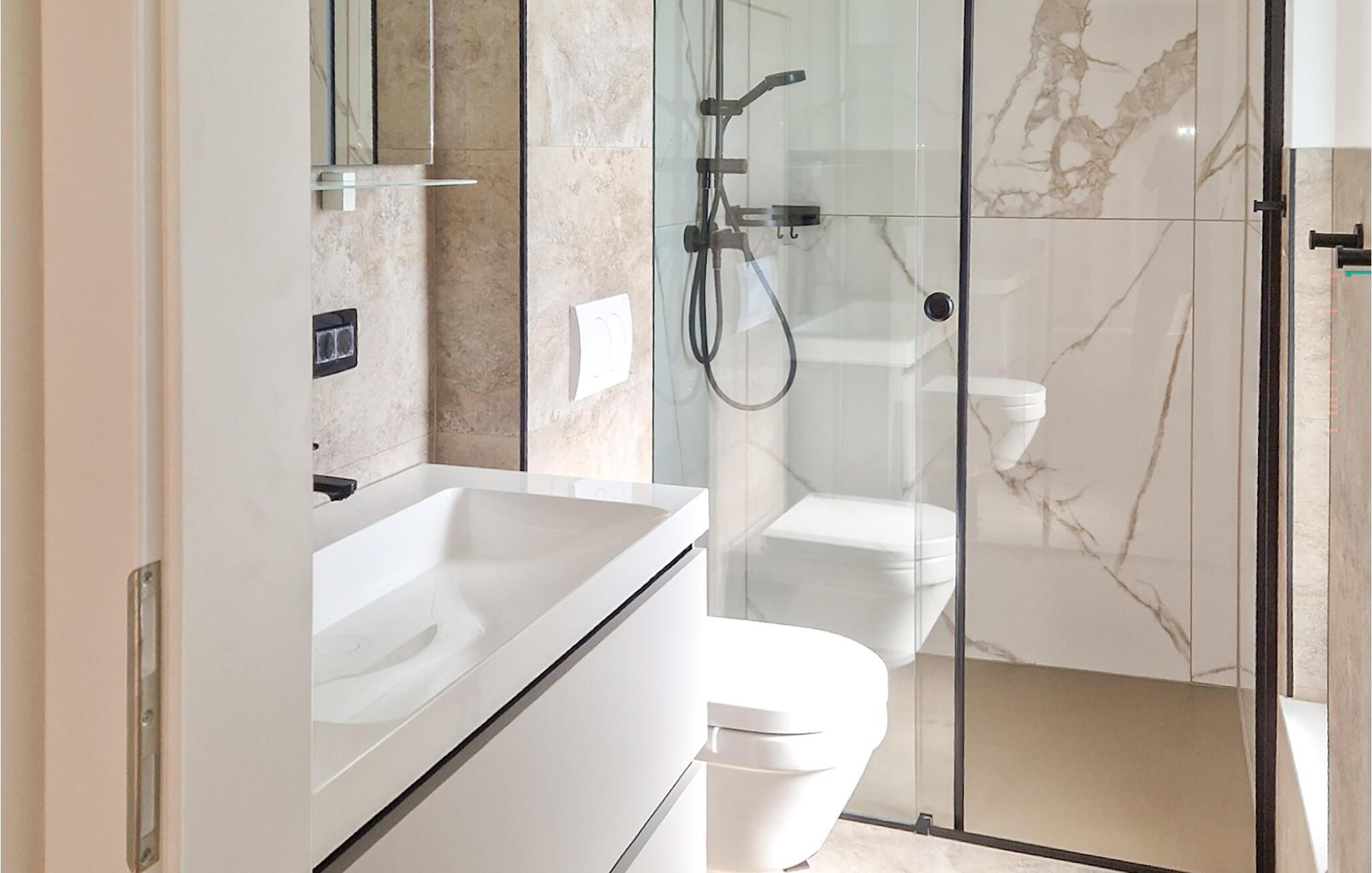 - WC mit warmem und kaltem Wasser, Dusche