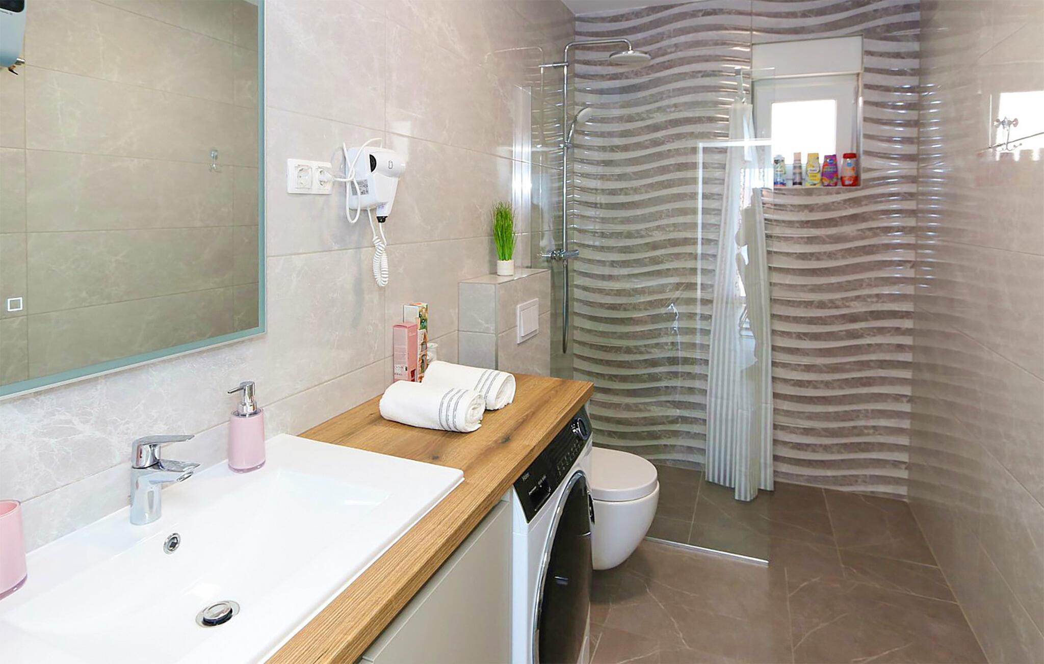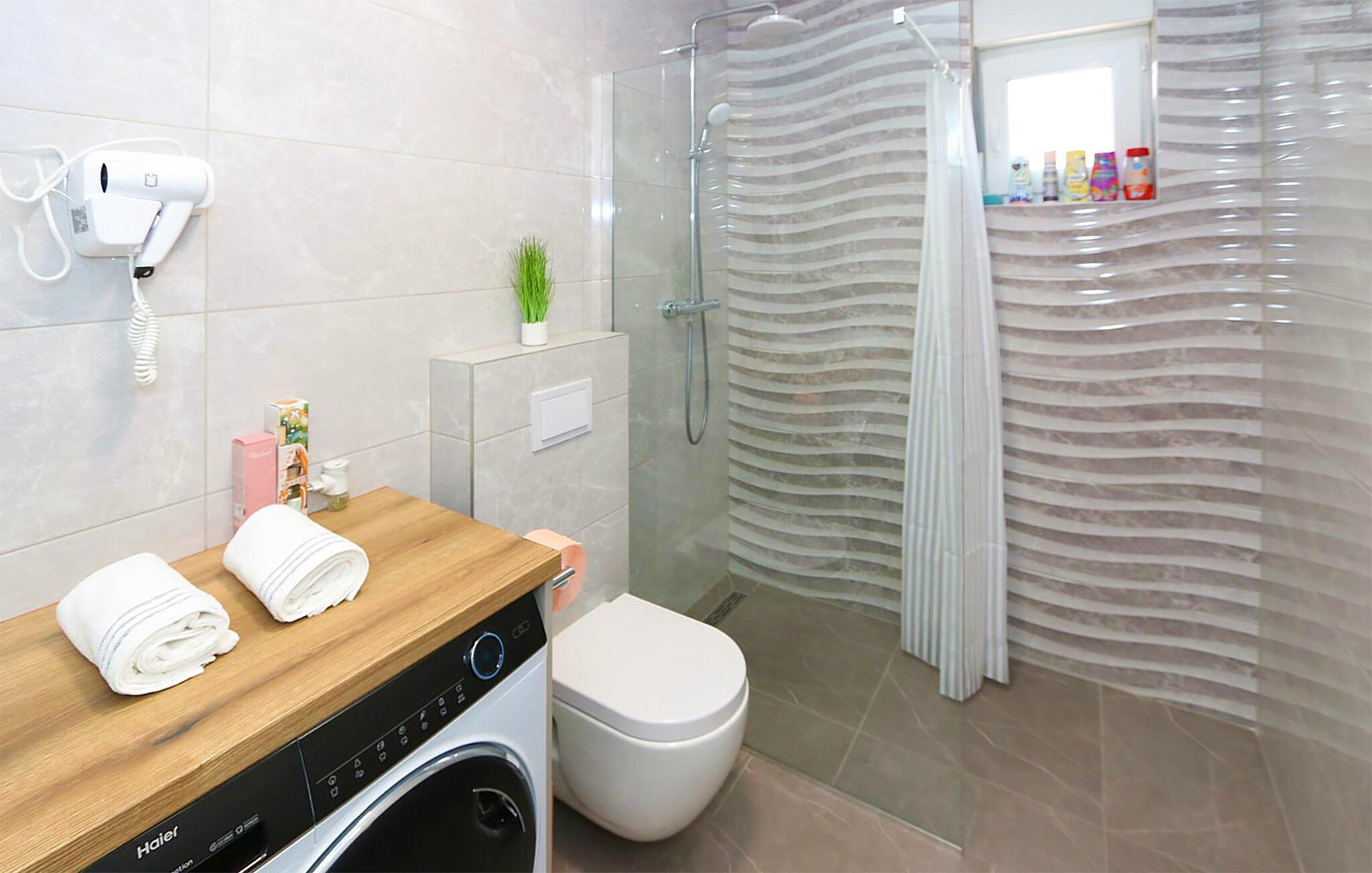 Badezimmer 7m2 (nr. 1) - WC. Warmes und kaltes Wasser. Dusche