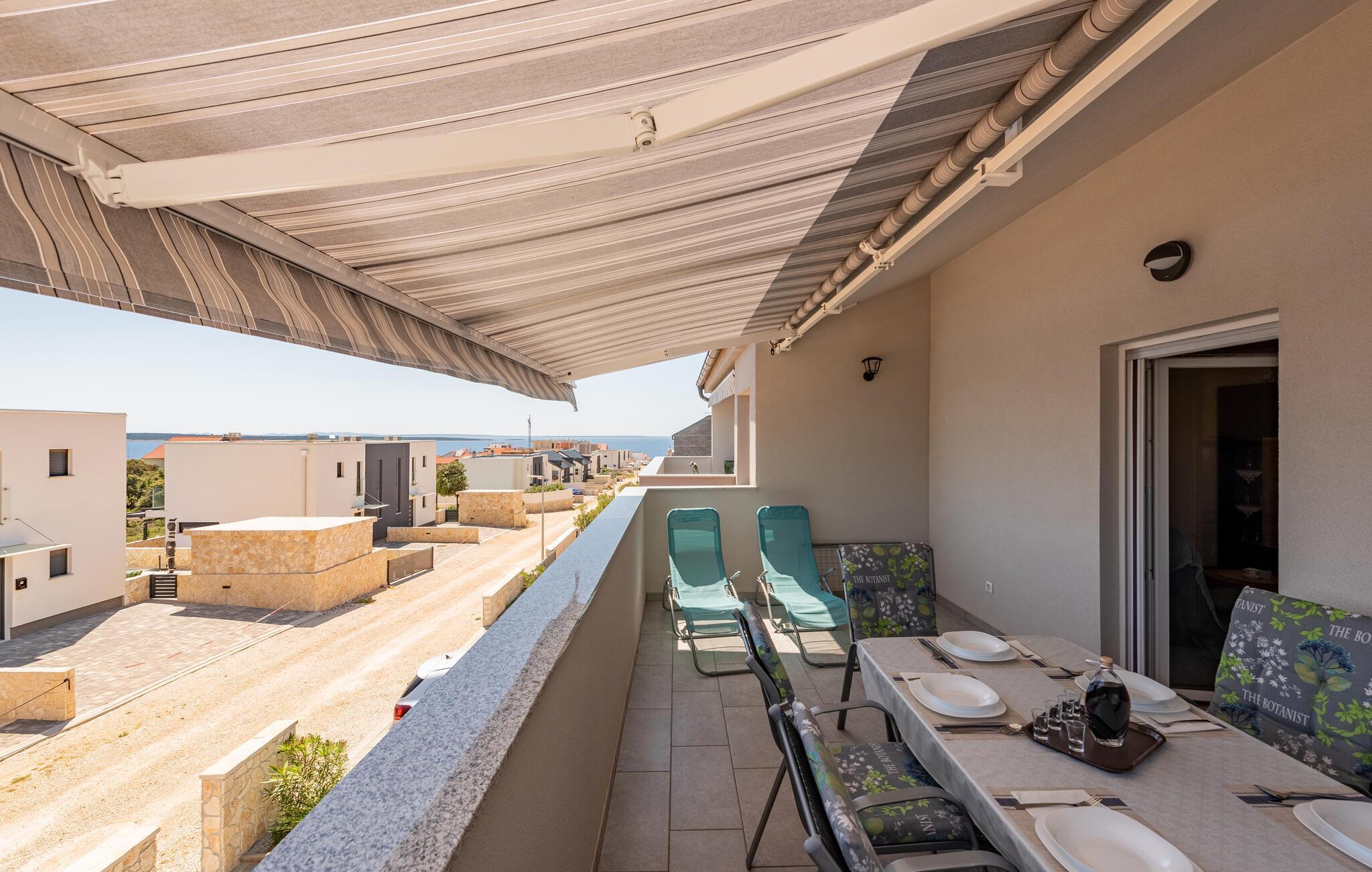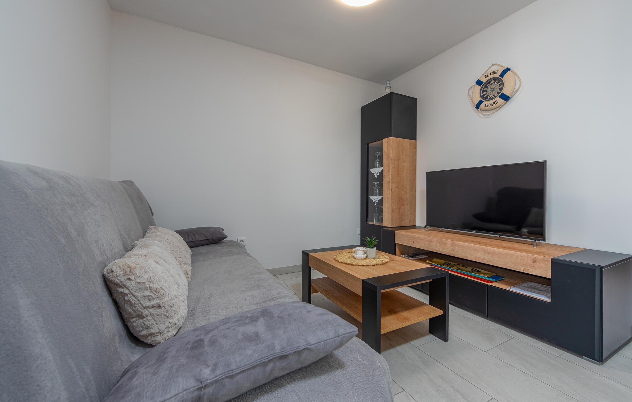 Willkommen in der einladenden Wohnung, der die schlichte Eleganz der Einrichtung eine angenehme Wohlfühlatmosphäre verleiht. Das Meer können Sie von hier aus am Horizont erblicken. Ein passender Ort, um mit der Familie die Aktivitäten des Tages zu planen. Entspannen Sie sich auch im Wohnbereich mit einem guten Buch oder bei einem spannenden Film. Hobby-Gourmets finden in der modernen Küche alles, was das Herz begehrt. Begeben Sie sich für das Frühstück auf den Balkon, der zum Verweilen und Relaxen einlädt. Erfreuen Sie die ganze Familie mit einem leckeren Essen vom Grill auf der Terrasse.