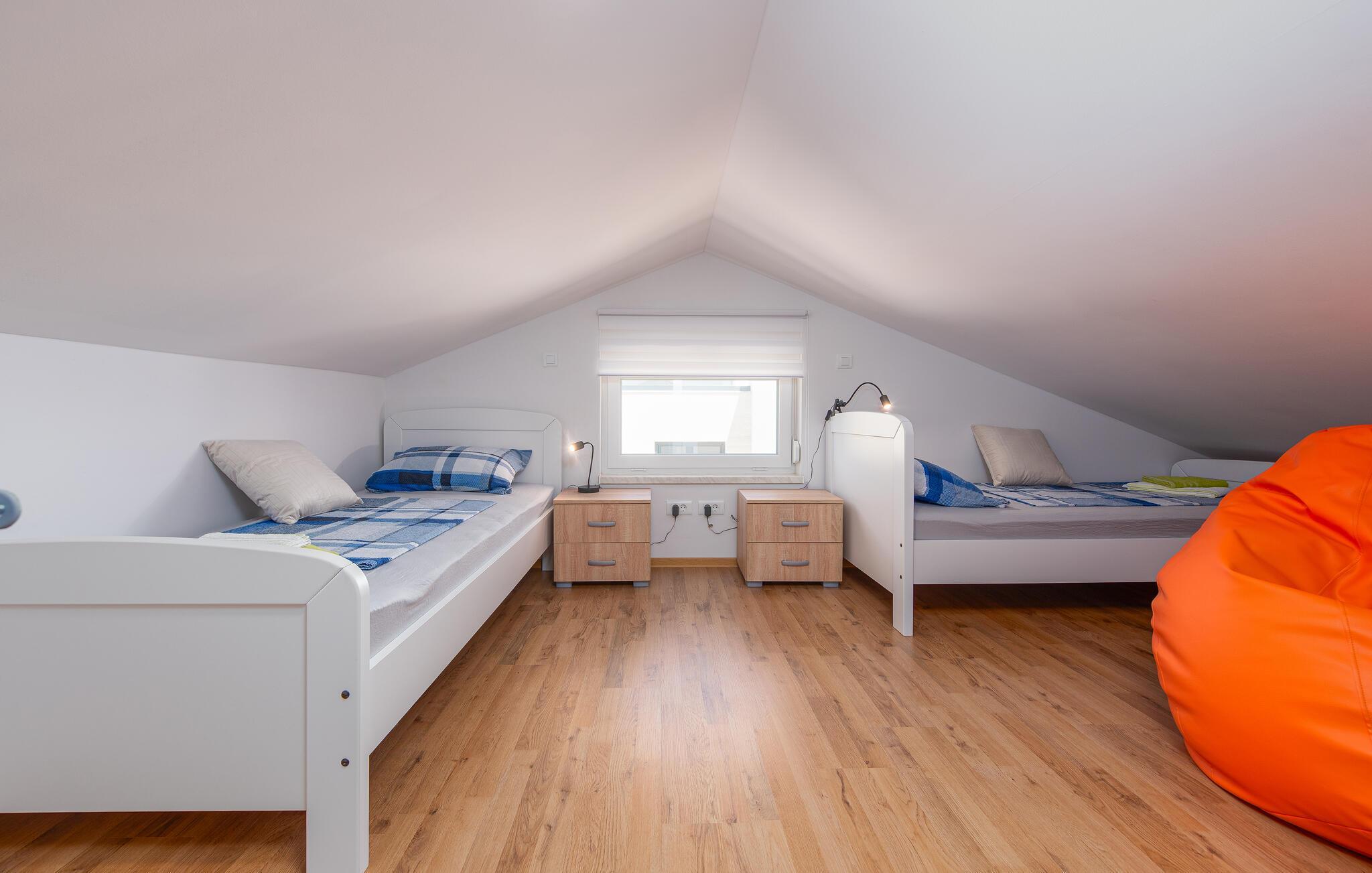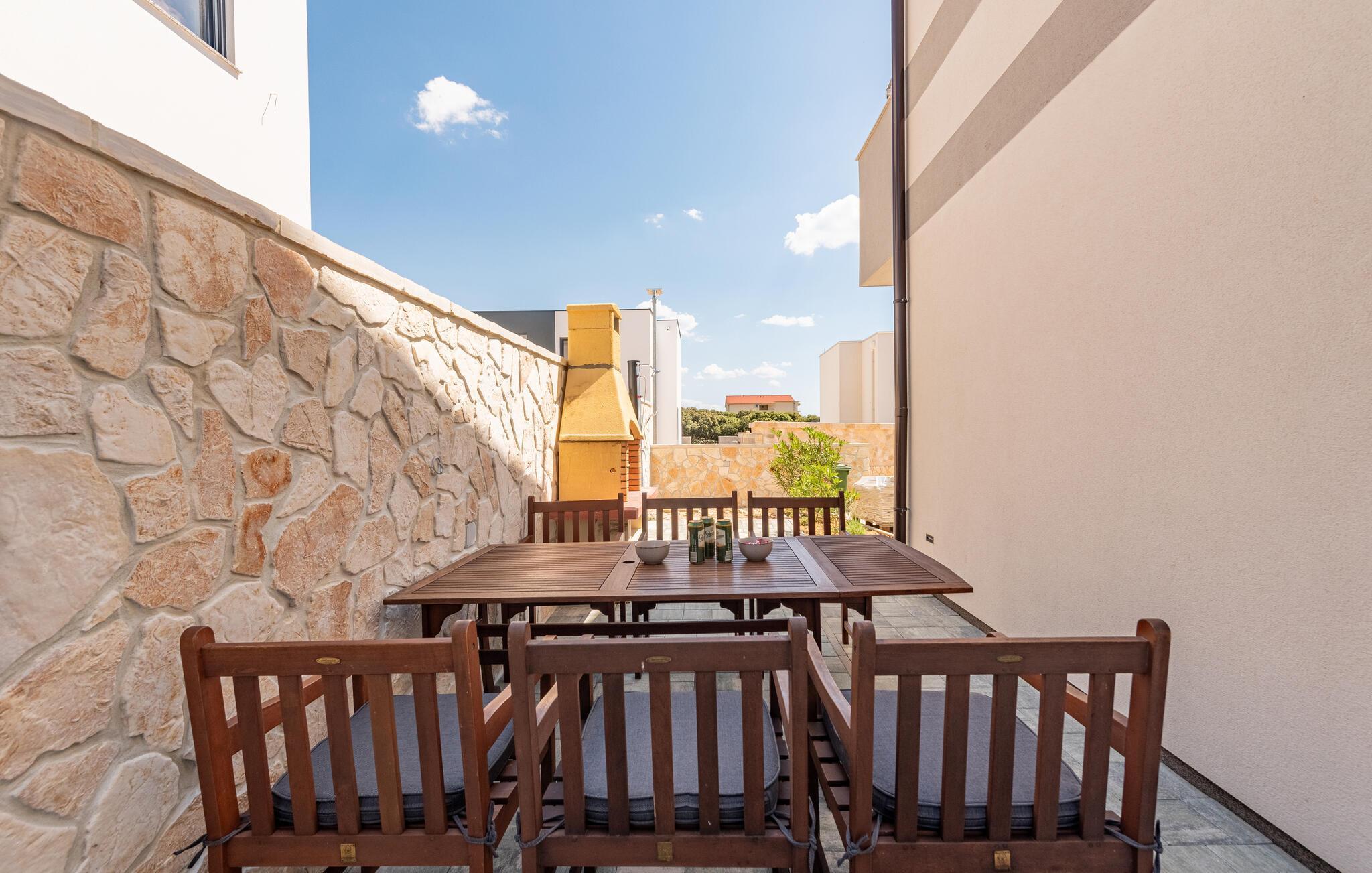 Von hier aus haben Sie es nicht weit zu verschiedenen Stränden. Finden Sie den Strand, der Ihnen und Ihrer Familie am besten passt, und vergnügen Sie sich einen schönen langen Urlaubstag lang im Wasser. Im nahe gelegenen Ort Novalja, auch an der kroatischen Adria gelegen, empfängt Sie das schöne Stadtzentrum und die vielen Palmen an der Uferpromenade. Machen Sie hier ausgiebige Spaziergänge und besuchen Sie dabei auch eine der historischen Kirchen des Ortes.
