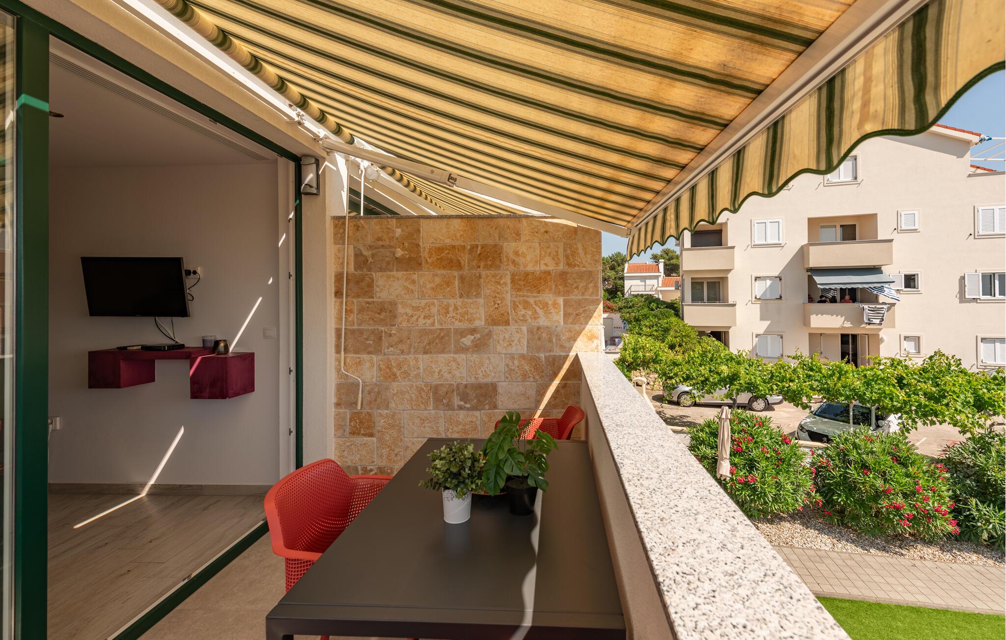 Frühstücken Sie bei einer sanften Meeresbrise auf Ihrem sonnigen Balkon und genießen Sie die Aussicht. Nutzen Sie den Gemeinschaftsgrill für stimmungsvolle Abende unter dem Sternenhimmel.