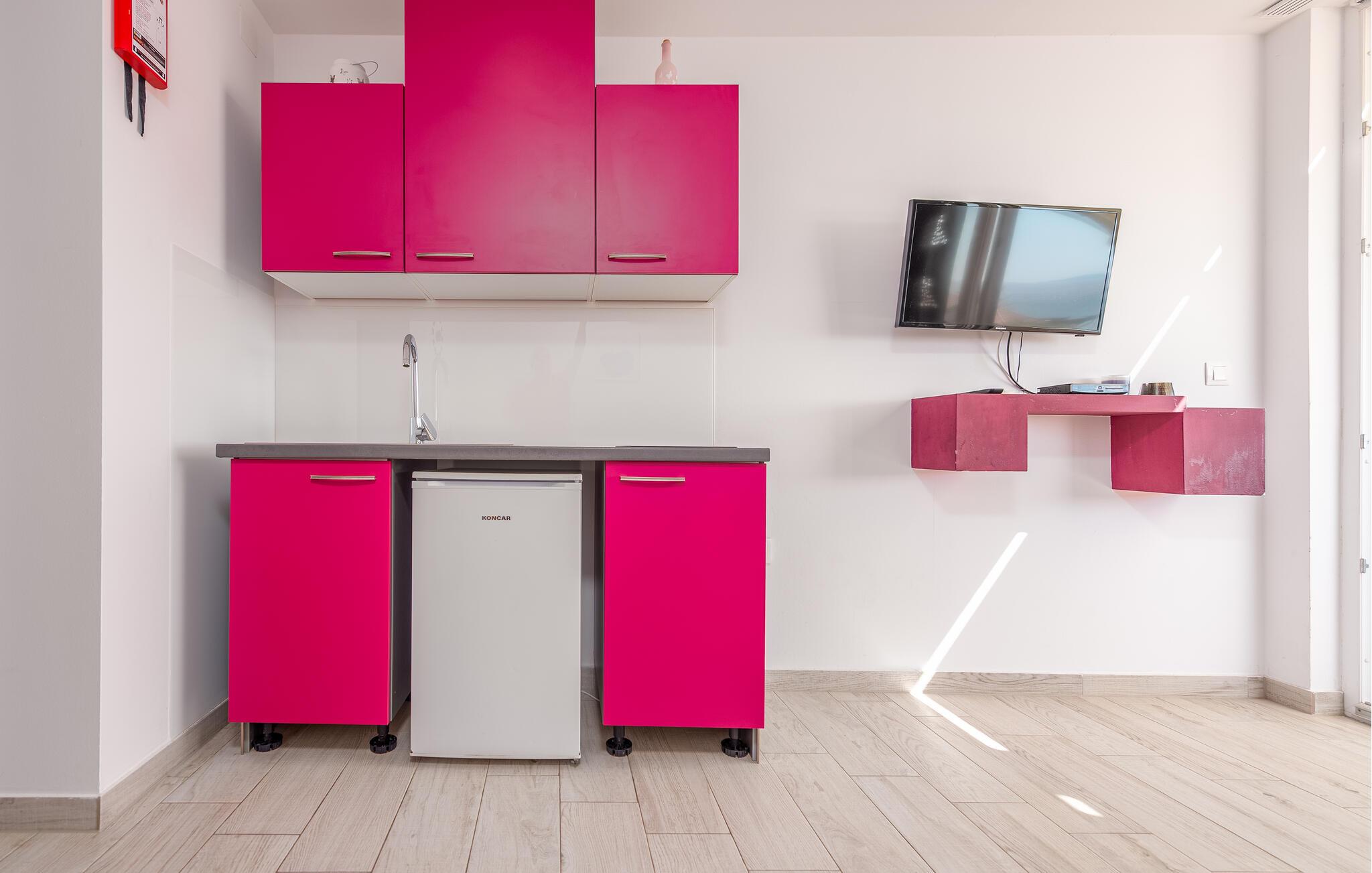 The kitchen has hot and cold water