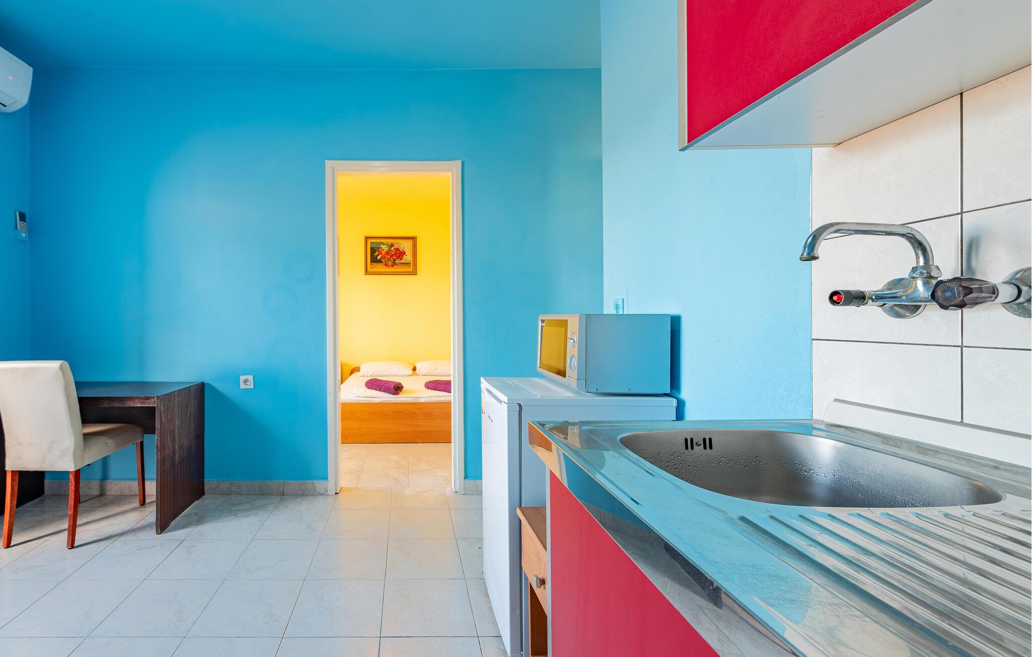 Nur wenige Schritte vom nächsten Sandstrand entfernt, erwartet Sie diese praktische Unterkunft zu einem unkomplizierten Badeurlaub mit gutem Essen und naturnaher Umgebung. Die helle Ferienwohnung ist kompakt, funktional und bietet Ihnen alles, was Sie für entspannte Urlaubstage benötigen. Bereiten Sie in der kleinen Küchenzeile leichte Mahlzeiten und Snacks für Ihre Ausflüge zu. Entspannen Sie anschließend auf dem Sofa und lassen Sie die Seele baumeln.