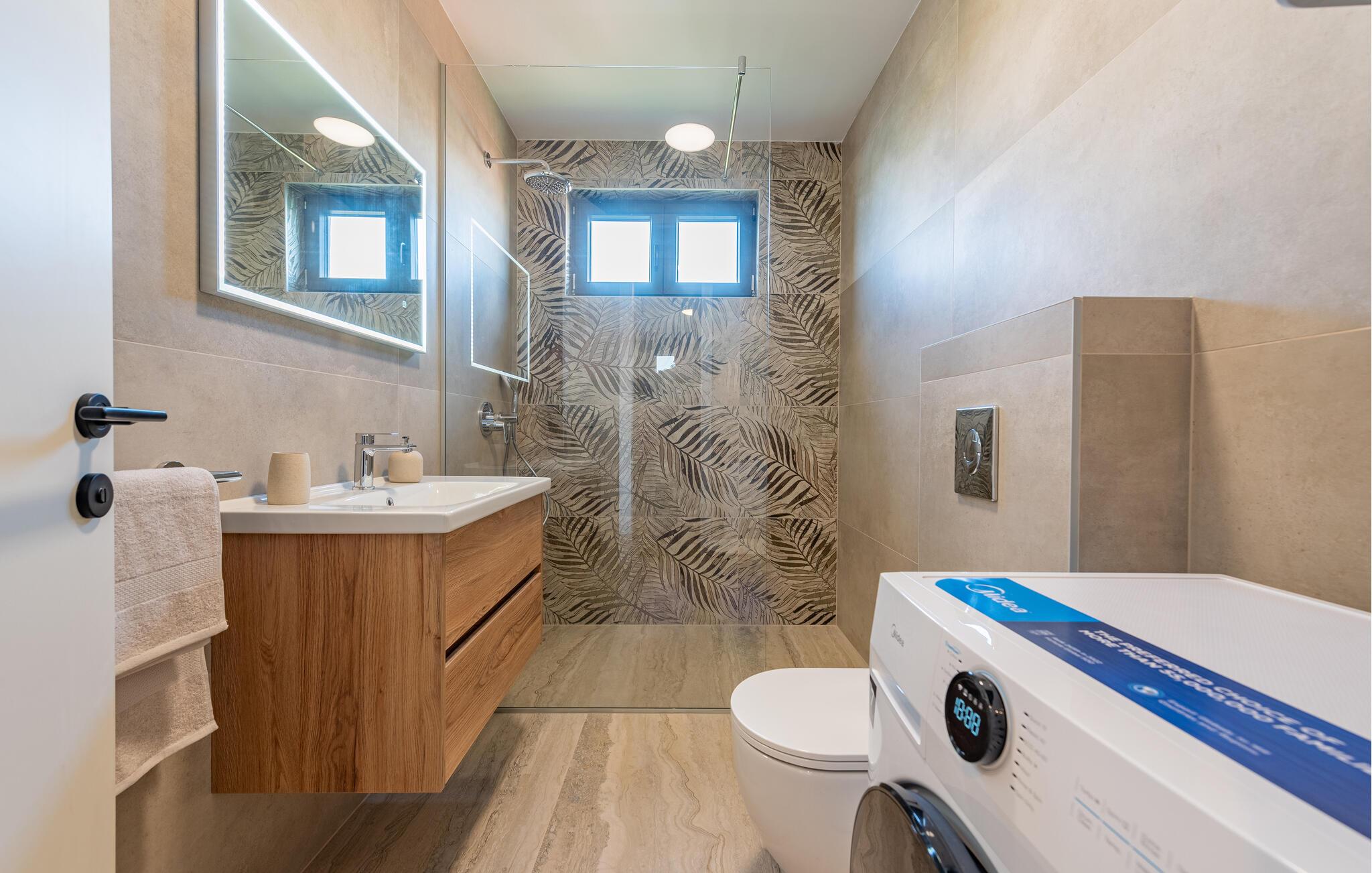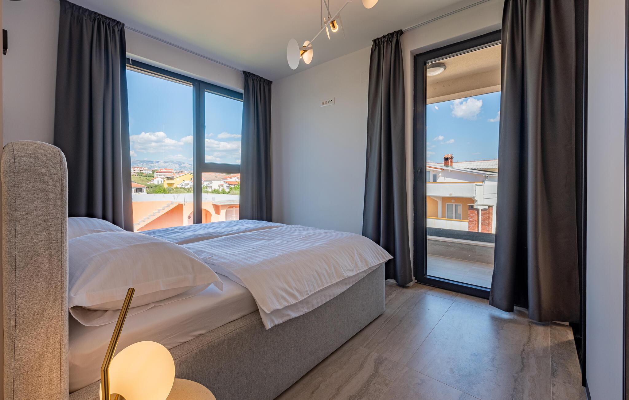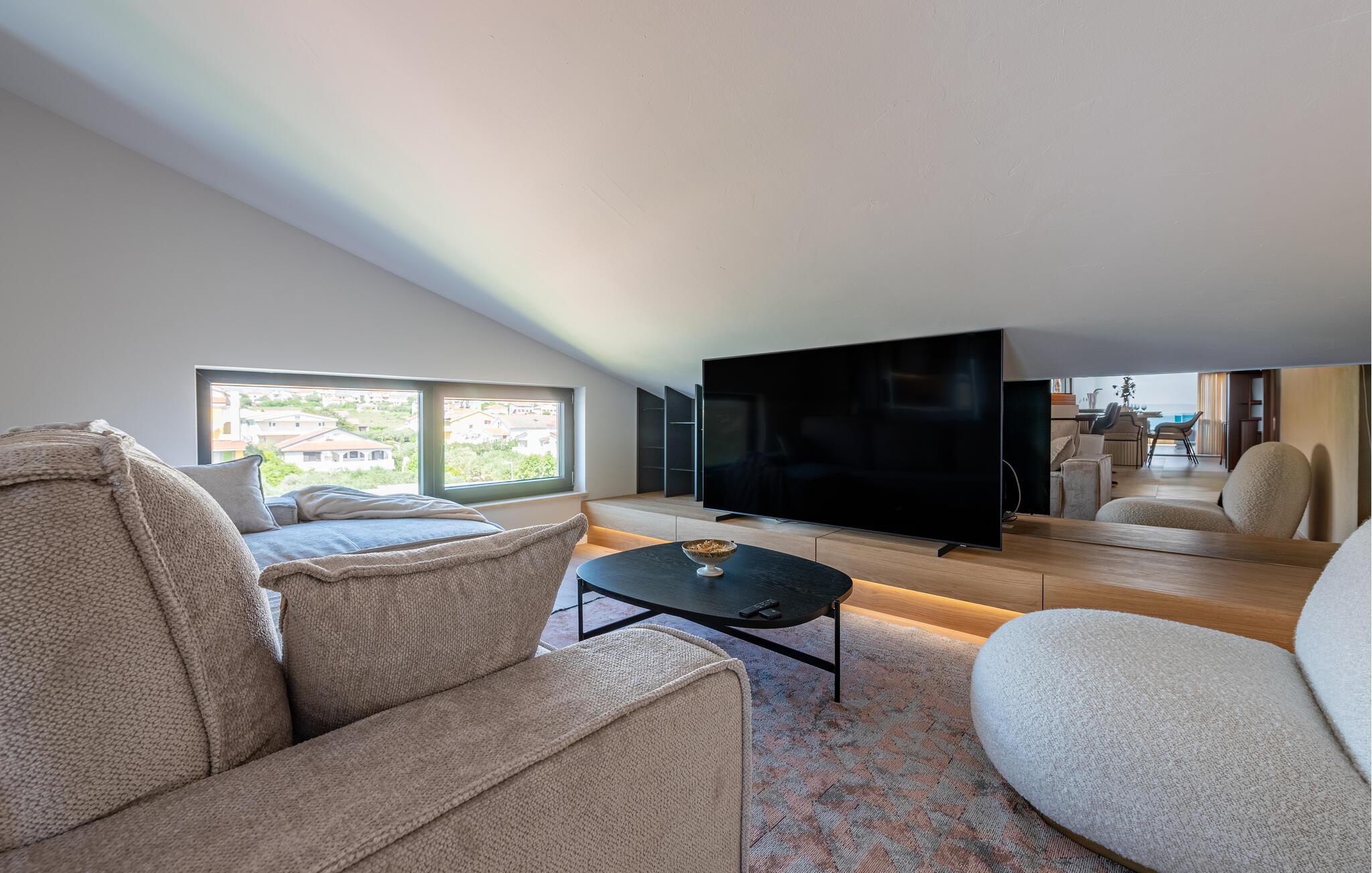 Willkommen in dieser zweistöckigen und wunderschönen Ferienwohnung, die Sie nicht nur mit ihrer fantastischen Einrichtung, hochwertigem Design und großartigem Design begeistern wird, sondern auch mit dem traumhaften Meerblick, den Sie von beiden Terrassen genießen können. Gemeinsames Kochen wird in der Luxusküche zu einem Genuss, ebenso das Entspannen auf dem gemütlichen Sofa. Wellnessliebhaber können sich im Whirlpool Ihre Muskeln massieren lassen und dabei auf das Meer blicken und die Seele baumeln lassen. Am Abend können Sie hier die Sonnenuntergänge verfolgen und sich an den Farben am Himmel erfreuen.