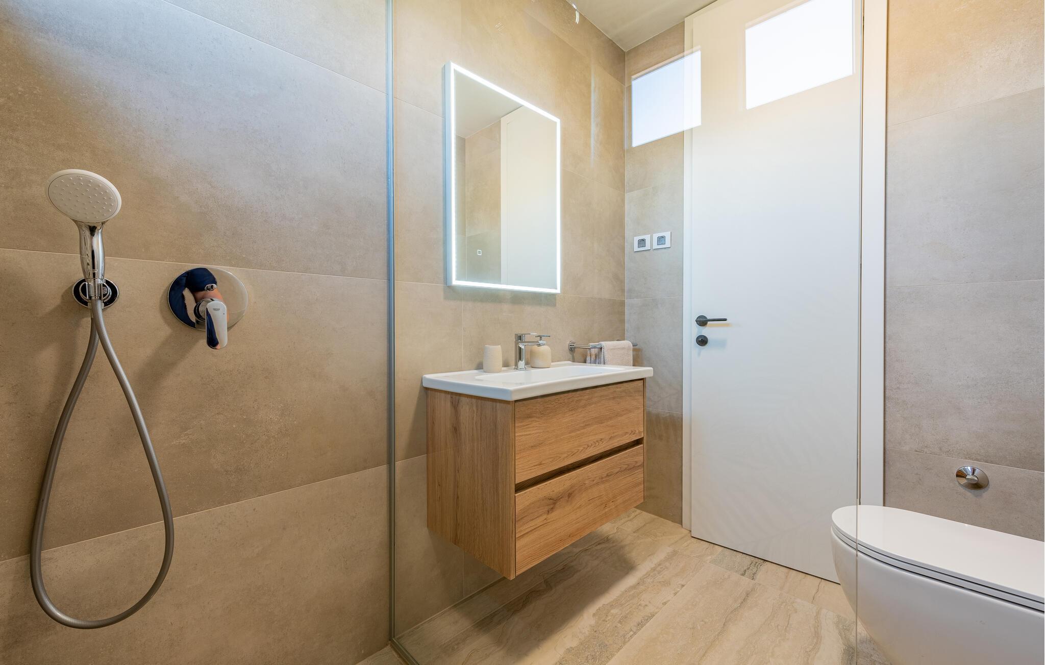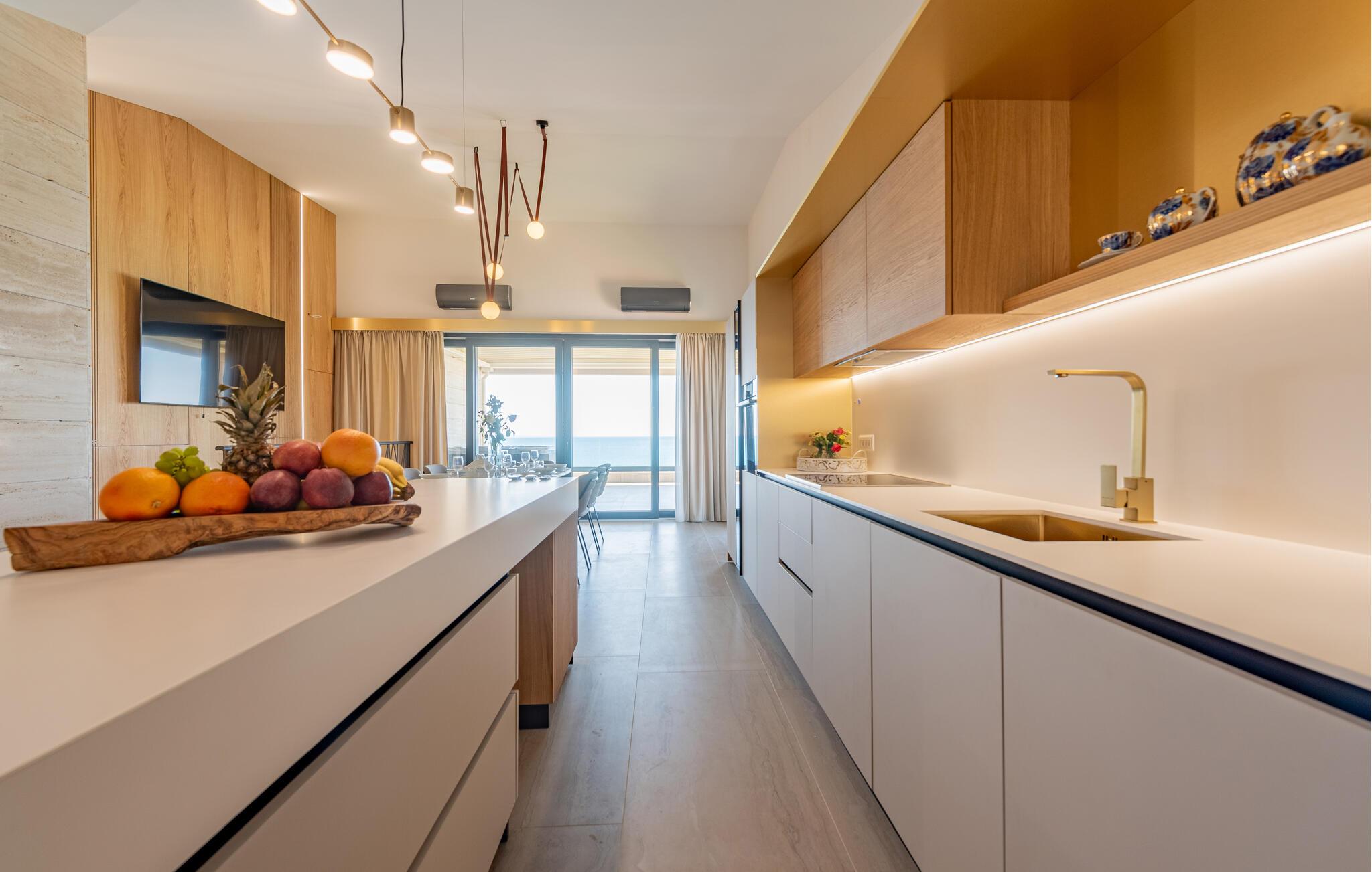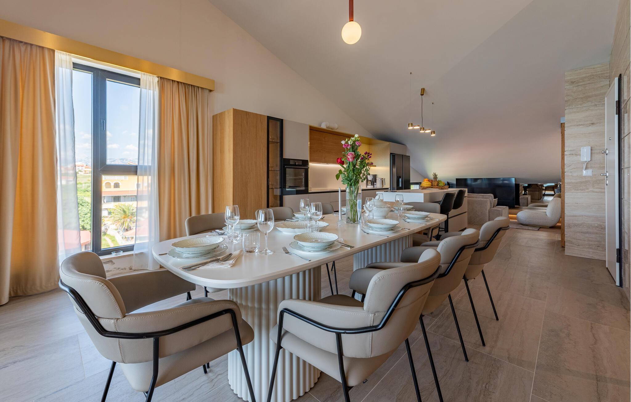 Willkommen in dieser zweistöckigen und wunderschönen Ferienwohnung, die Sie nicht nur mit ihrer fantastischen Einrichtung, hochwertigem Design und großartigem Design begeistern wird, sondern auch mit dem traumhaften Meerblick, den Sie von beiden Terrassen genießen können. Gemeinsames Kochen wird in der Luxusküche zu einem Genuss, ebenso das Entspannen auf dem gemütlichen Sofa. Wellnessliebhaber können sich im Whirlpool Ihre Muskeln massieren lassen und dabei auf das Meer blicken und die Seele baumeln lassen. Am Abend können Sie hier die Sonnenuntergänge verfolgen und sich an den Farben am Himmel erfreuen.