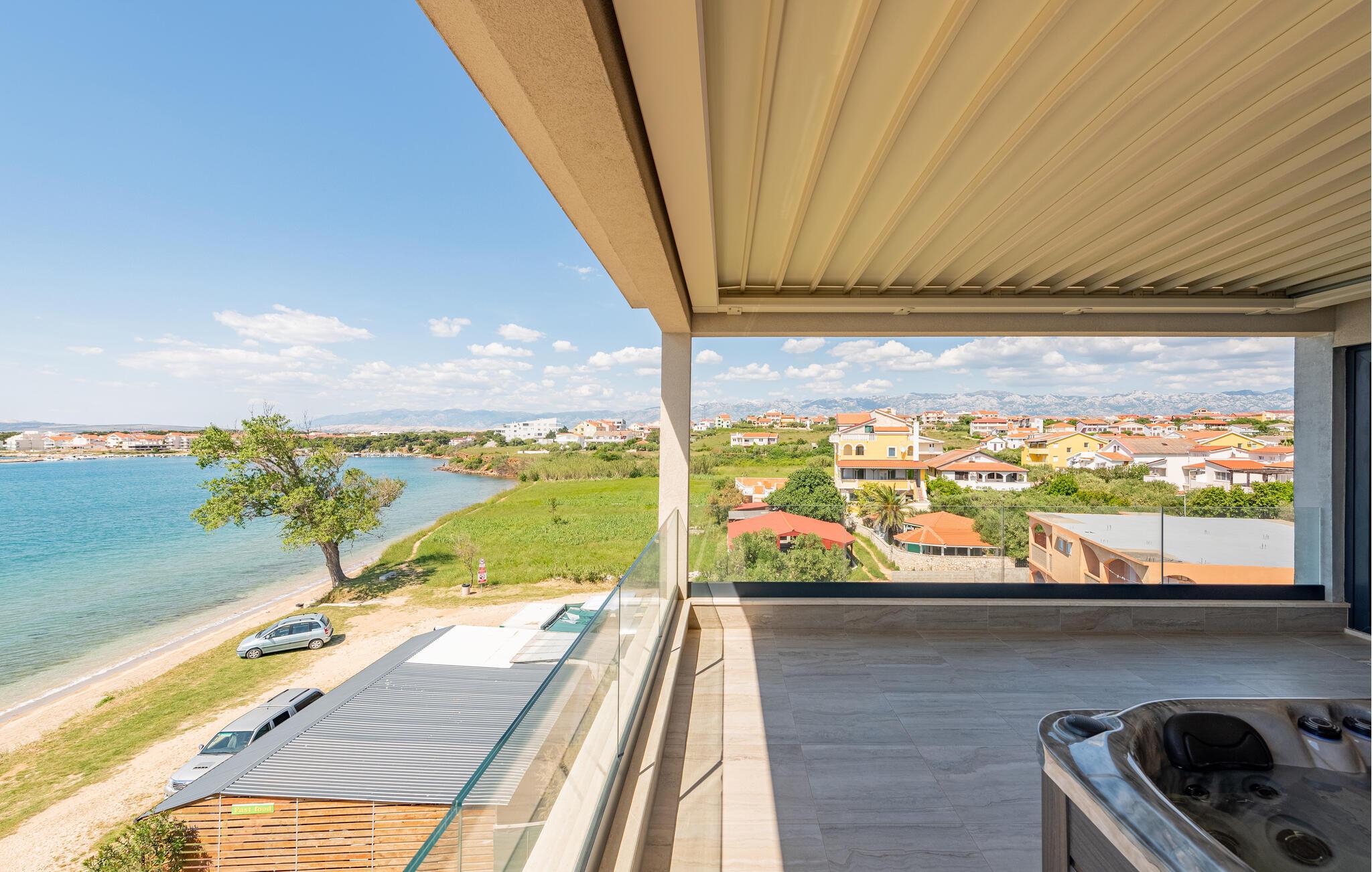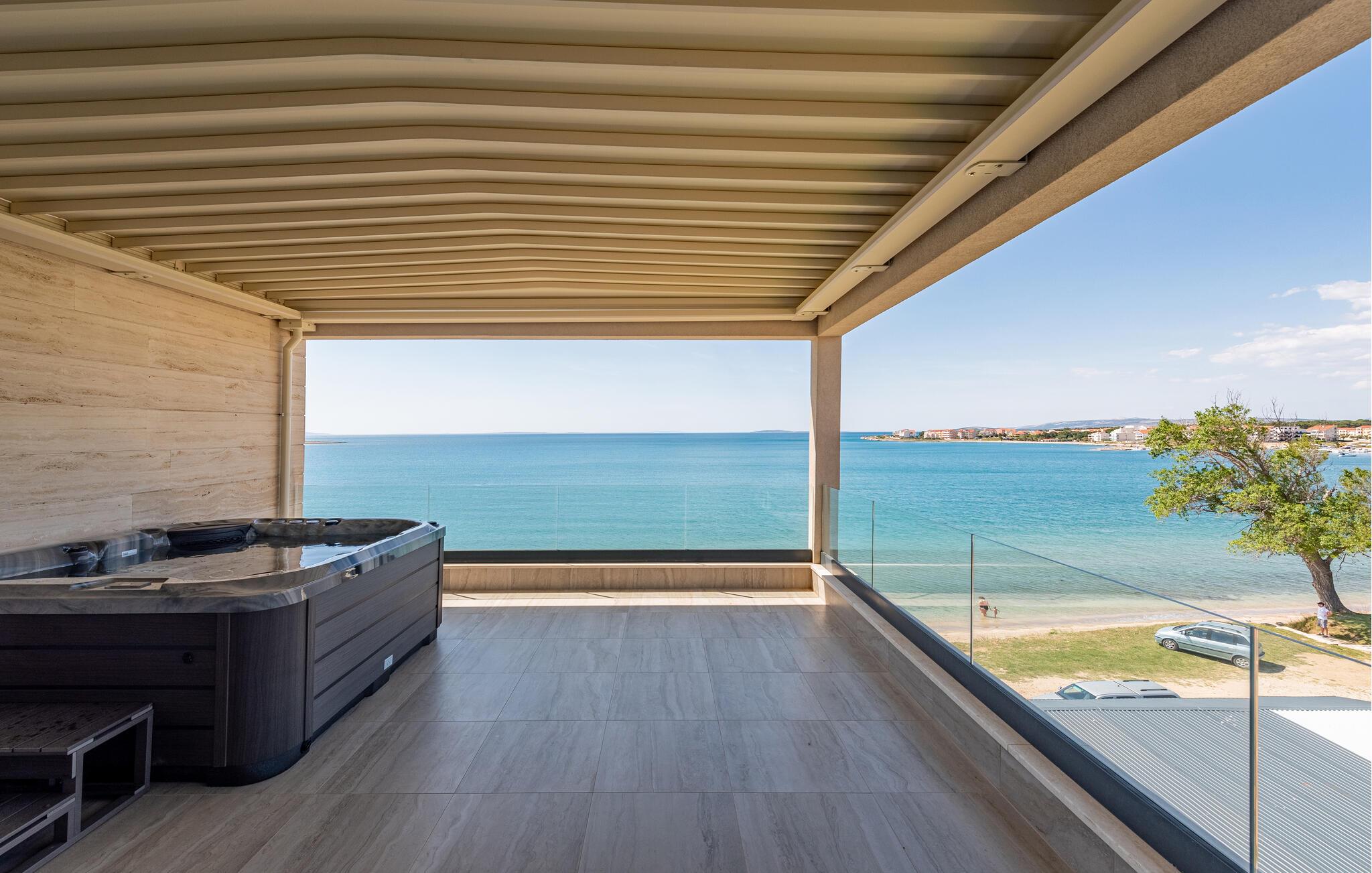 Am Sandstrand von Povljana empfängt Sie dieses luxuriöse Penthouse mit Whirlpool.