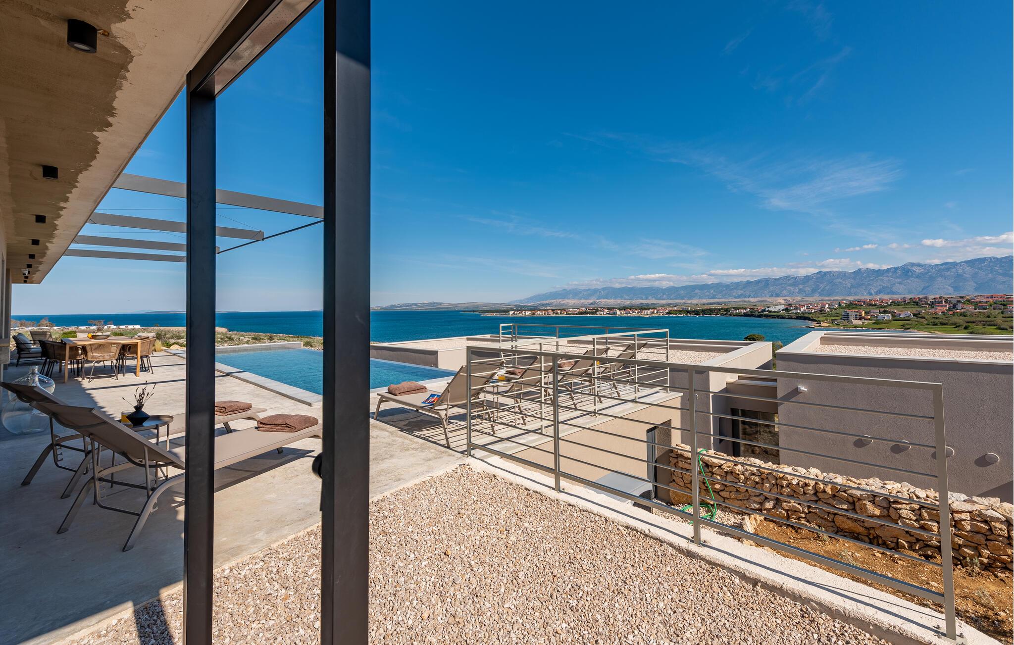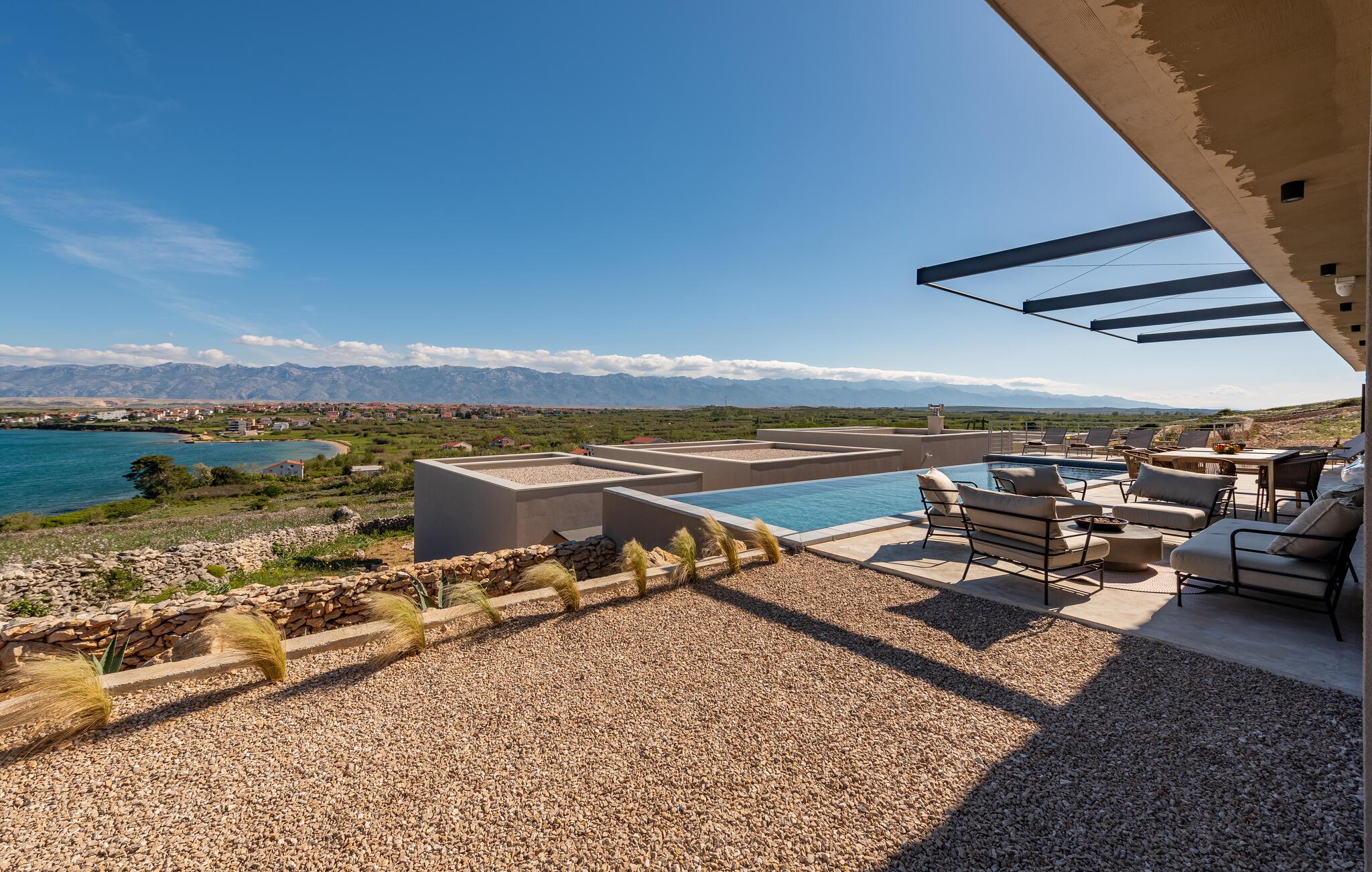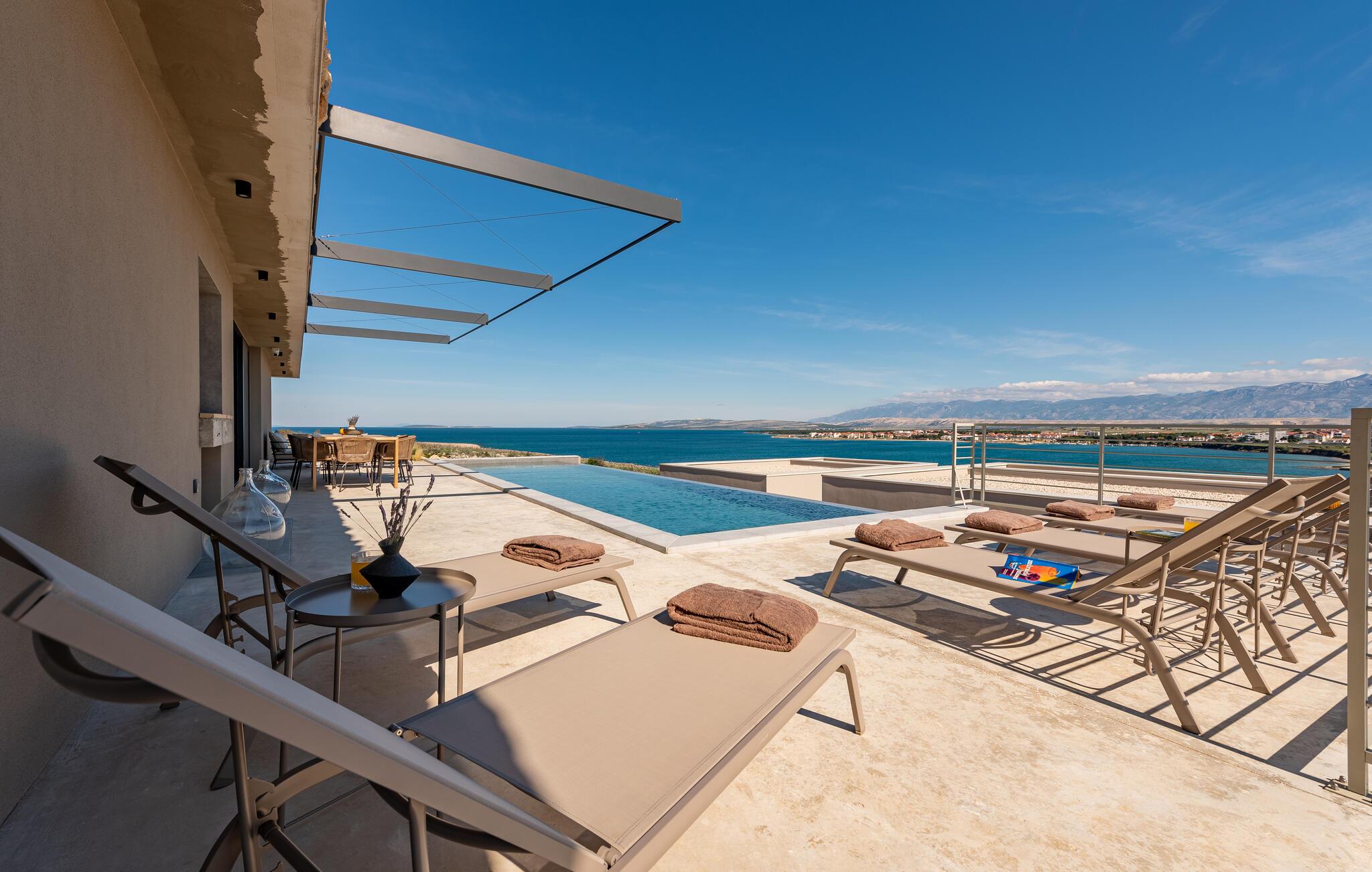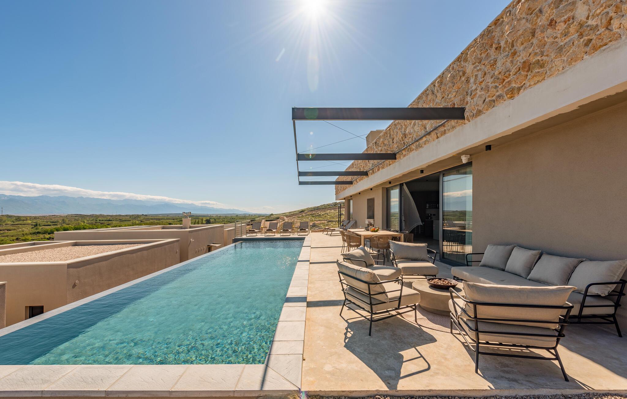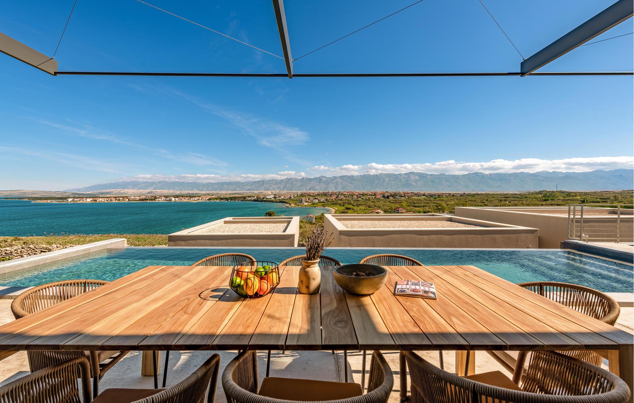 Ihr Ferienhaus bietet Ihnen zeitgemäßen Komfort und eine entspannte Atmosphäre, die wie geschaffen für einen gelungenen Familienurlaub ist. Nach einer geruhsamen Nacht eröffnen Ihnen die großen Fenster einen herrlichen Blick auf das glitzernde Blau der Adria. Frühstücken Sie am schönen Holztisch neben der Küche oder auf der gemütlichen Terrasse, die Ihnen neben vielen Sitzgelegenheiten auch einen sagenhaften Blick auf das Meer bietet. Genießen Sie die frische Luft und die malerische Aussicht, bevor Sie sich im Pool abkühlen. Oder gehen Sie zum Strand und verleben Sie hier einen unterhaltsamen Tag voller Badespaß.
