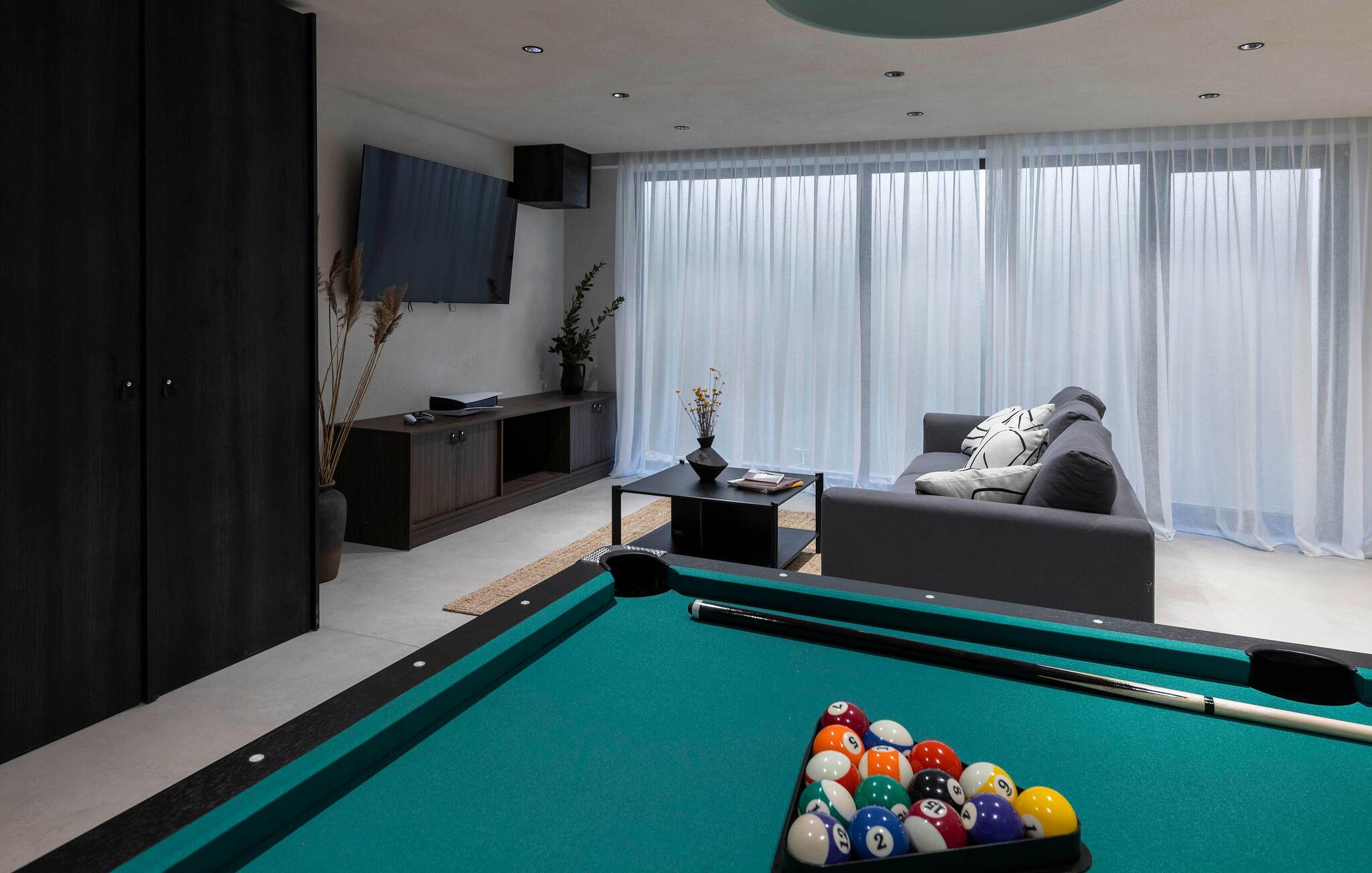 Abends können Sie am Billardtisch den Familienmeister im Poolbillard ermitteln. Oder legen Sie auf dem komfortablen Sofa die Beine hoch und entspannen Sie sich nach einem aktiven Tag bei einem guten Film.