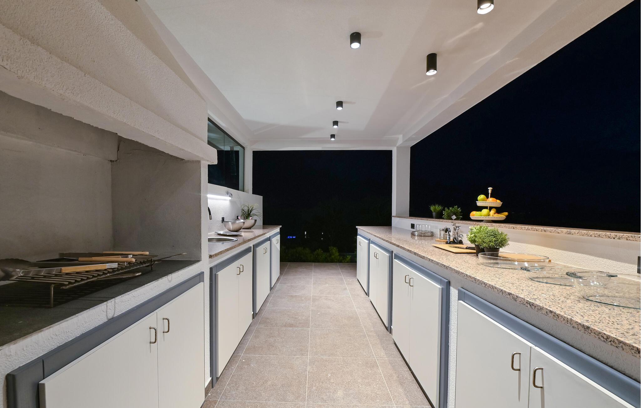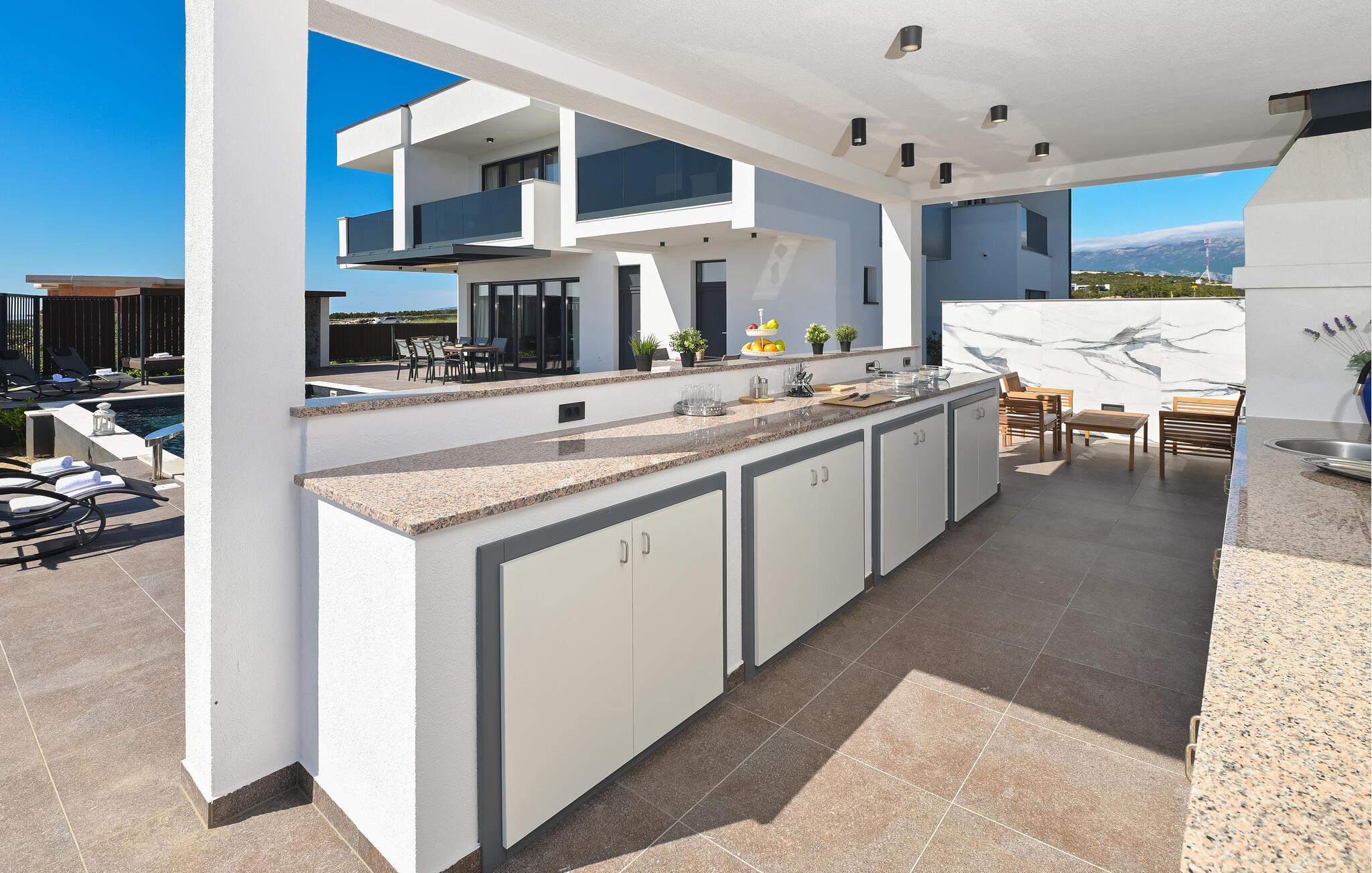 Auch der Außenbereich dieses Hauses hat viel zu bieten. Mehrere Terrassen laden dazu ein, wundervolle Stunden im Freien zu verbringen. Lassen Sie mit Blick auf das Meer die Seele baumeln, erfrischen Sie sich im Pool und beenden Sie einen unvergesslichen Urlaubstag mit einem leckeren Essen vom Grill.