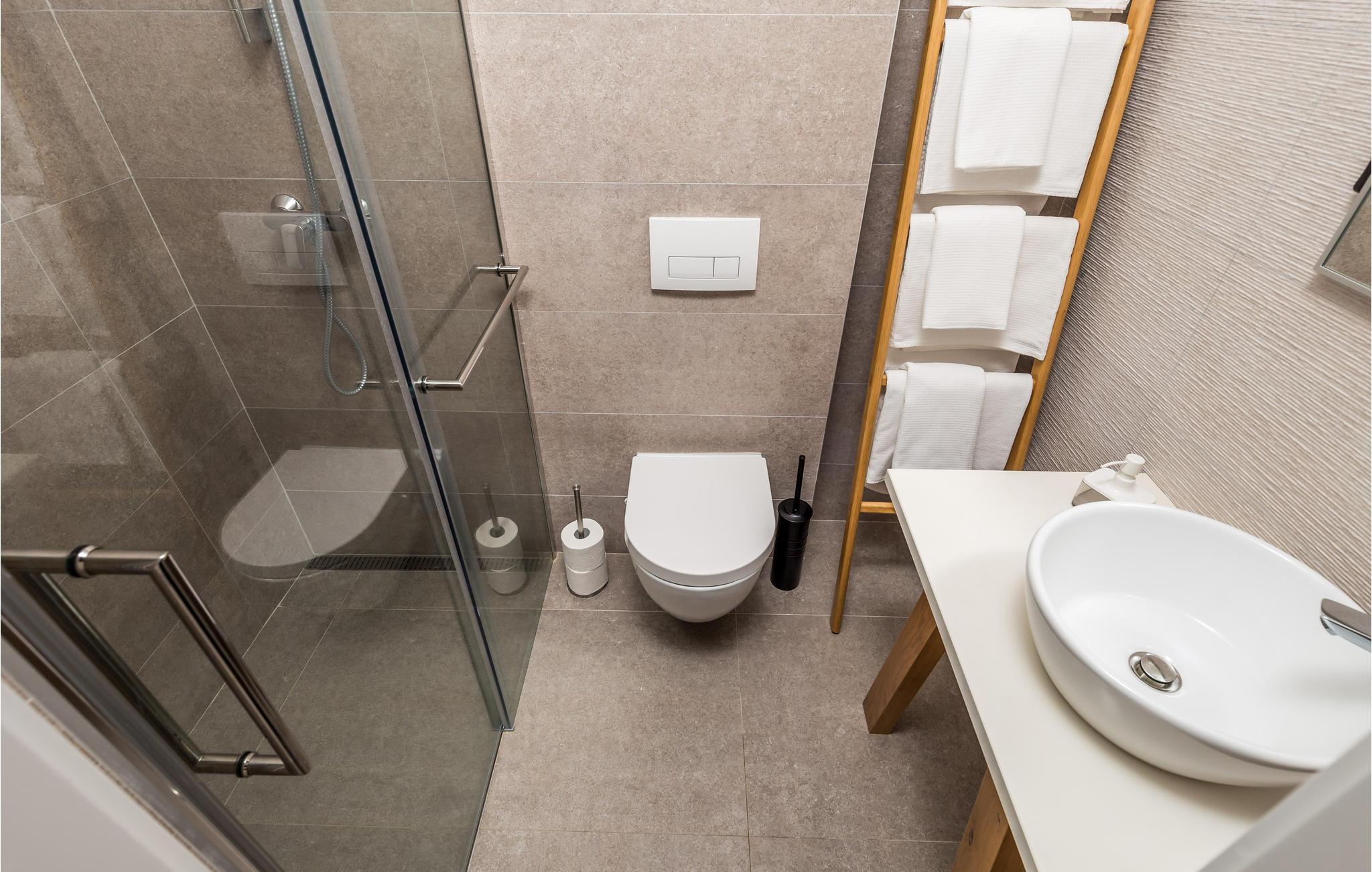 - WC mit warmem und kaltem Wasser, Dusche