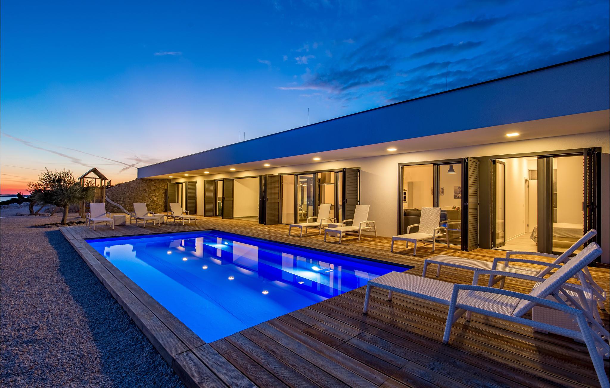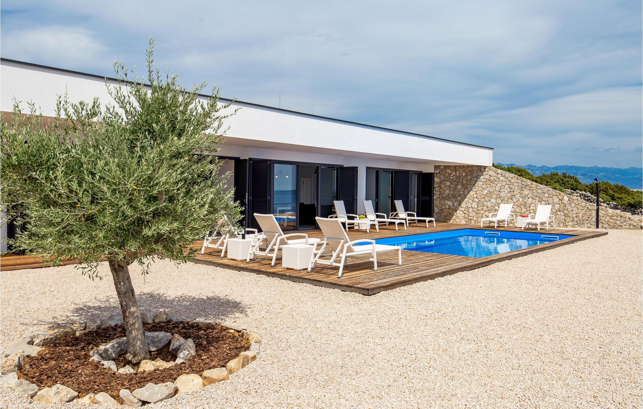 Schönes abgelegenes Haus auf einem sehr großzügigen Grundstück in natürlicher Umgebung mit herrlichem Panoramablick auf das Meer. Das Haus ist modern eingerichtet und bietet alles, was Sie für einen angenehmen Urlaub benötigen. Ihr Ferienhaus mit Pool ist eine ideale Erfrischung an heißen Sommertagen. Den tollen Strand erreichen Sie über einen angelegten Weg, wo Sie den ganzen Tag Baden können. Egal ob Sie sich für einen Tagesausflug oder längeren Aufenthalt auf dieser ungewöhnlichen Insel entscheiden, die Vielzahl der wunderschönen Lagunen bietet Ihnen eine große Auswahl für einen aktiven und erholsamen Urlaub. Diese Insel ist auch ein weltberühmtes Reiseziel für junge Leute aufgrund des Strandes "Zrce", der oft als kroatisches Ibiza bezeichnet wird. Viele Clubs und Bars am Strand beherbergen jedes Jahr wieder weltberühmte DJs, die eine Vielzahl junger Leute zusammenbringen, die Spaß, Musik und Unterhaltung suchen. Die Insel Pag ist wirklich ein ideales Reiseziel für alle Generationen. Zum Objekt führt eine nicht asphaltierte Straße von ca. 2,7 km auf der es mehrere kleinere Tore gibt, die von Ihnen geöffnet und wieder geschlossen werden müssen. Die Tore wurden aufgrund der Schafe auf der Insel angebracht, sodass Sie mehrere Mal aus dem Fahrzeug aussteigen müssen um die Tore zu schließen.