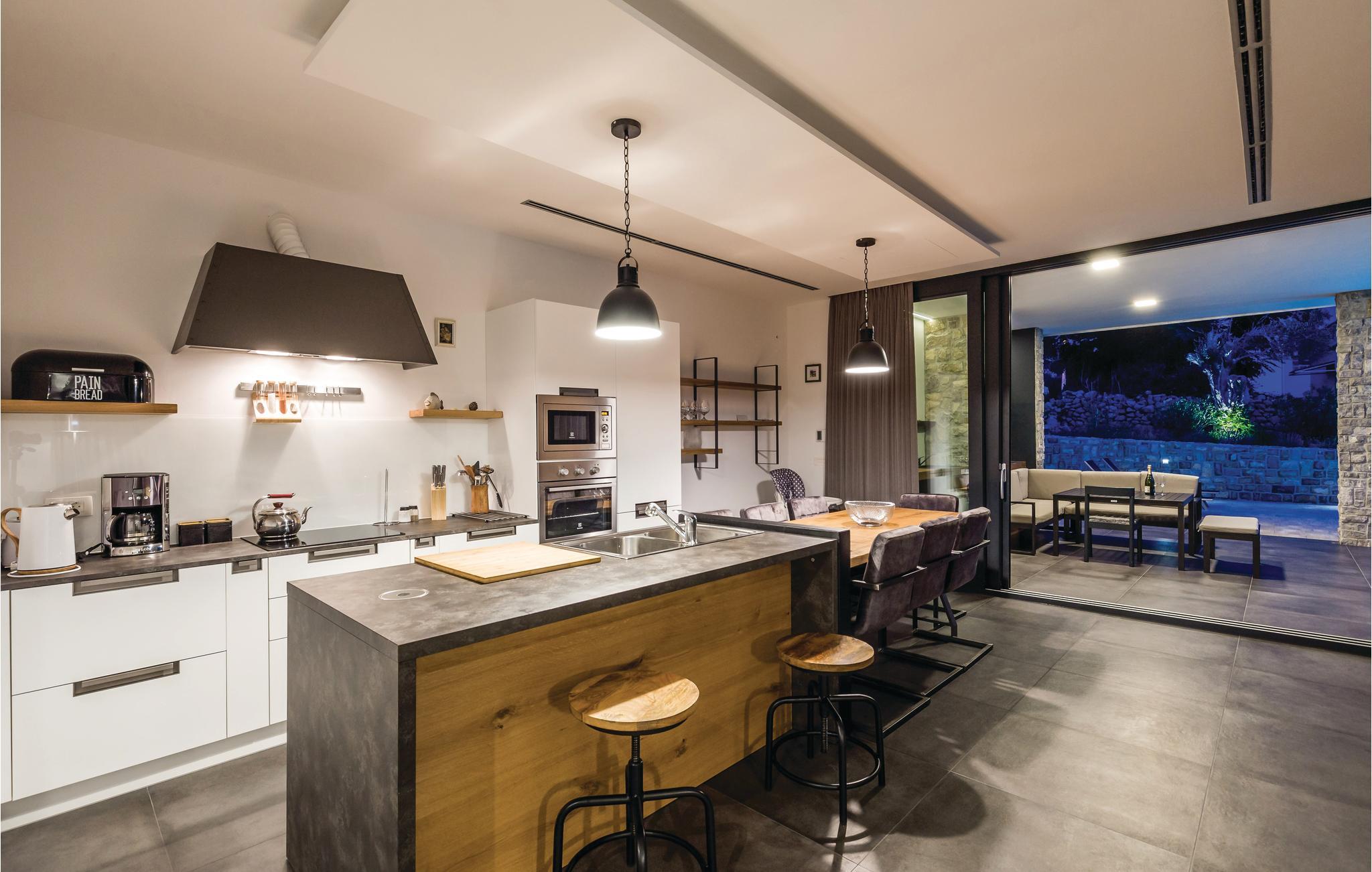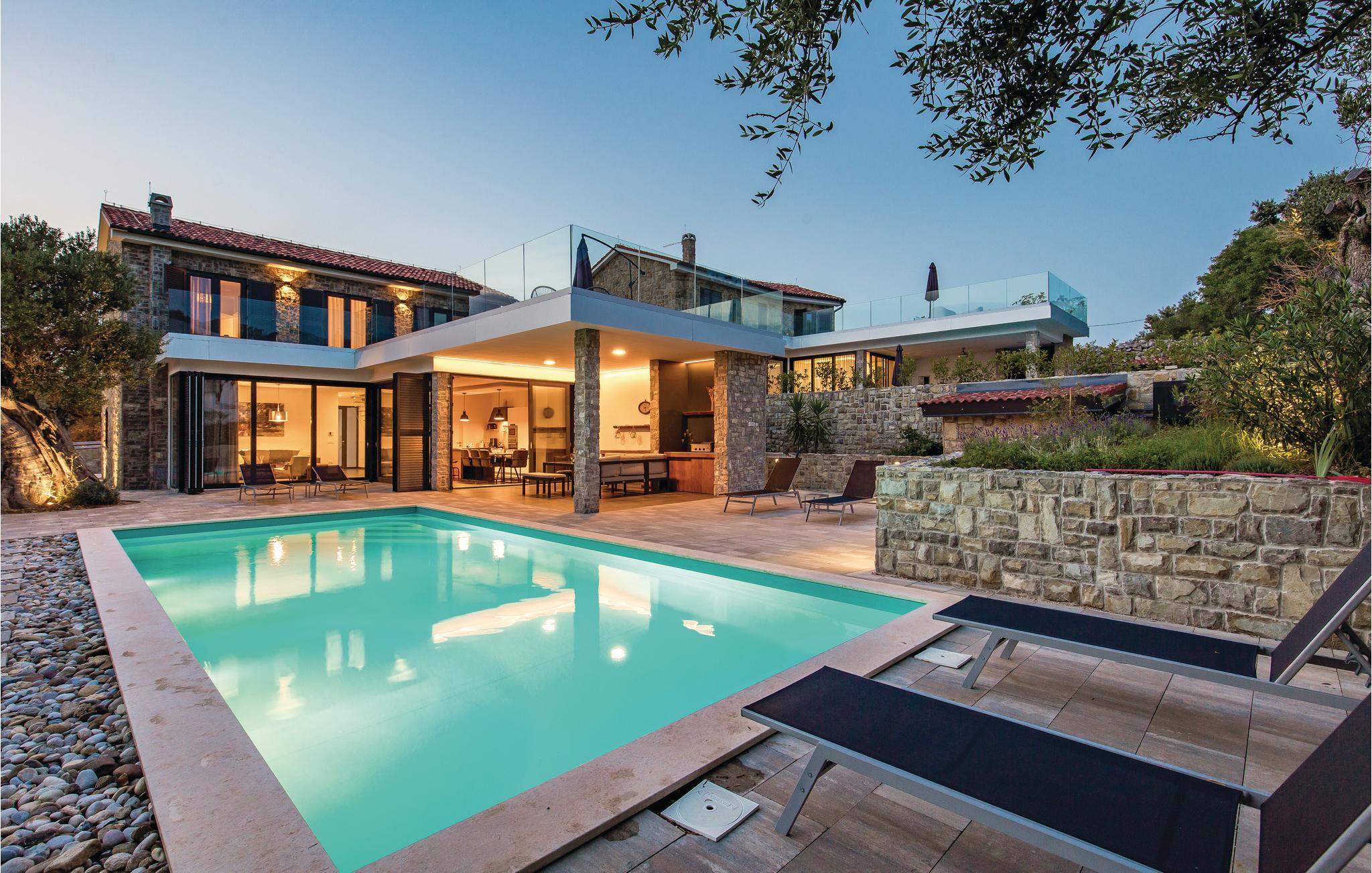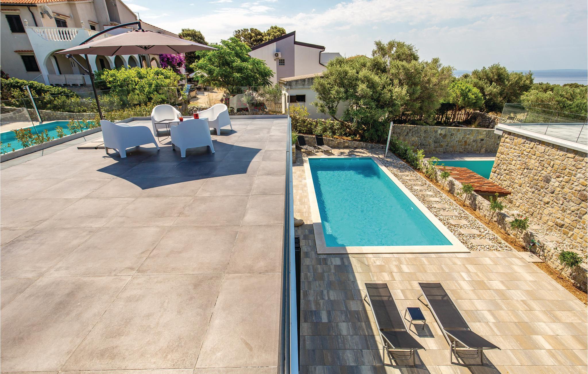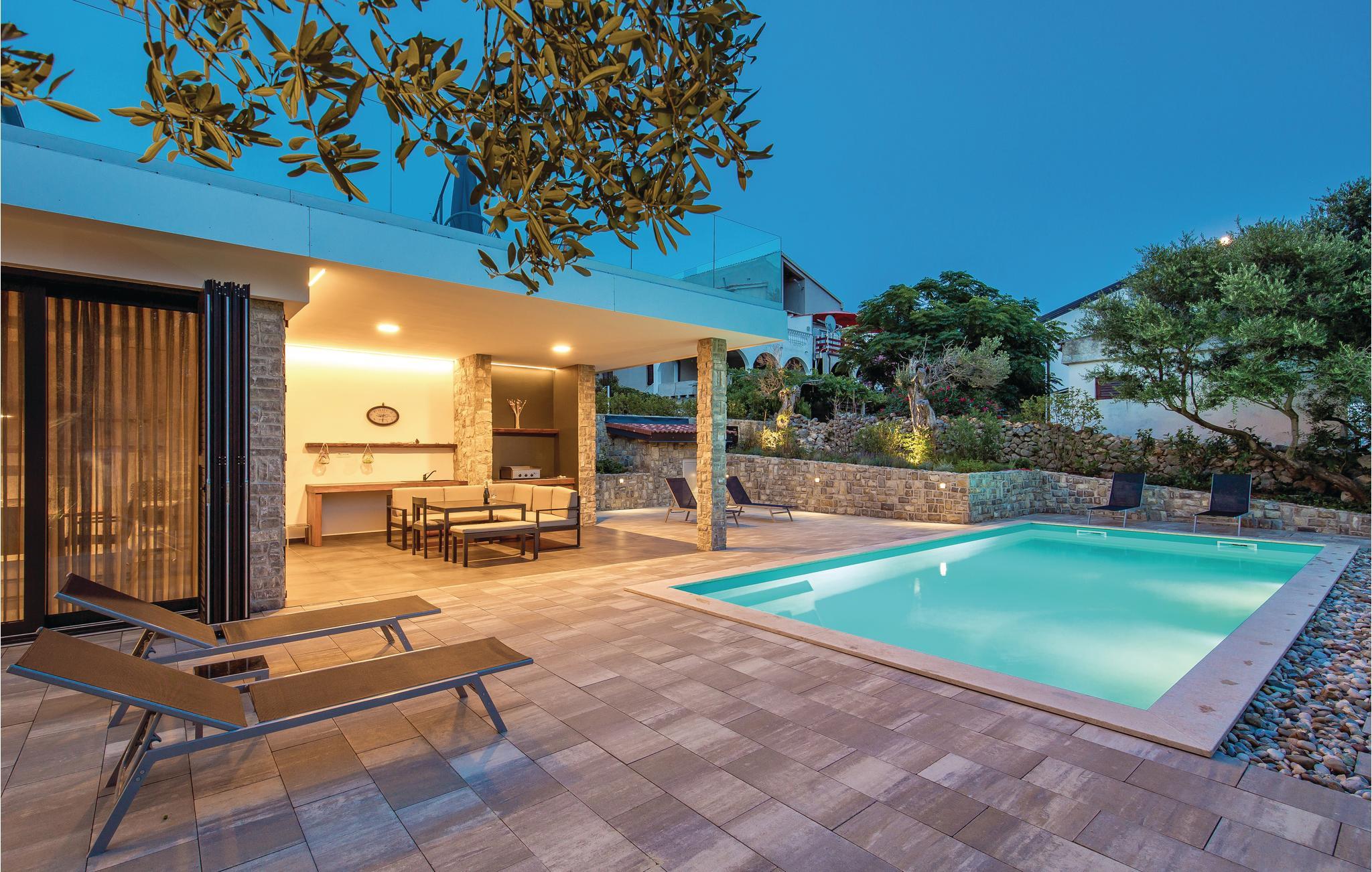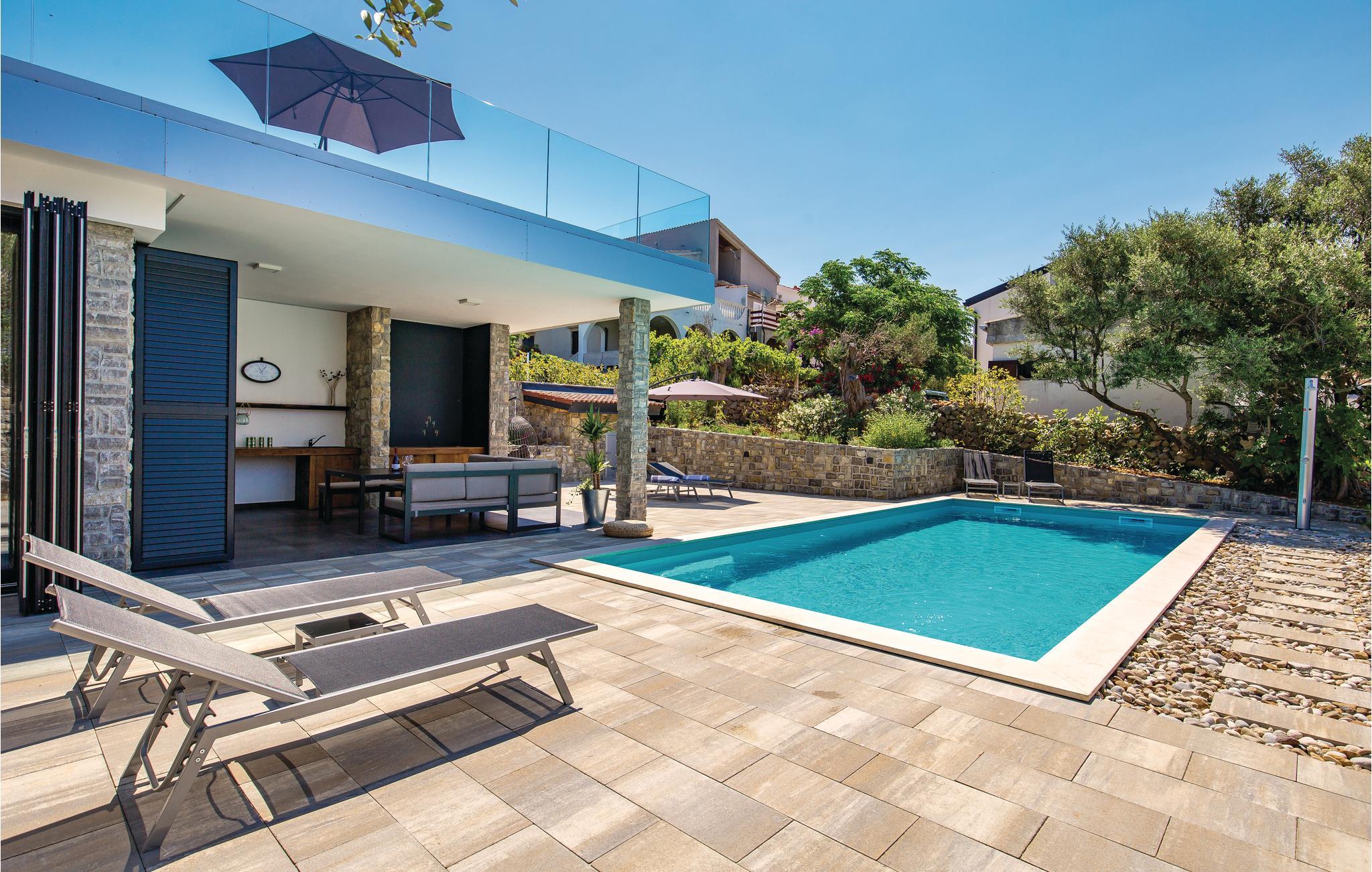 Schönes Ferienhaus mit Pool und sehr geräumiger Terrasse mit Lounge Garnitur, sowie einem herrlichen Ausblick aufs Meer, der Sie beeindrucken wird. Im Garten gibt es herrliche mediterrane Pflanzen und einen hundertjährigen Olivenbaum. Das Interieur ist angenehm und modern. Die Olivenbäume von Lun sind die Besonderheiten in diesem Teil der Insel und werden Sie mit ihren einzigartigen Formen begeistern. Der älteste Olivenbaum ist etwa 2000 Jahre alt. Erleben Sie schöne Strände, ein reiches gastronomisches Angebot und kosten den bekannten Pager Käse, der mit einer Goldmedaille ausgezeichnet wurde. Eine Käsefabrik mit fachgerechter Führung kann besucht werden. Erleben Sie einen angenehmen Urlaub mit Ihrer Familie auf der schönen Insel Pag.
