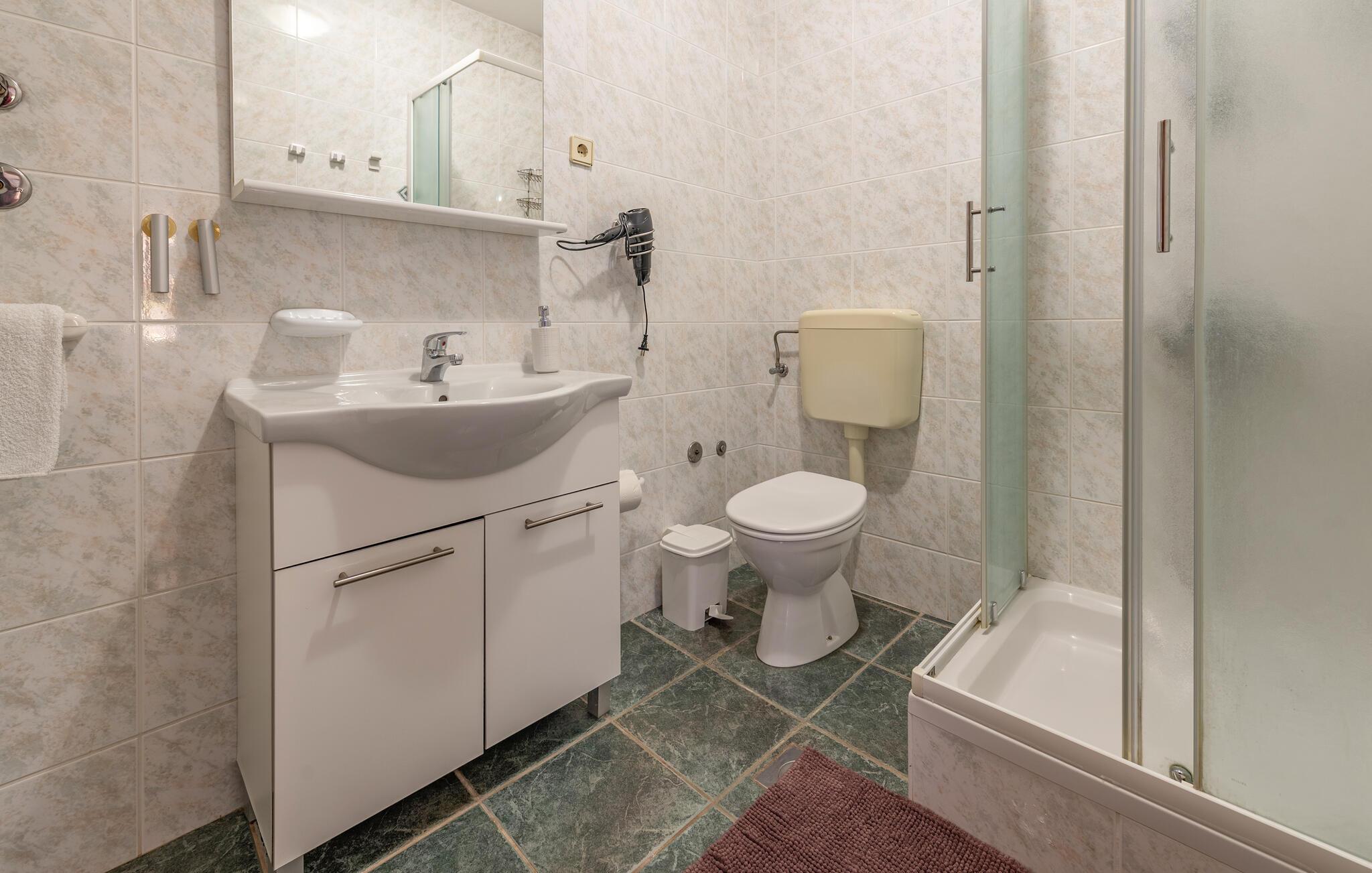 - WC mit warmem und kaltem Wasser, Dusche