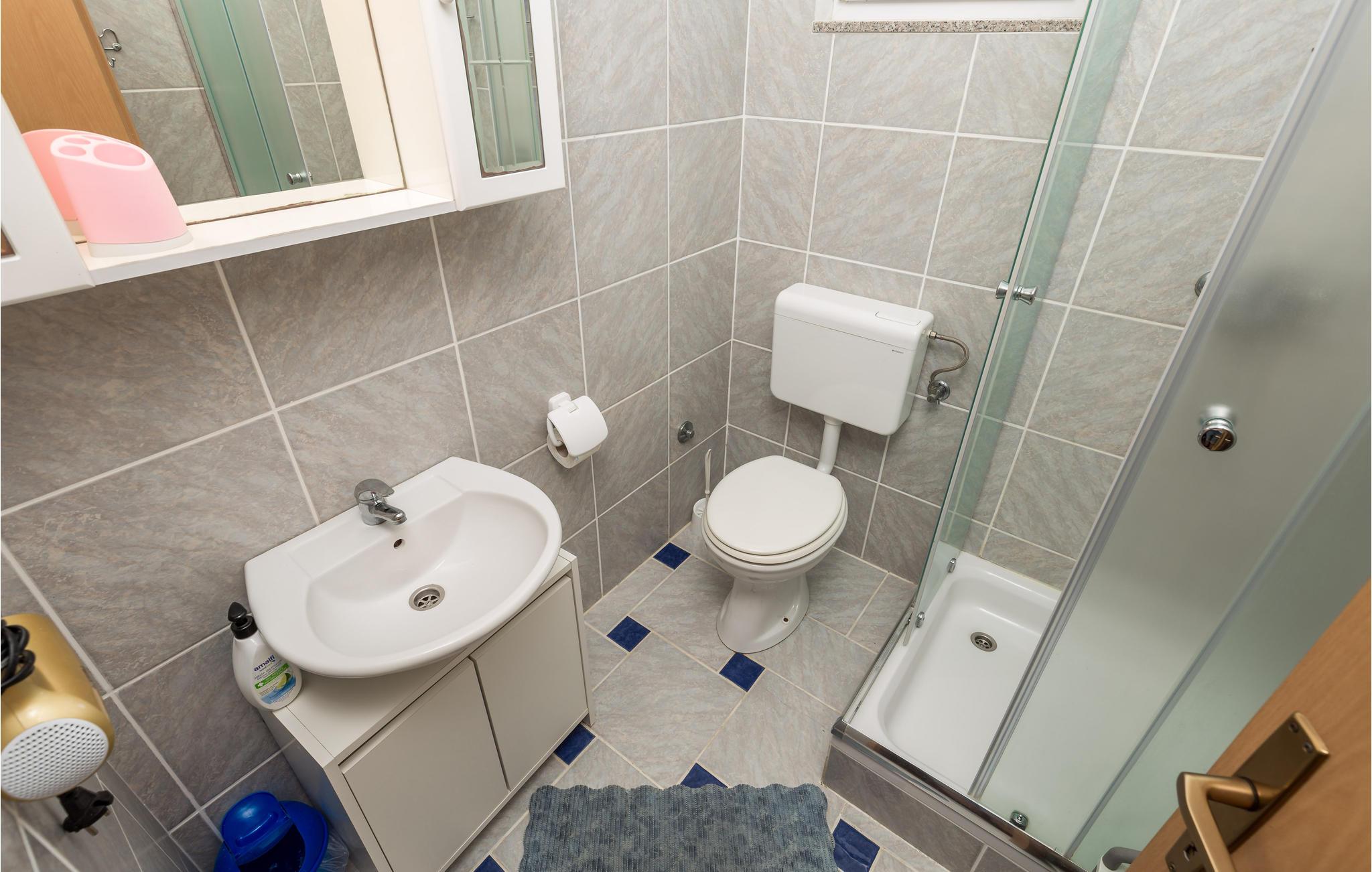 - WC mit warmem und kaltem Wasser, Dusche