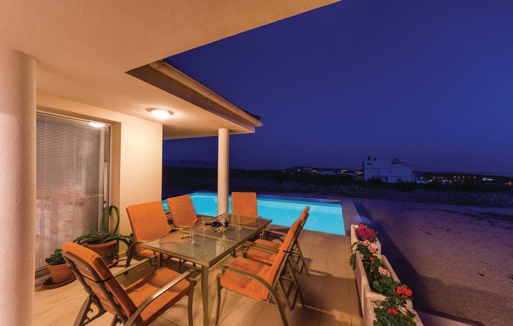 Auf einem großen Grundstück von 2000m² auf der Halbinsel Pag befindet sich dieses moderne Ferienhaus. Erfrischung finden Sie sicherlich in dem großen Pool mit seinen 77m². Das Haus ist gut ausgestattet und gut isoliert, so dass der Verkehr der nahliegenden Straße nicht stören wird. Die Etagen sind über eine Wendeltreppe verbunden. Von der Terrasse bietet sich ein toller Ausblick auf das Meer an, den Sie beim Morgenkaffee genießen werden. In der Nähe befindet sich ein Olivenbaumpark, in dem 1000 Jahre alte Olivenbäume wachsen, die Ihnen der Parkführer gern zeigen wird. Die Stadt Novalja ist bekannt für seinen schönen Sandstrand und viele Gastronomieobjekte, wobei der Strand Zrce am bekanntesten ist. Die Insel Pag ist für seinen Ziegenkäse weltbekannt, den Sie unbedingt probieren sollten.