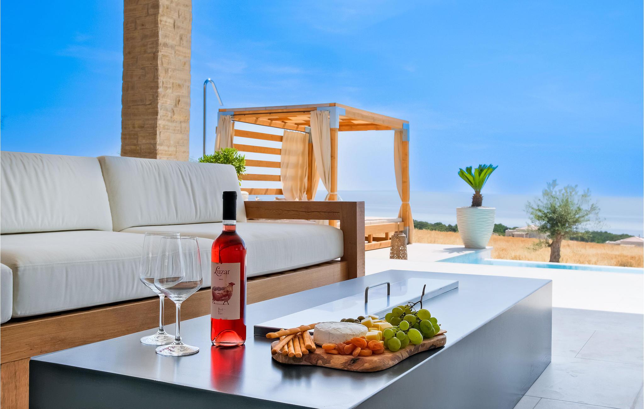 Nicht dur der Innenraum, sondern auch der Außenbereich macht einen überzeugenden Eindruck. Schwimmen Sie morgens eine Runde im Pool und verbringen Sie tagsüber entspannte Stunden in den Loungemöbeln oder auf den Sonnenliegen unter dem Parasol. Profiteren Sie von der hübschen Außenküche und verbringen Sie viele, gesellige Stunden im Essbereich mit dem Meer als Kulisse. Zu einem stimmungsvollen Ausklang des Tages bietet der Außenwhirlpool den perfekten Ort.