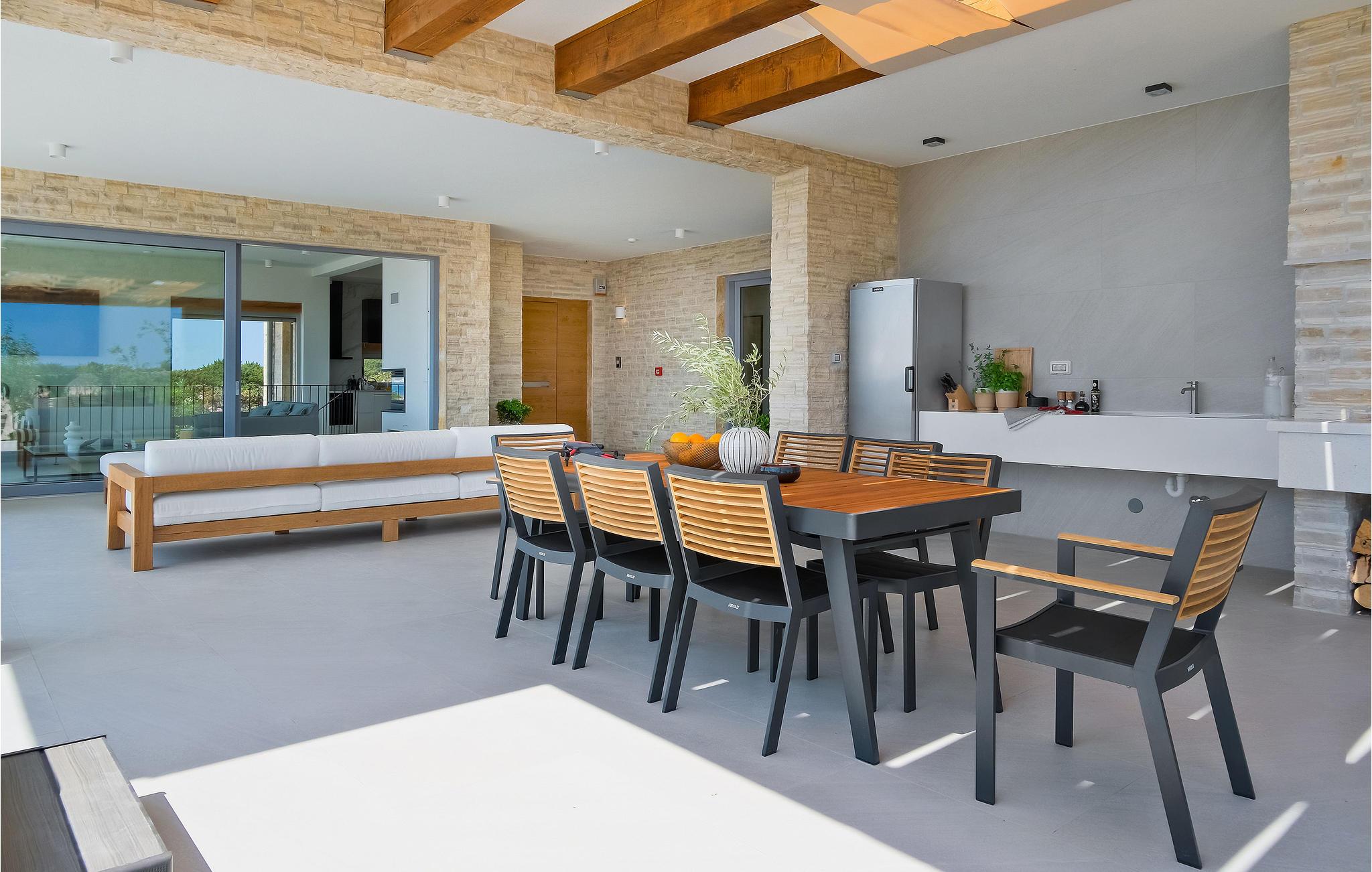 Auf der Insel Pag begrüßt Sie dieses großartige Haus in traumhafter Lage. Im Innenraum erwarten Sie hochwertig eingerichtete Zimmer, die einen sehr stilvollen Eindruck machen. Überall besticht das Haus durch bedachte Lösungen und Materialien von hoher Qualität. Bereiten Sie in der ansprechenden Küche Ihre Köstlichkeiten beim Blick auf die Umgebung zu oder entspannen Sie im Sofa bei der Urlaubslektüre, von wo aus Sie eine schöne Aussicht auf die Umgebung genießen und nur wenige Schritte Sie von einem Sprung in den Außenpool trennen. Der Aktivitätsraum lädt zu einer Runde Billard ein, und wenn Sie lieber zusehen möchten, können Sie sich es im Sofa bei einem abgekühlten Getränk Ihrer Wahl bequem machen.