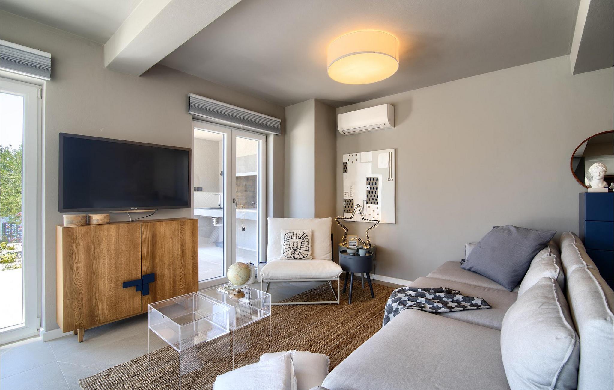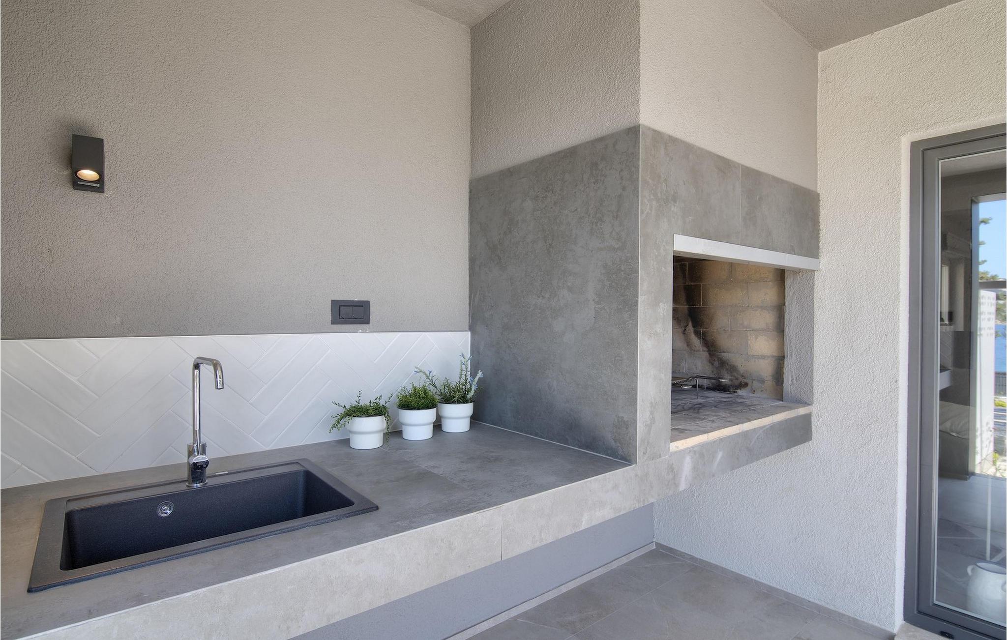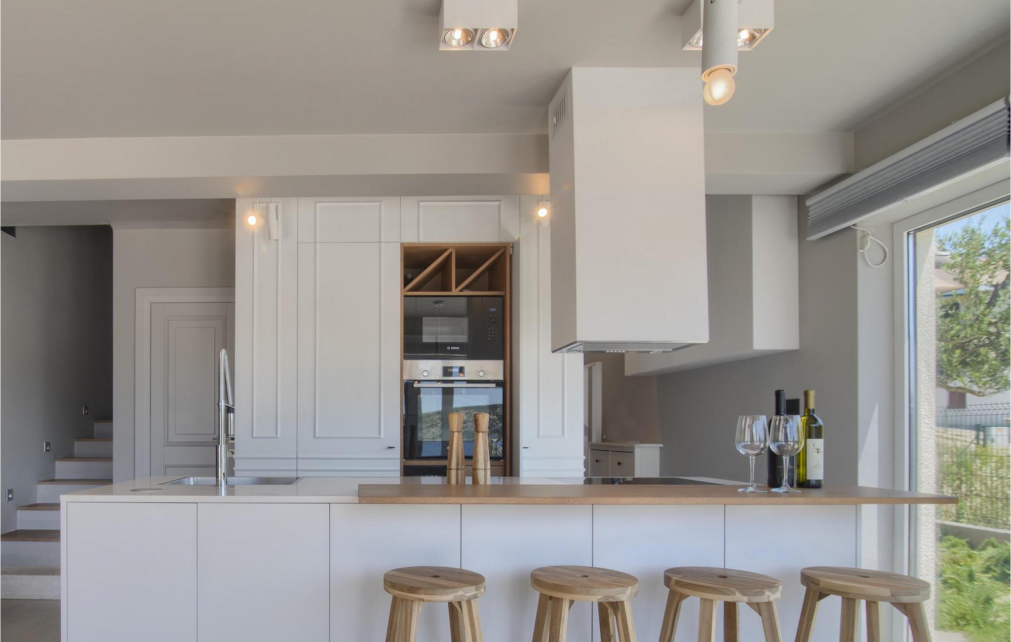 Die modern ausgestattete Villa Lunjsko auf der Insel Pag ist einfach atemberaubend! Diese schöne Villa befindet sich am Rande der Insel in Stara Novalja. Die Aussicht aus fast allen Zimmern der Villa wird Sie begeistern. Villa Lunjsko ist in Erdgeschoss und ersten Stock unterteilt. Das Erdgeschoss der Villa verfügt über ein Wohnzimmer, eine voll ausgestattete Küche, ein Esszimmer mit Zugang zur geräumigen Außenterrasse mit Essbereich, eine Speisekammer und ein Badezimmer. Im ersten Stock befinden sich drei Schlafzimmer, von denen zwei über ein eigenes Bad verfügen, ein zusätzliches Badezimmer und ein Balkon. Das Innere der Villa Lunjsko ist stilvoll eingerichtet und bietet eine komfortable Unterkunft für 6 Personen. Außerdem gibt es einen wunderschönen Garten mit wundervoller Aussicht. Die Villa Lunjsko bietet ihren Gästen vor der Villa einen persönlichen Liegeplatz für ein Boot. Erfrischen Sie sich im Pool der Villa oder einfach nutzen Sie den direkten Zugang zum Meer. Buchen Sie Ihren Traumurlaub in der Villa Lunjsko auf der Insel Pag.