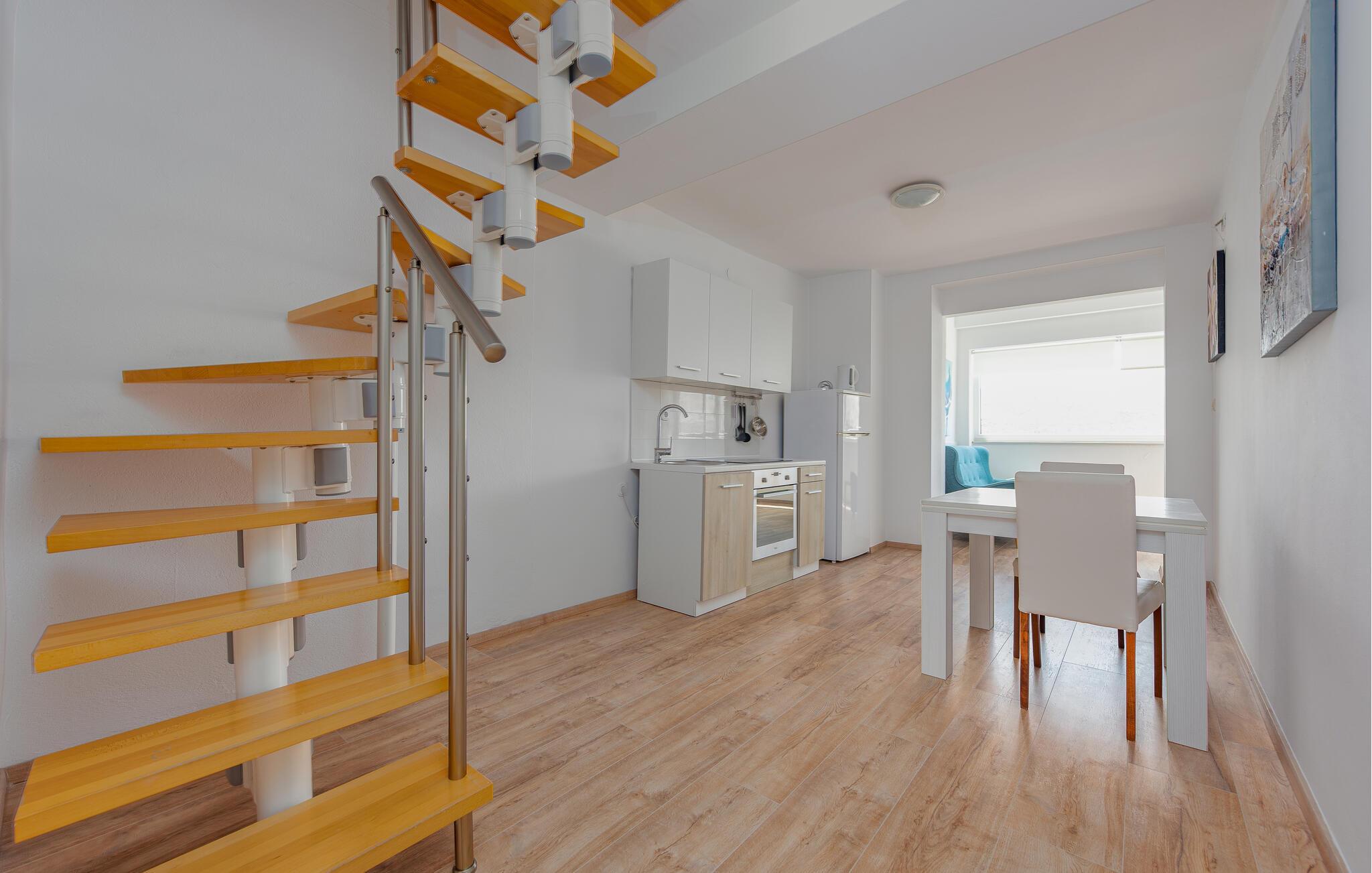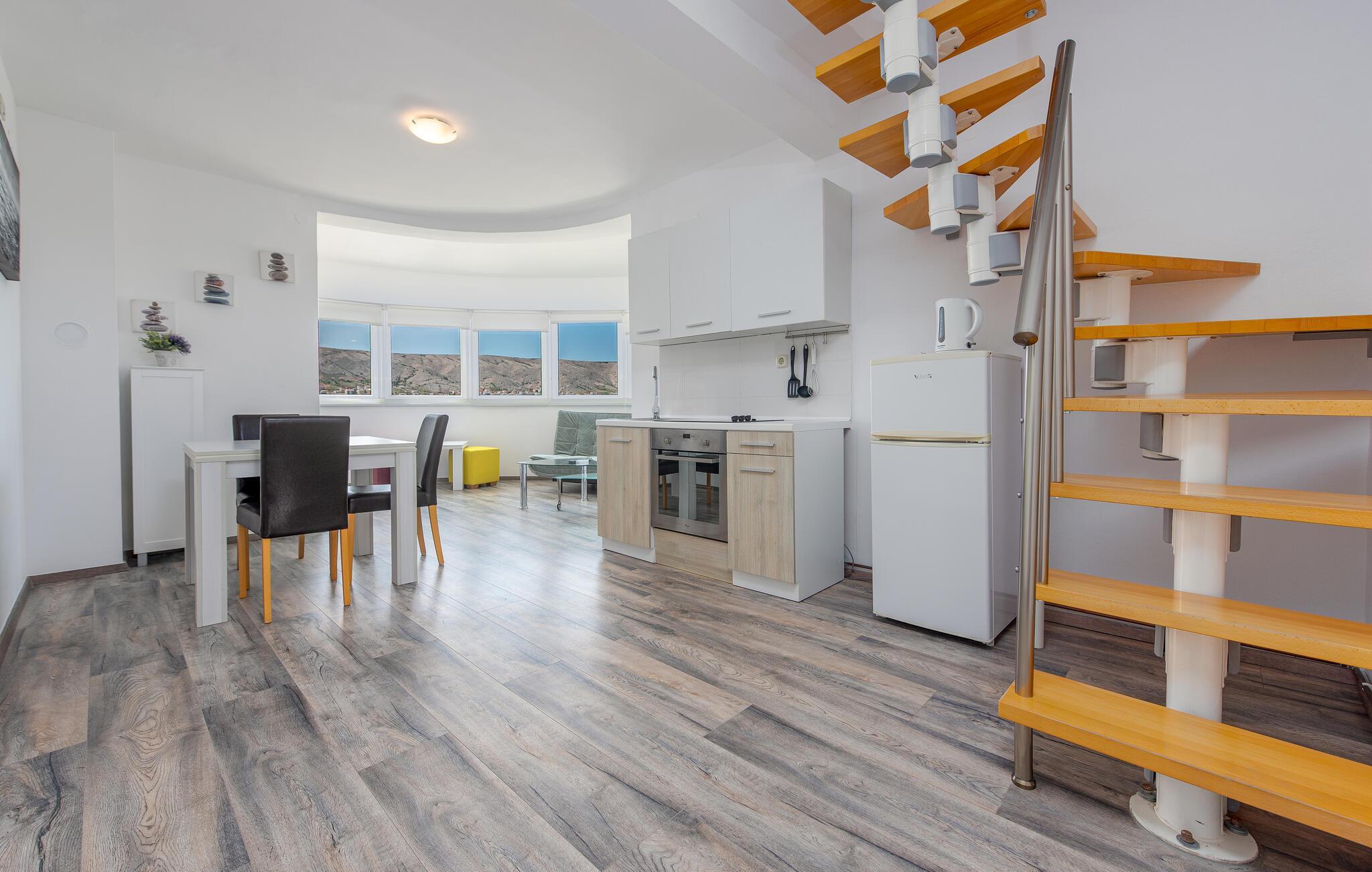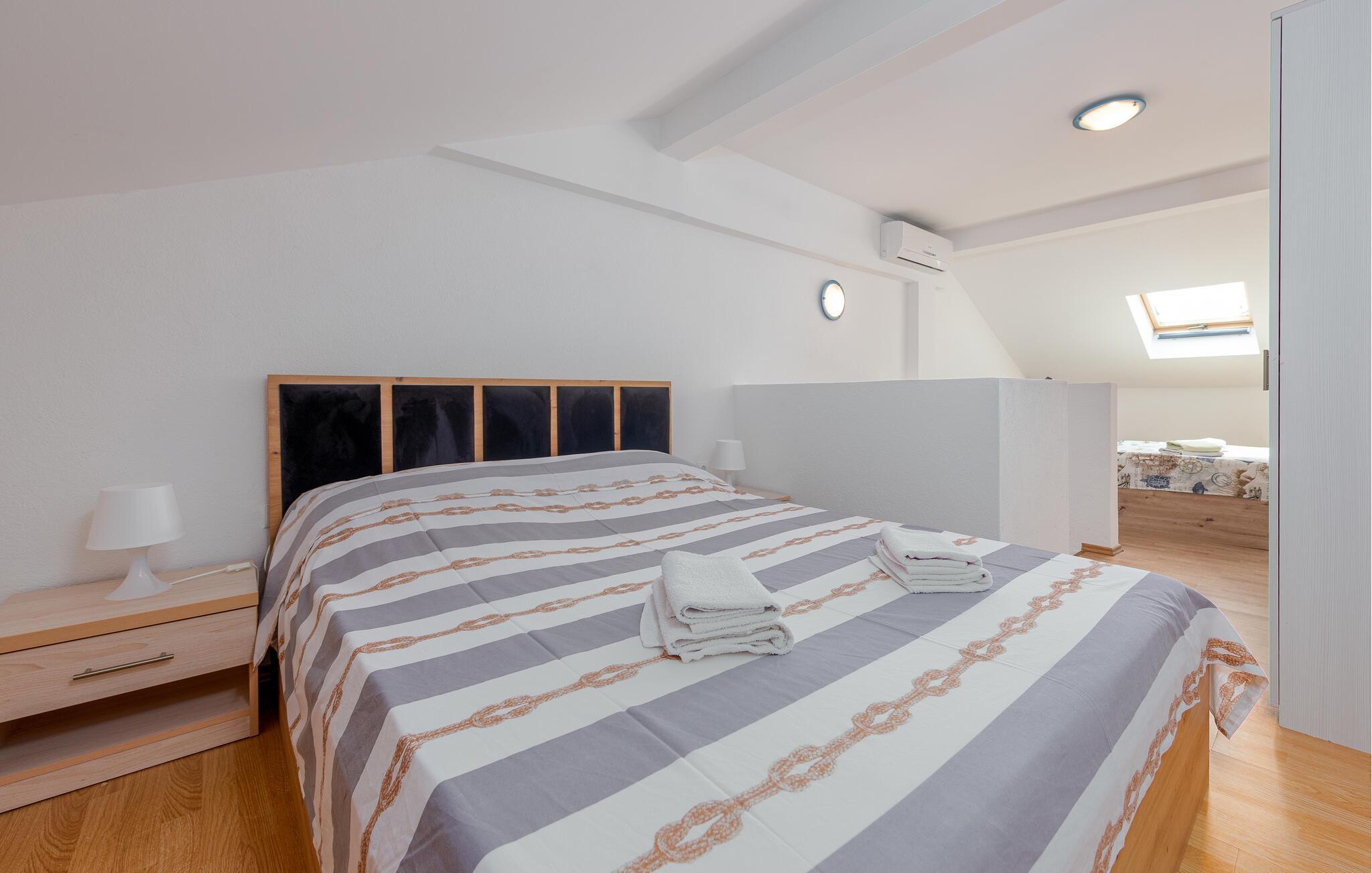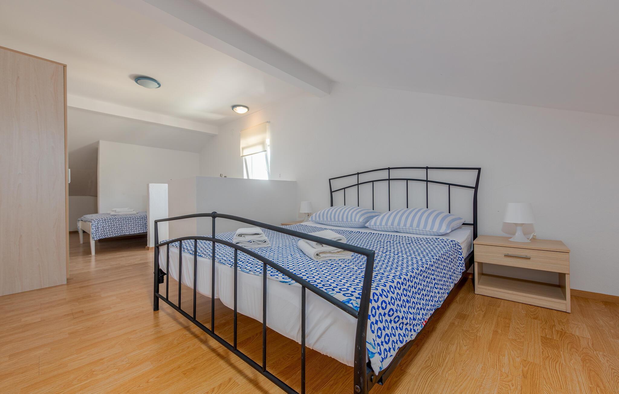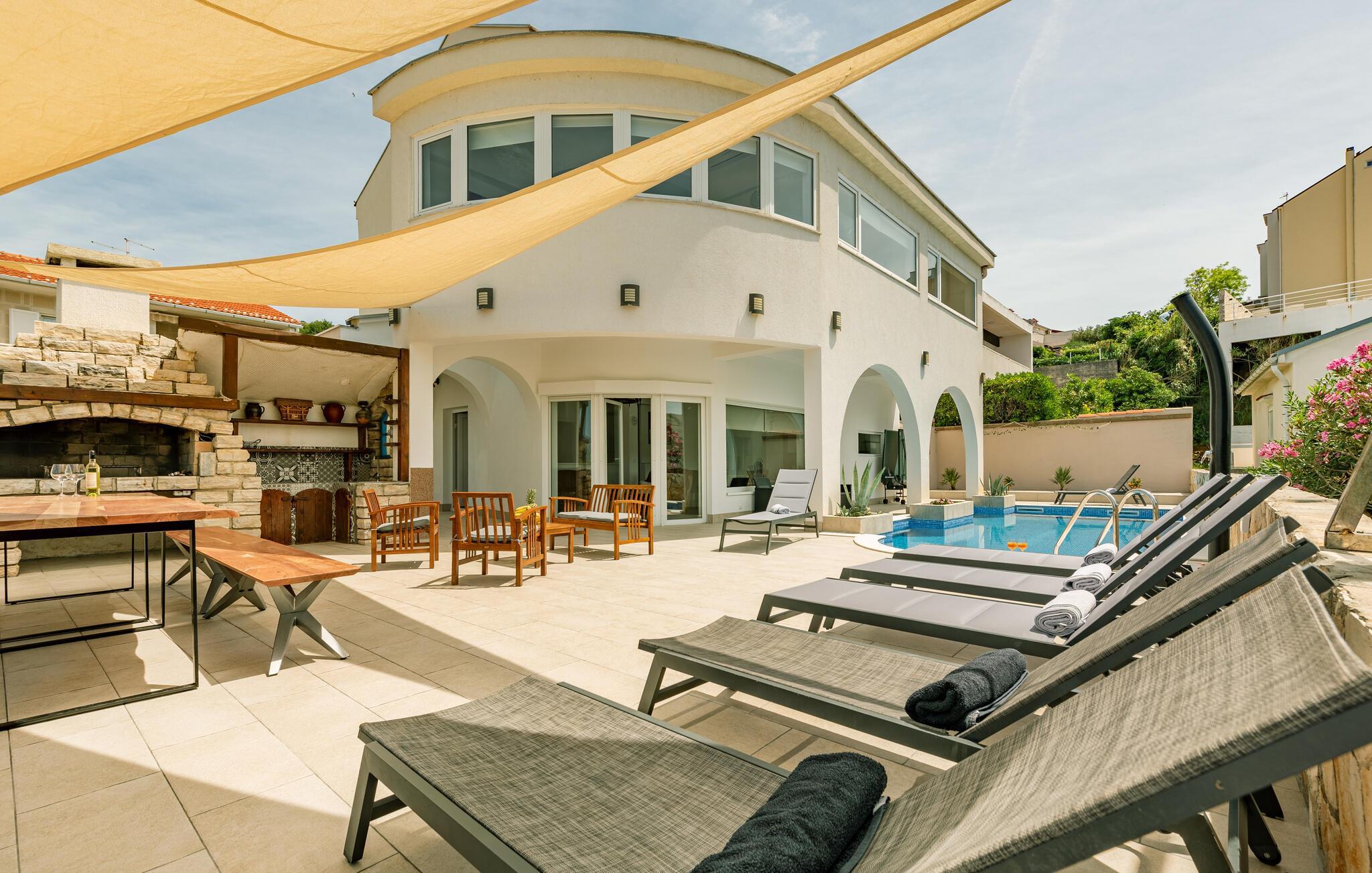 In der unmittelbaren Nähe des Strandes liegt dieses schön und modern eingerichtete Ferienhaus mit Pool. Auf der ersten Etage befindet sich der Außenpool mit Liegestühlen und Sonnenschirmen und zusätzlich bietet sich auch ein schöner Blick auf das Meer. Das Erdgeschoß und die erste Etage sind mit Außentreppen miteinander verbunden, während die niedrigste Deckenhöhe im Dachgeschoss 110 cm beträgt. Eine steile Innentreppe führt vom Wohnbereich zum oberen Schlafzimmer. Auf der Insel Pag gibt es viele lange Kies- und Sandstrände, ein reiches, gastronomisches Angebot und den Altstadtkern von Zadar erreichen Sie in knapp 50 km. Die Stadt Zadar ist bekannt für ihre turbulente Geschichte, dessen Vermächtnis Sie überall in der Stadt sehen können. Auf der Insel Pag finden während des Sommers verschiedene Veranstaltungen statt. Dort haben Sie die Gelegenheit, die Traditionen und die reichhaltige Küche, wie den bekannten Käse oder das gebratene Lammfleisch zu kosten. Auch können Sie die Geschichte und zugleich die traditionellen Werte diese Gegend wie die schönsten kroatischen volkstümlichen Kostüme der Stadt Pag kennen lernen.