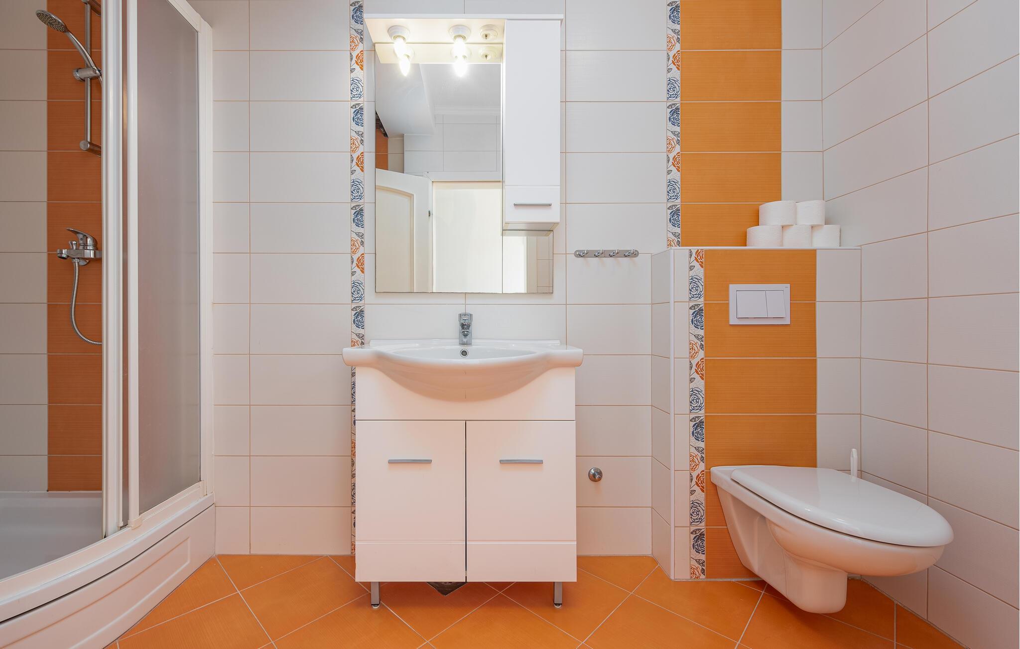 Badezimmer (nr. 2) - WC. Warmes und kaltes Wasser. Dusche