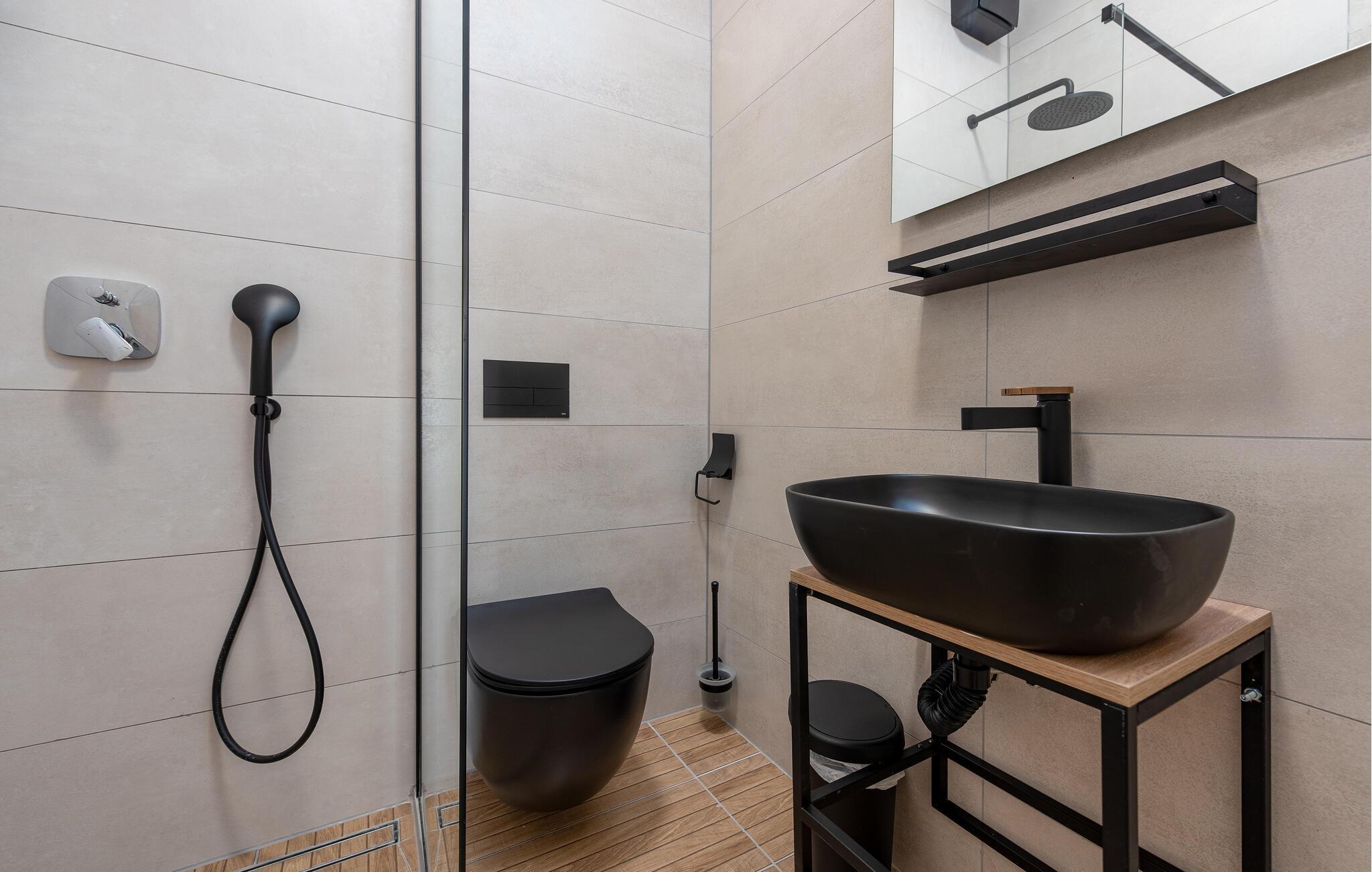 Badezimmer (nr. 5) - WC. Warmes und kaltes Wasser. Dusche