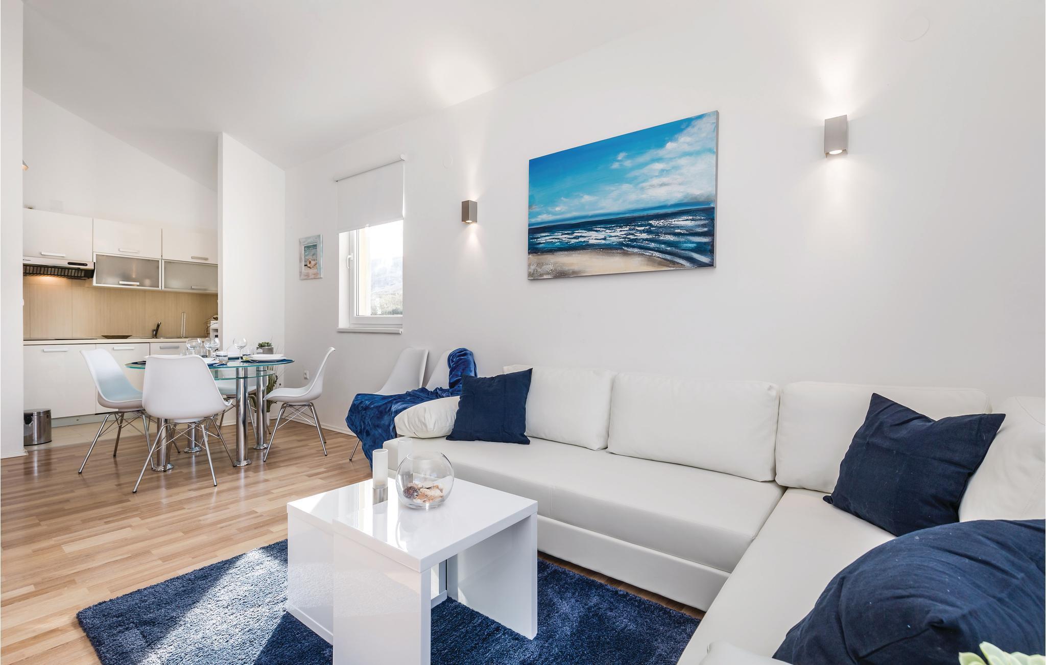 Auf einer der schönsten kroatischen Inseln, die über eine Brücke mit dem Festland verbunden ist, befindet sich diese zweistöckige Ferienwohnung. Sie ist modern eingerichtet und vom Balkon bietet sich eine schöne Aussicht auf das Meer. Im Dachgeschoss ist ein Schlafzimmer mit der minimalen Deckenhöhe von ca. 160 cm. Der Außenpool steht allen Gästen des Wohngebäudes zur Verfügung. Genießen Sie die Nähe zum Meer und besichtigen Sie die Stadt Pag mit ihren schönen Badestränden und dem reichhaltigen kulinarischen Angeboten in einem der Restaurants. Siehe auch CKP625.