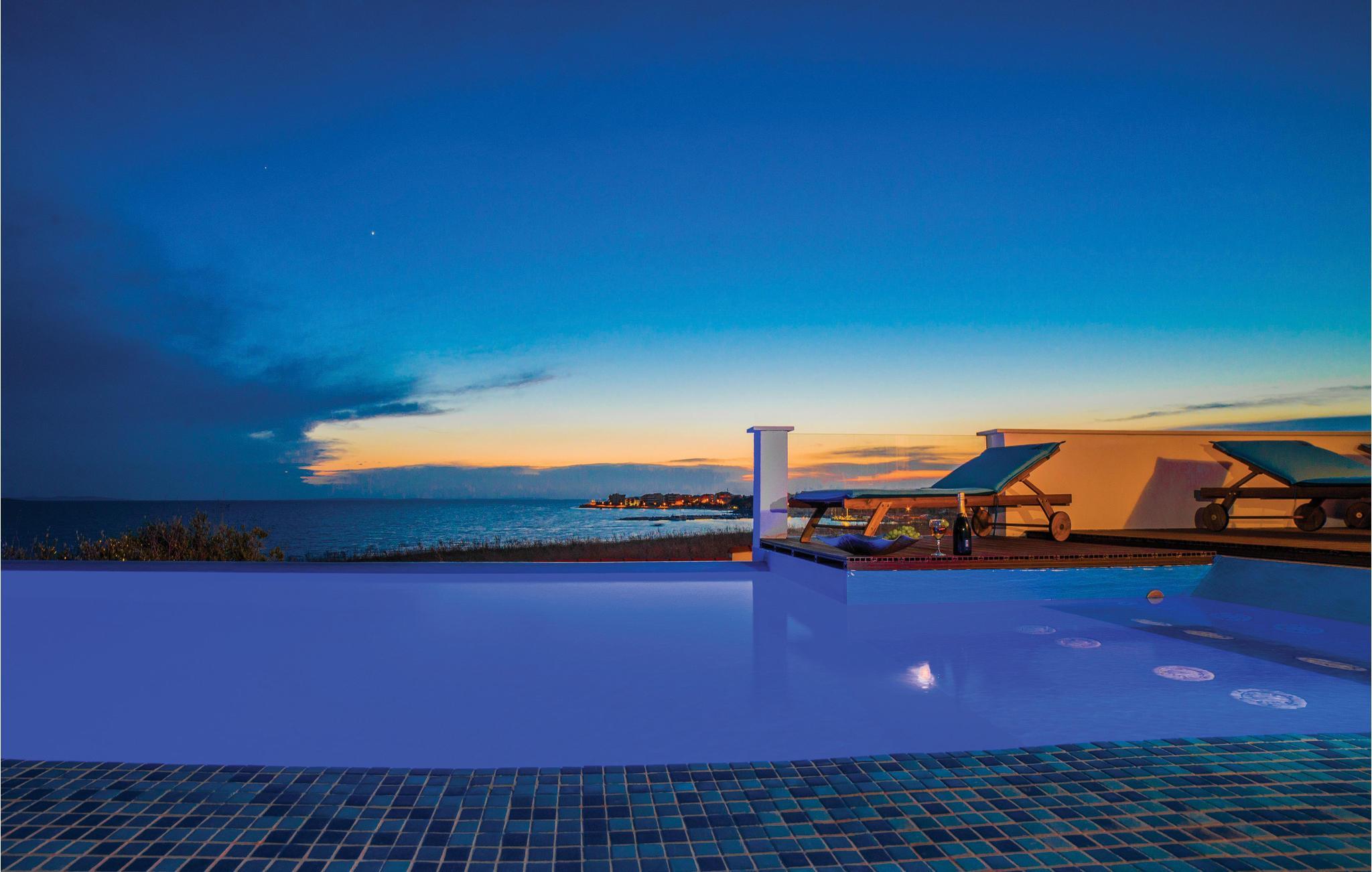 Vom großen Wohnzimmer aus gelangen Sie auf die Terrasse und dem herrlichen Überlaufpool, der auf 29 ° C beheizt oder bei Bedarf im Sommer auch gekühlt werden kann. Entspannen Sie auf den Sonnenliegen und lesen Sie Ihre Sommerlektüre, während sich die Kinder auf dem umzäunten Grundstück anderweitig beschäftigen. Auf dem Außengrill bereiten Sie köstliche Gerichte zu. Vom oberen Balkon genießen Sie den herrlichen Ausblick auf den Strand und das Meer. Alle Zimmer sind klimatisiert, so dass Sie auch in den heißen Sommermonaten entspannen können.