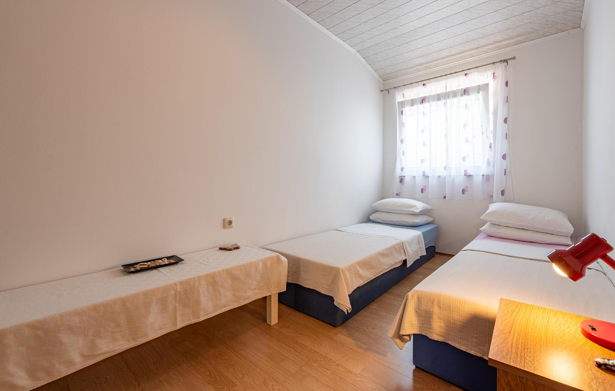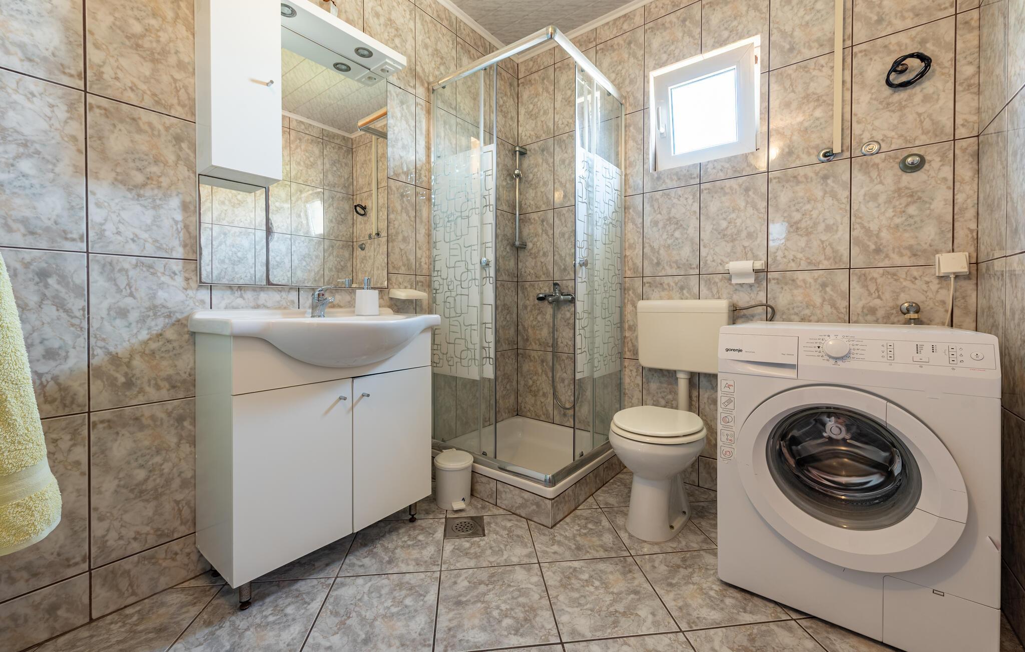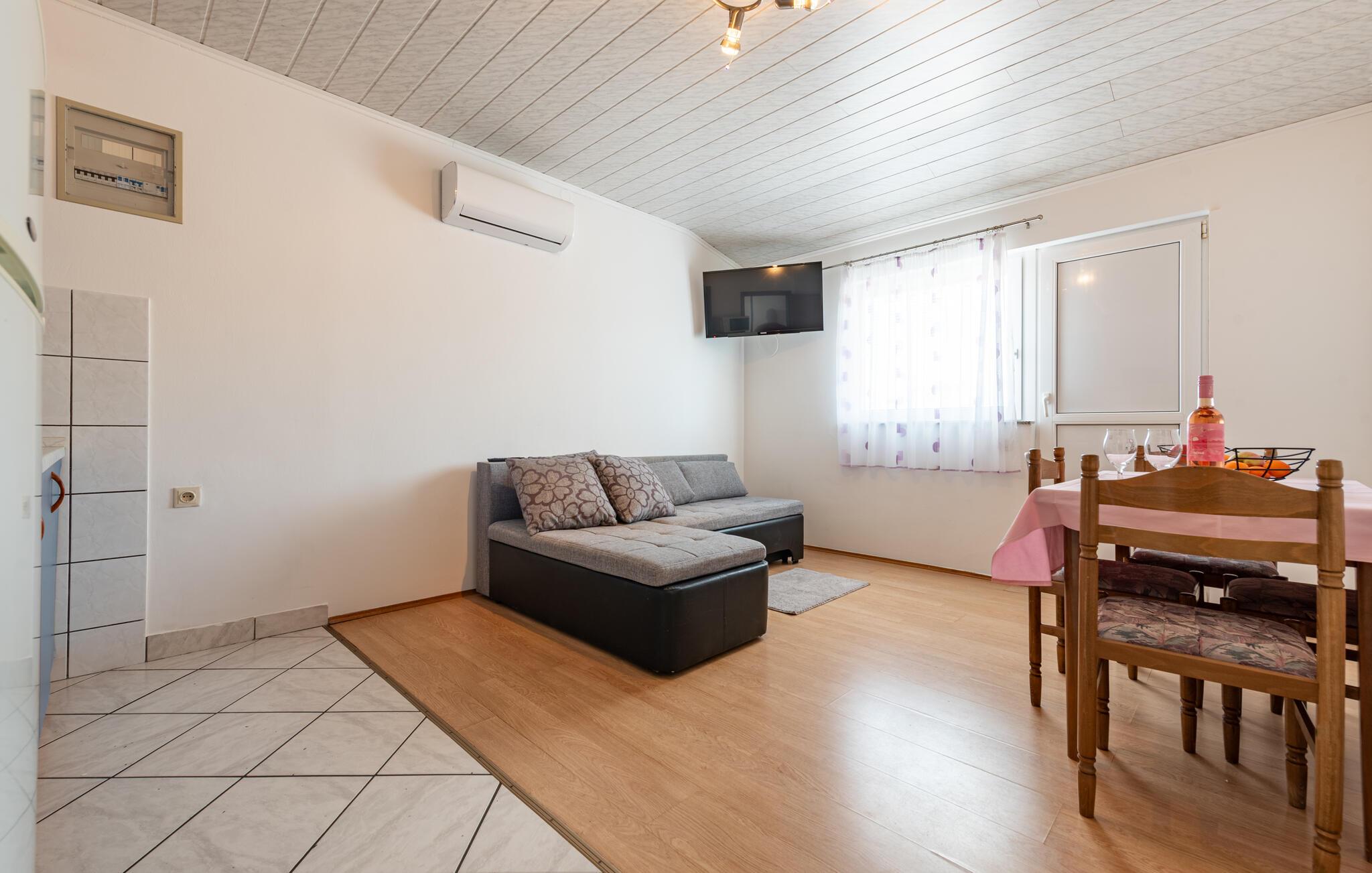 Diese gepflegte Ferienwohnung liegt nur wenige Schritte von einem der vielen wunderschönen Strände der Insel Pag entfernt. Machen Sie es sich hier mit Freunden oder der Familie bequem und freuen Sie sich auf harmonische Mahlzeiten am einladenden Esstisch sowie auf gemütliche Filmabende auf der großzügigen Sofalandschaft.