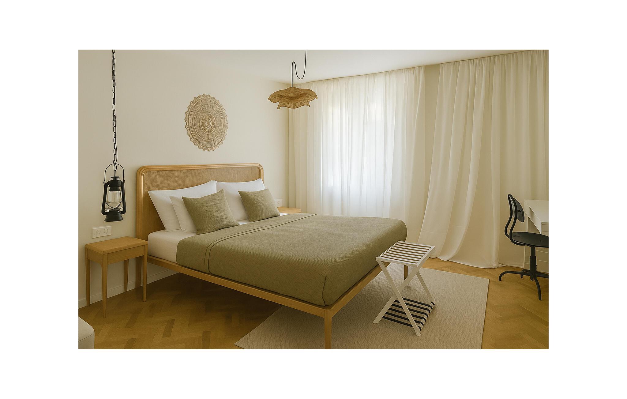 Schlafzimmer 17m2 (nr. 2) - 2 Schlafmöglichkeiten. (Doppelbett(en)). 1 Schlafmöglichkeit. (Schlafsofa,Matratze,Sonstiges).