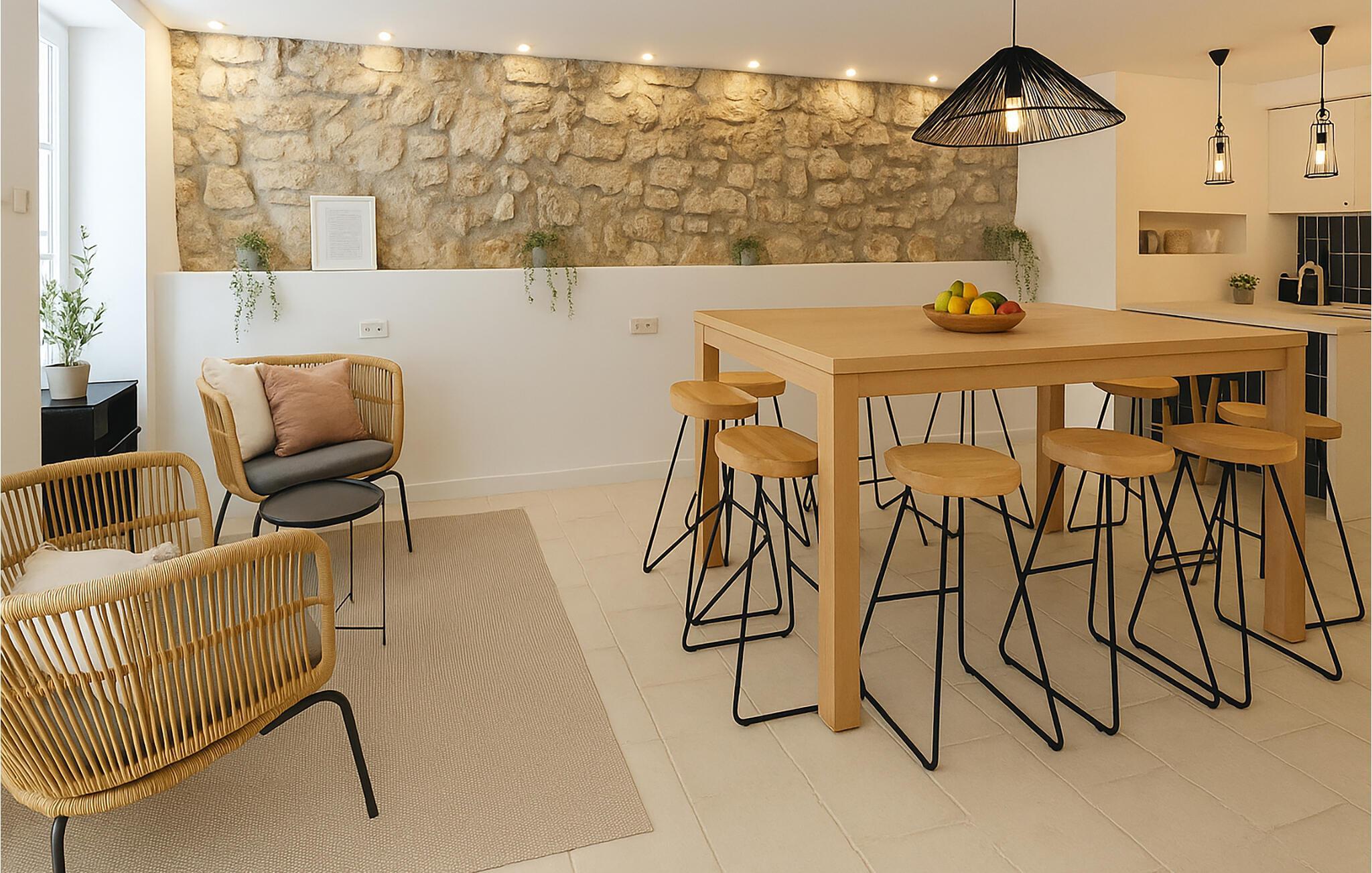 Stilvolles Mobiliar, umrahmt von Natursteinelementen, viel warmes Holz und liebevolle Details schaffen eine Atmosphäre, in der Sie sofort zur Ruhe kommen. Tanken Sie neue Energie bei einem gemütlichen Filmabend, hören Sie Ihre Lieblingsmusik oder zaubern Sie in der praktischen Küche leckere Mahlzeiten, die Sie mit einem guten kroatischen Wein servieren.