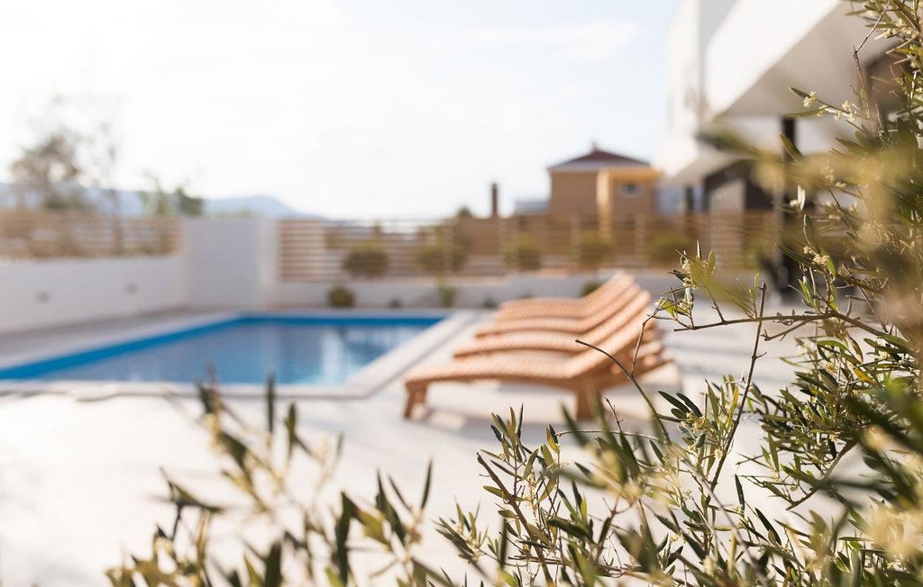 Die Insel Pag ist ein Reich aus Felsen und atemberaubenden Landschaften, Pager Spitze und gastronomischem Luxus. Die größte Stadt der gleichnamigen Insel beherbergt die luxuriöse moderne Villa Valentina mit wunderschönem Meerblick und interessanten Pager-Reliefs. Den Gästen dieses neu erbauten Hauses stehen 200 m² luxuriös eingerichteter Raum zur Verfügung, der bequem Platz für acht bis maximal zehn Personen bietet und Ihnen einen unvergesslichen Urlaub für Ihre Familie und Freunde beschert. Der Innenraum besteht aus vier komfortablen Schlafzimmern mit angeschlossenen Badezimmern, einer separaten Toilette und einem Erdgeschossraum, der eine voll ausgestattete Küche, ein gemütliches Esszimmer und ein Wohnzimmer beherbergt, die durch eine große Glaswand von außen getrennt sind. Im umzäunten Garten können Sie den von Sonnenliegen umgebenen Pool genießen, der zum Entspannen in der Sonne oder zum Beobachten des Sternenhimmels einlädt. Für Liebhaber der Meerestiefen ist der nächste Strand nur 200 Meter von dieser wunderschönen Villa entfernt. Verpassen Sie also nicht, an heißen Sommertagen ein Gefühl der Erfrischung im kristallklaren Meer zu erleben. Diese Unterkunft ist ideal für größere Gästegruppen, da sich die Schwestervilla Venus auf dem angrenzenden Grundstück befindet und so Ihrer großen Familie oder vielen Freunden einen unvergesslichen gemeinsamen Urlaub bescheren kann. Wählen Sie einen Traumurlaub auf dieser wunderschönen Insel mit der längsten Küste der Adria und erkunden Sie die vielen historischen und natürlichen Schätze dieser besonderen Insel. Haustiere sind in dieser Unterkunft nach Ermessen des Eigentümers oder gegen eine Gebühr gestattet.