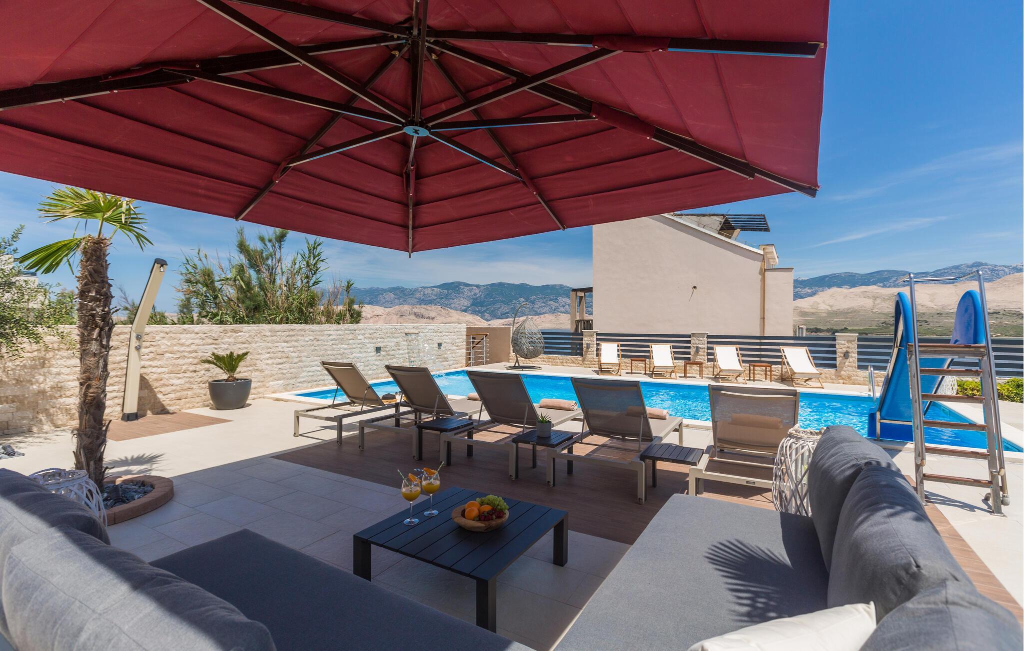 Bei dem herrlichen Ausblick, der sich Ihnen bei einem Aufenthalt in Villa Emma Pag bietet, werden Sie sicherlich den Blick dafür öffnen, was Sie von einem idealen Urlaub erwarten. Dieses Luxus-Ferienhaus bietet seinen Gästen ein komfortables Wohngefühl gepaart mit atemberaubendem Ausblick auf die wundervolle Landschaft der Insel Pag. Auf dieser zauberhaften Insel nördlich der Küstenstadt Zadar finden Sie die ideale Unterkunft für einen Urlaub an der kristallklaren Adria.