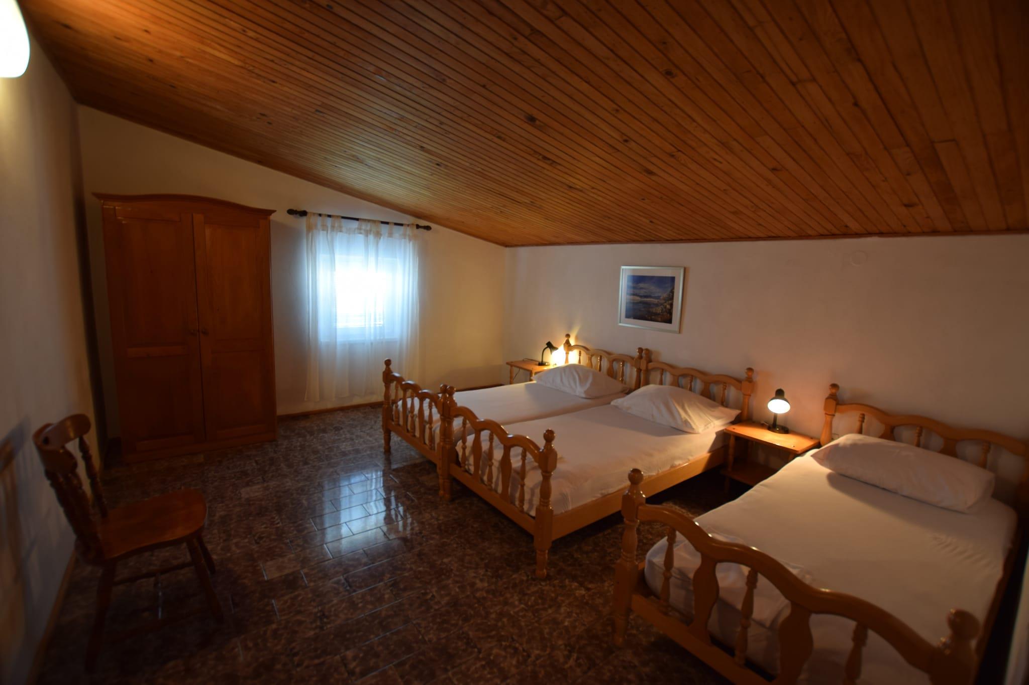 On the beautiful island of Pag, you will find this spacious 2-bedroom apartment for hosting a family of 5 or a small group of friends on vacation. The property also has a balcony that overlooks the stunning mountain views, and a shared outdoor kitchen to use. The town of Pag has a rich offer of the ancient monuments, culinary delights and an entirely different nature with magically beautiful stone scenery. You will be staying within walking distance from the nearest beach, perfect for spending sunny days swimming in the sea. There is also a restaurant, 0.15 km away, and a supermarket, 1.5 km away. Fun-loving guests can experience the nightlife, 2 km away. Prepare fresh, hot meals in the well-equipped kitchen and enjoy them together with friends and family on the balcony at home. An evening spent enjoying the barbecue outdoors is sure to be memorable. Parking is on-site. Zadar Airport is 70 km away.