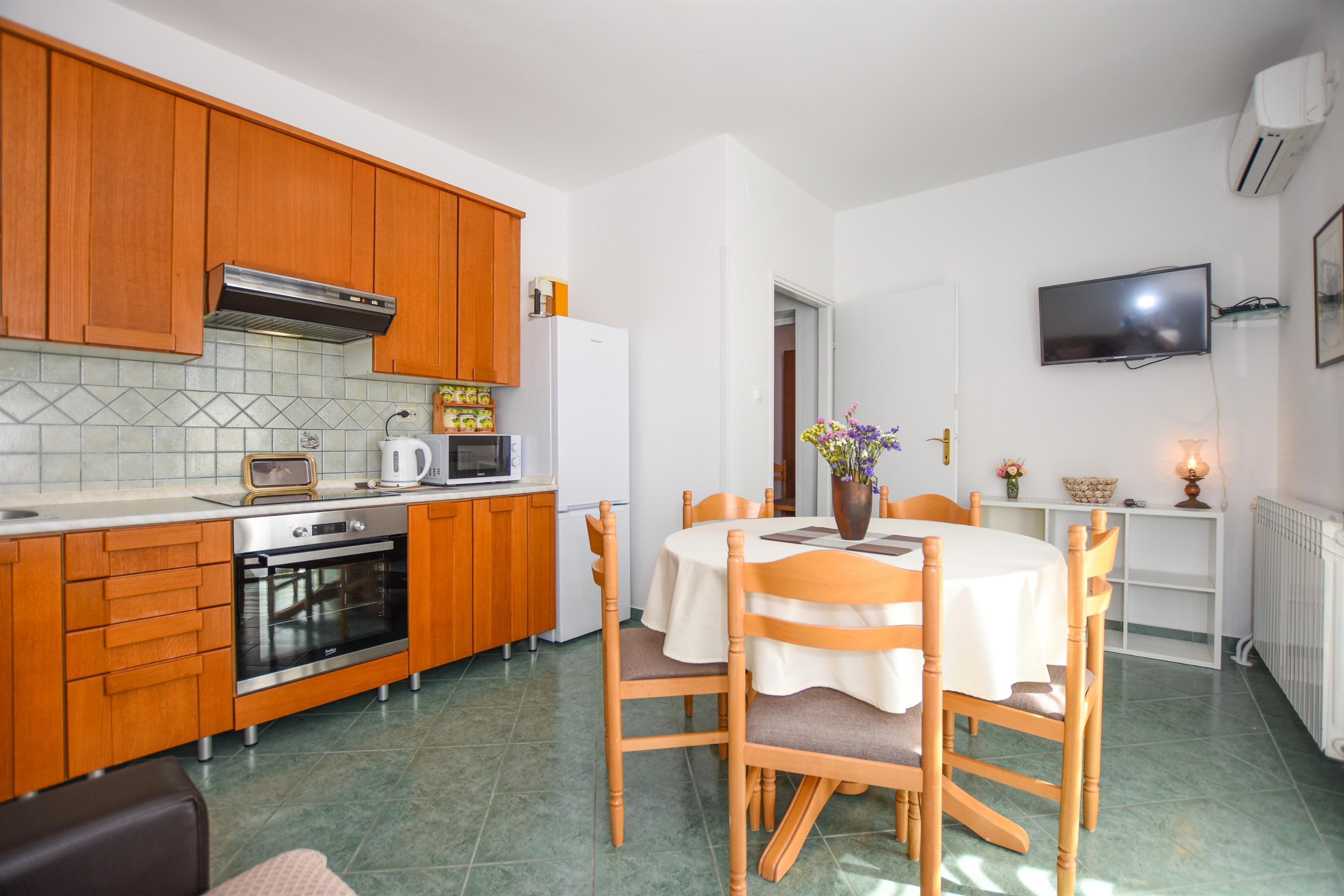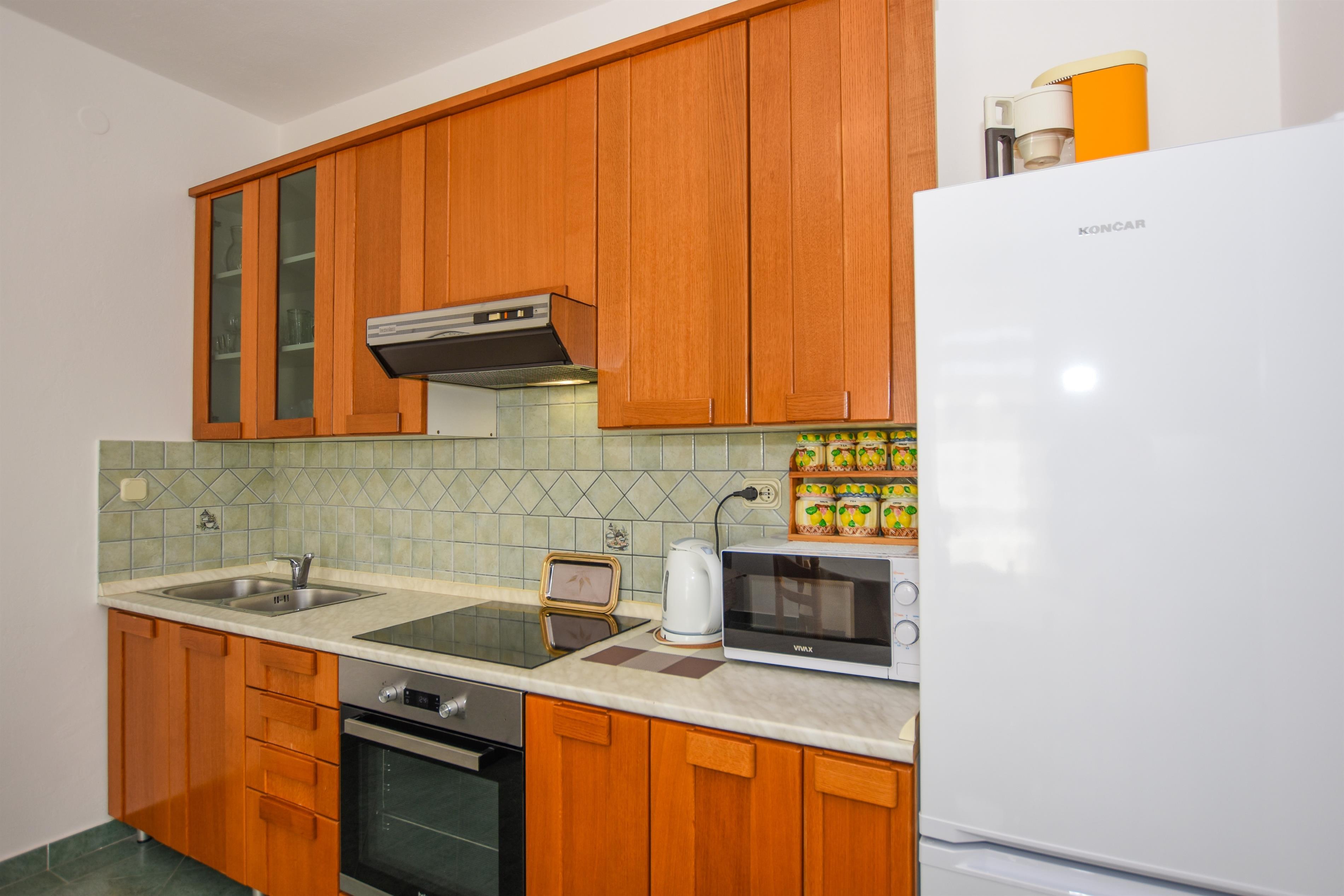 Apartment can accommodate 5 guests. Beds are situated in 2 sleeping rooms, within 59m2. Guests can use a private terrace to enjoy the warm summer evenings. The apartment offers the sea view. Food can be prepared using barbecue which is shared with other guests too.