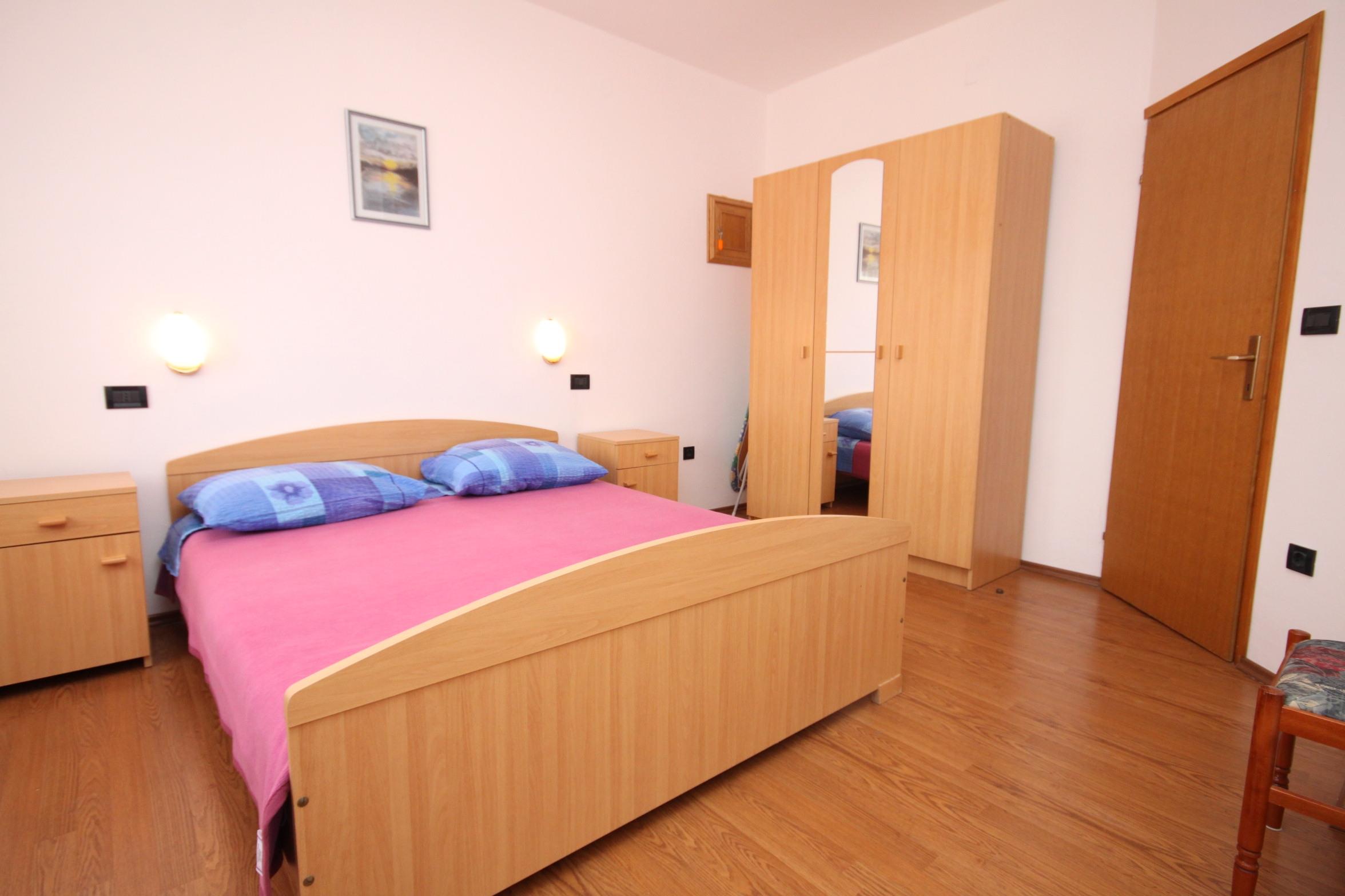 Apartment can accommodate 5 guests. Beds are situated in 2 sleeping rooms, but also in the living room, within 53m2. Guests can use a private terrace to enjoy the warm summer evenings. The apartment offers the sea view. Food can be prepared using barbecue which is shared with other guests too.