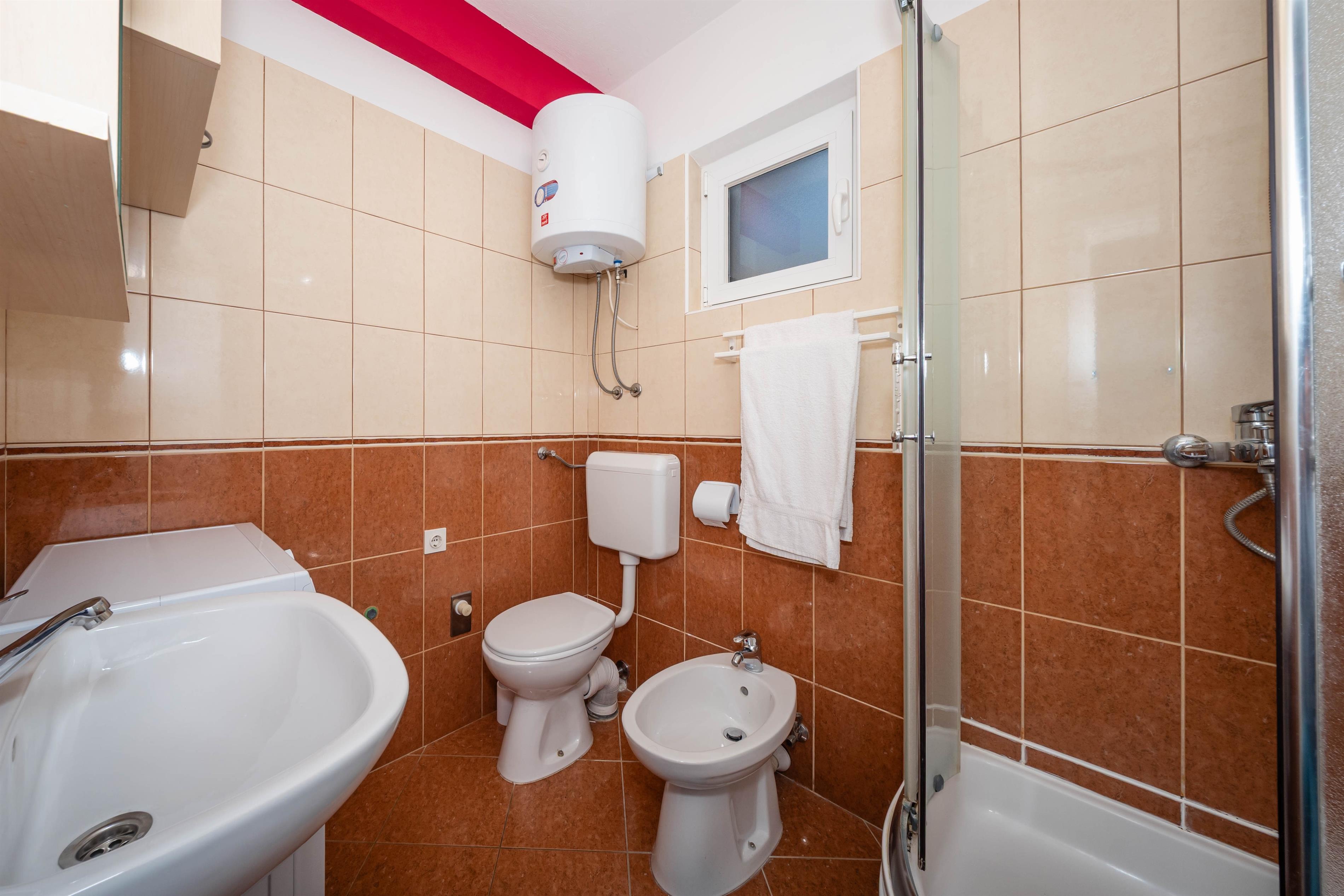 Apartment can accommodate 5 guests. Beds are situated in 2 sleeping rooms, within 58m2. Guests can use a private terrace to enjoy the warm summer evenings. The apartment offers the sea view. Food can be prepared using barbecue which is shared with other guests too.