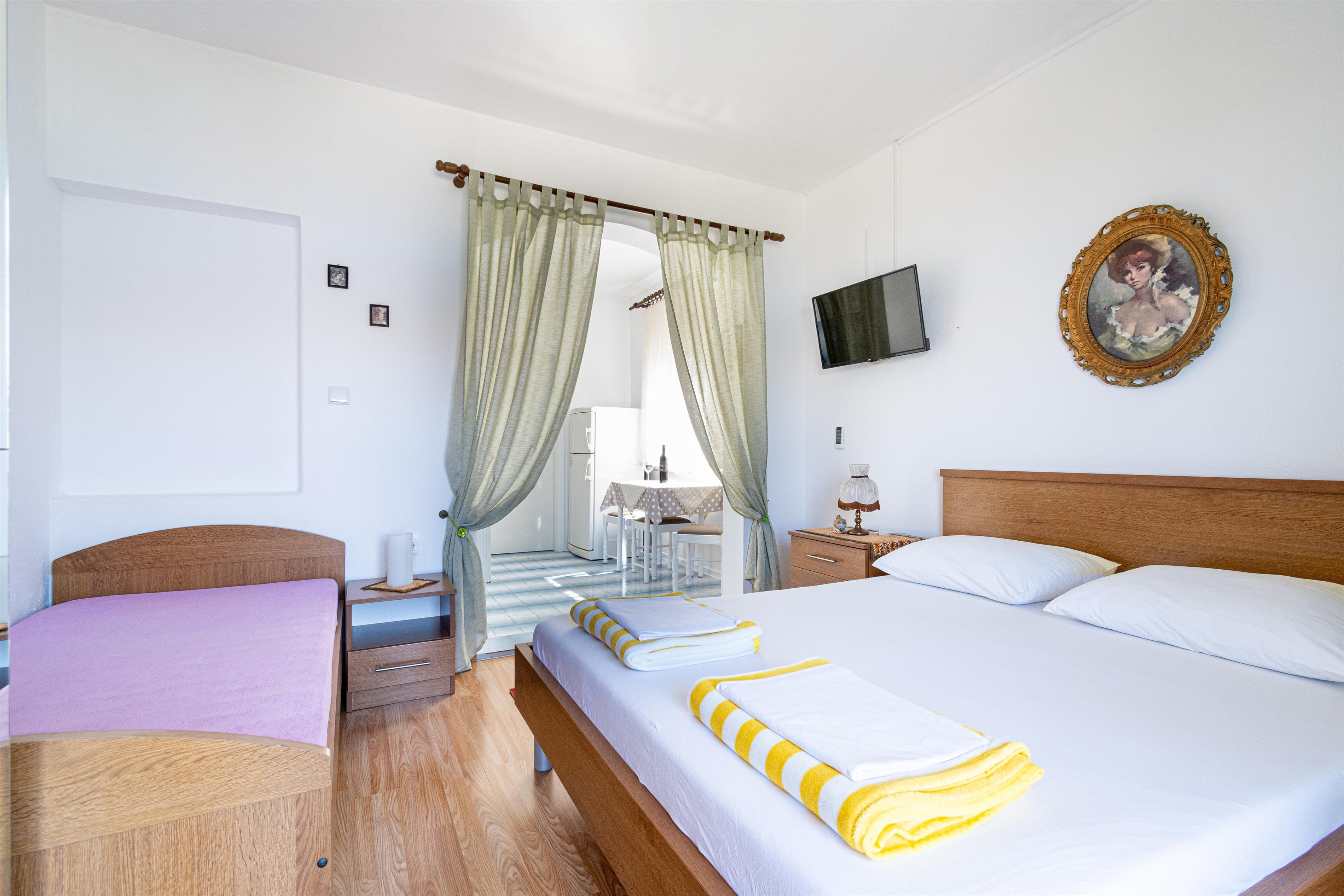 Studio flat can accommodate 3 guests. Beds are situated in 1 sleeping rooms, within 29m2. Guests can use a private balcony to enjoy the warm summer evenings. The studio offers the sea view. Food can be prepared using barbecue which is shared with other guests too.
