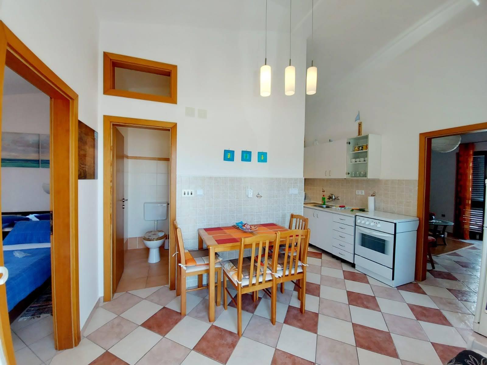 Apartment can accommodate 4 guests. Beds are situated in 2 sleeping rooms, within 44m2. Guests can use a private terrace to enjoy the warm summer evenings. The apartment offers the sea view. Food can be prepared using barbecue which is shared with other guests too.