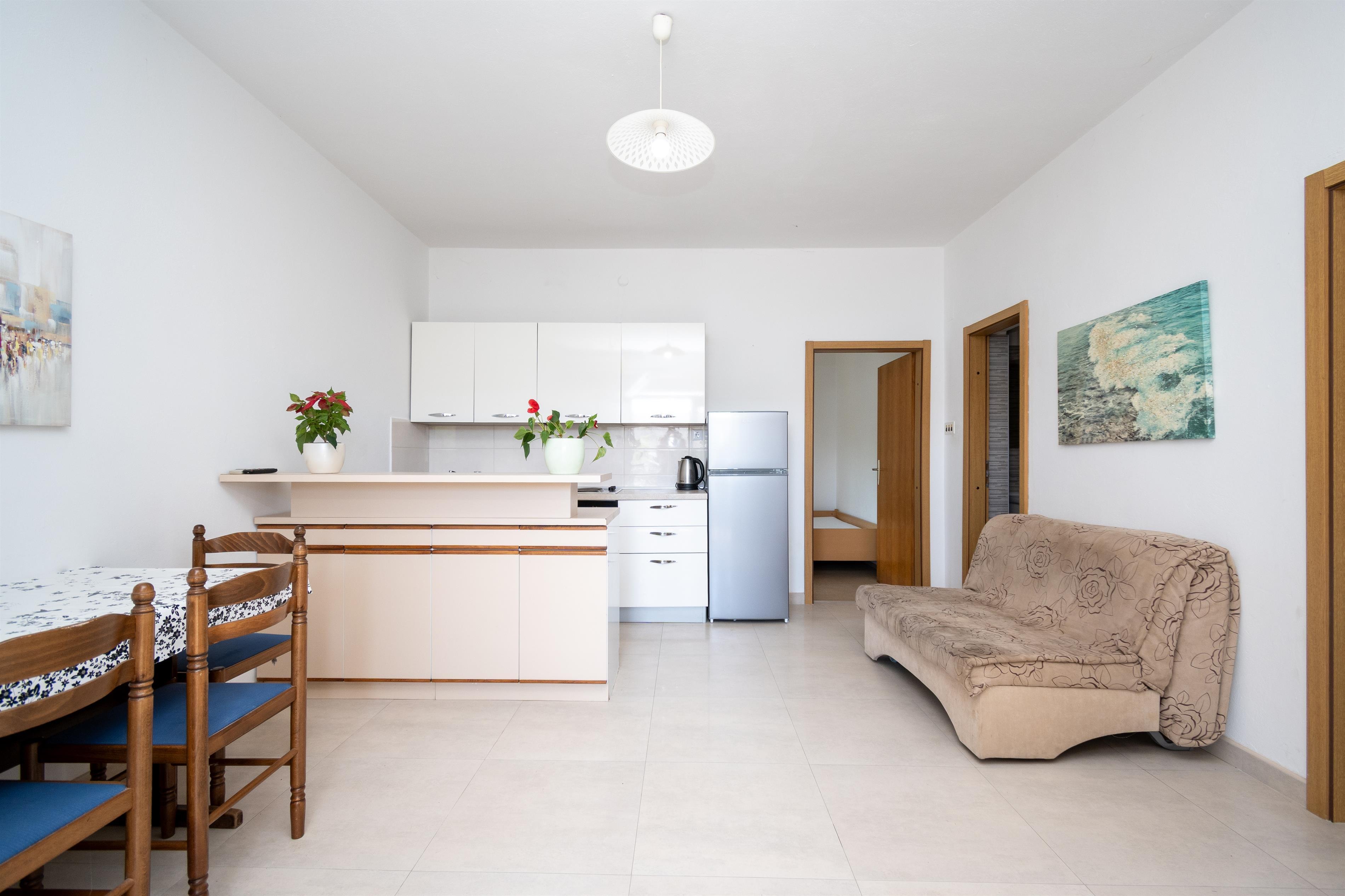 Apartment can accommodate 4 guests. Beds are situated in 2 sleeping rooms, within 48m2. Guests can use a private terrace to enjoy the warm summer evenings. The apartment offers the sea view. This accommodation unit welcomes pets at an additional charge.