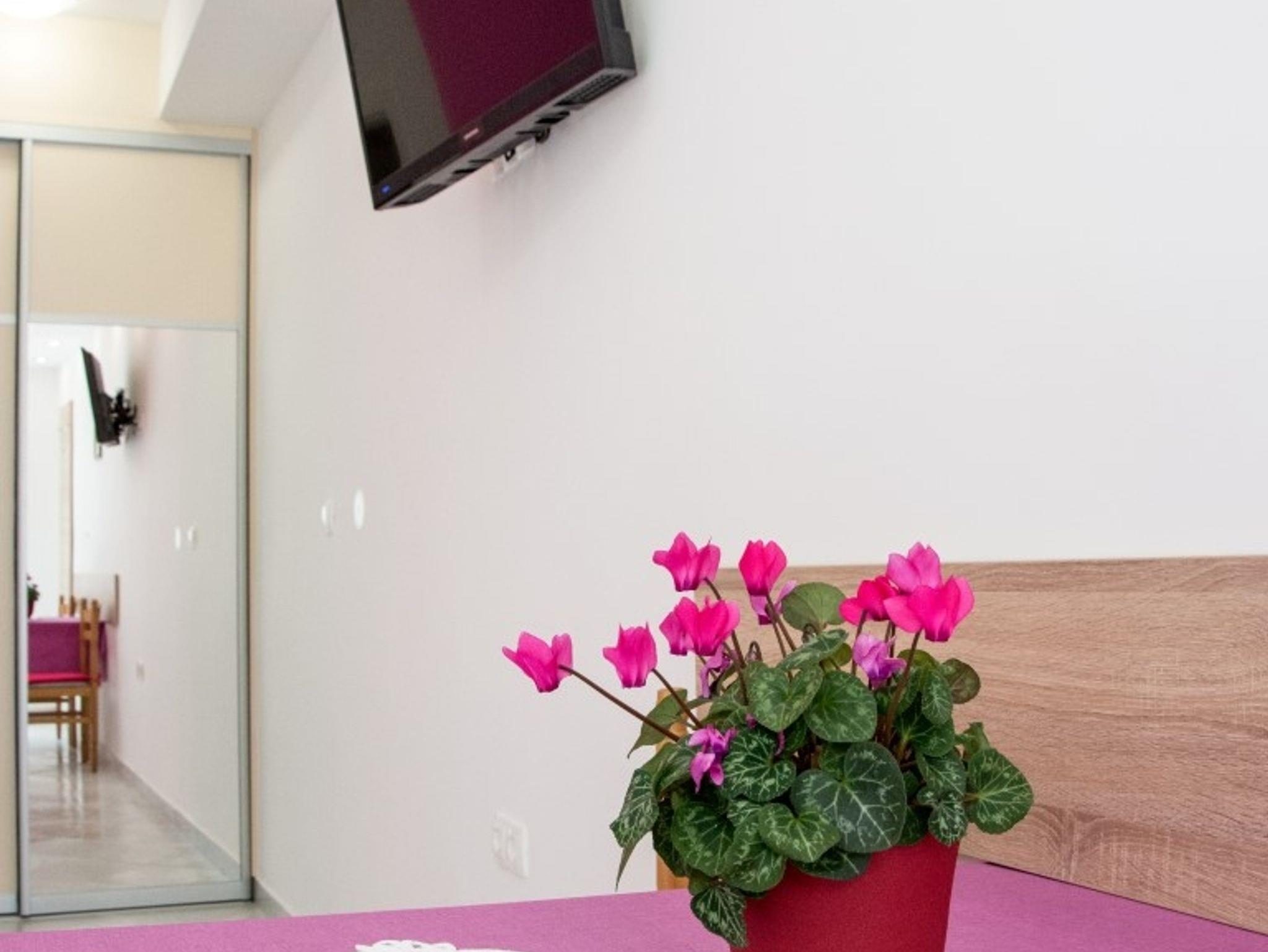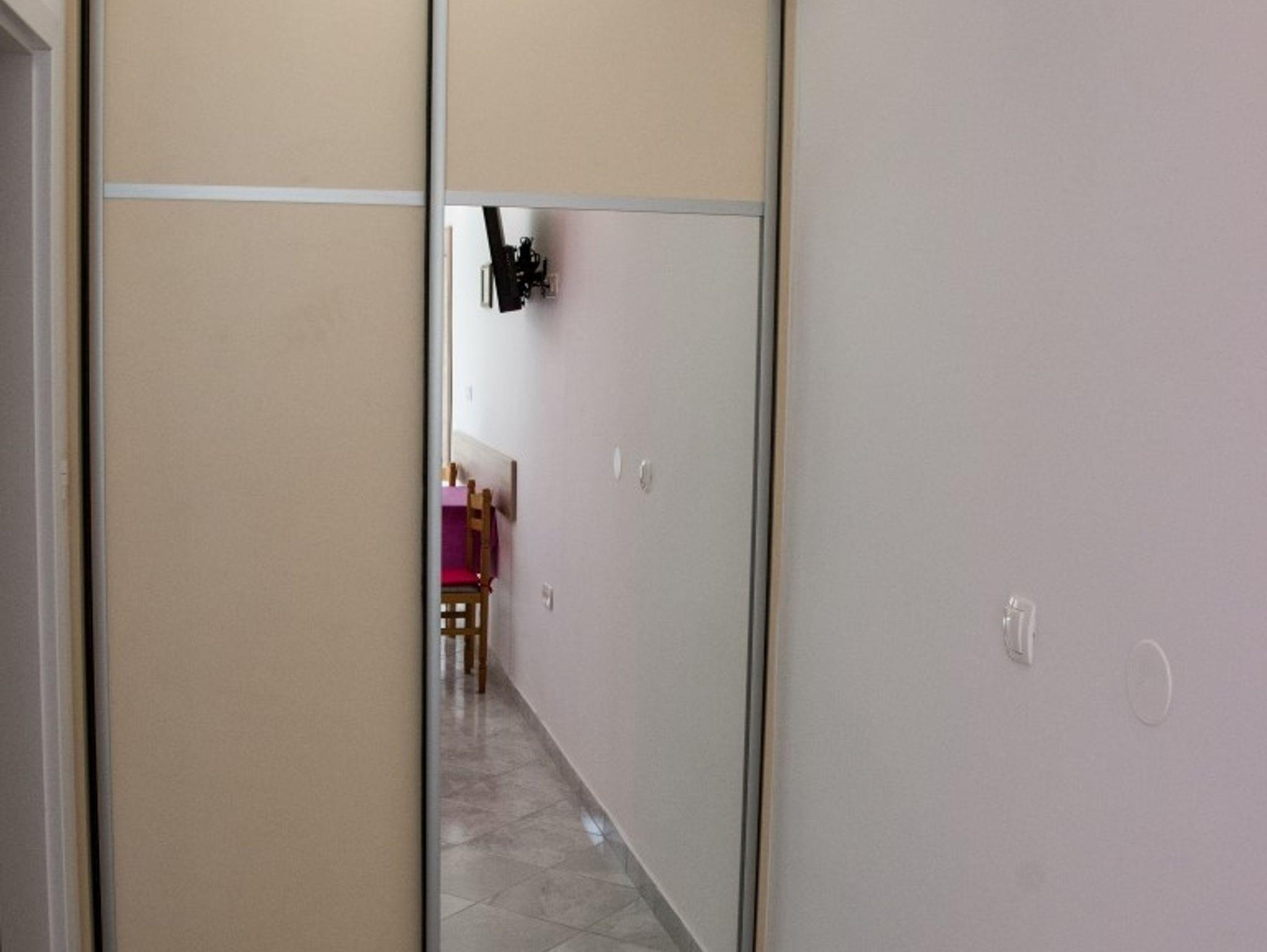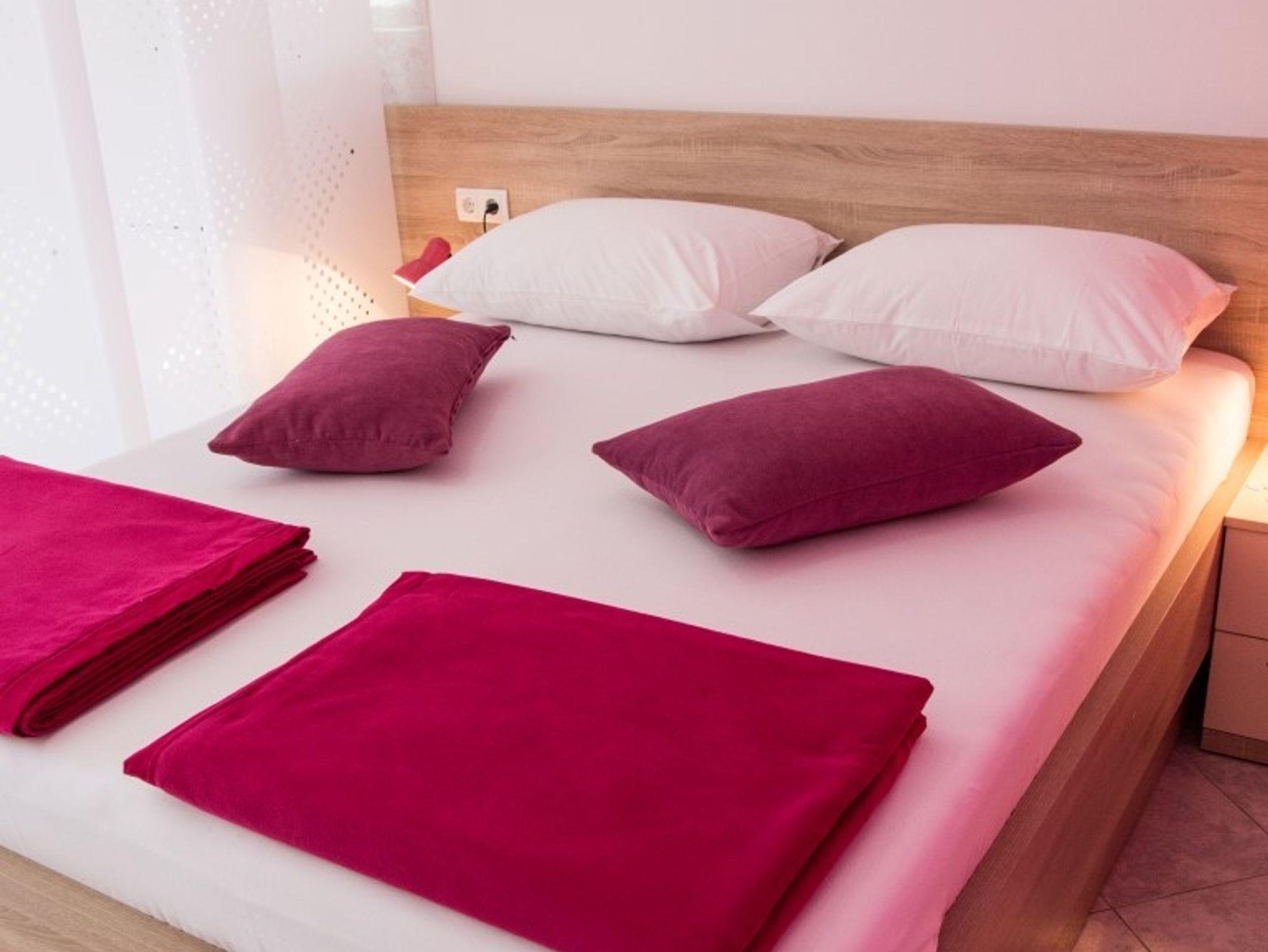Studio bietet Platz für 2 Gäste. Die Betten sind in Schlafzimmern, die es 1 gibt, innerhalb einer Gesamtfläche von 19m2, angeordnet. Die Gäste haben eine eigene Terrasse zur Verfügung, auf der sie in warmen Sommernächten genießen können. Das Studio-Apartment bietet Meerblick. Es ist erlaubt, Speisen auf dem Gemeinschafts-Grill vorzubereiten. In der Unterkunftseinheit besteht die Möglichkeit des Mitbringens von Haustieren gegen Aufpreis. IM PREIS INBEGRIFFEN: Kurtaxe, Endreinigung, Klimatisierung, Parkplatz, Internet, Kinderbett, Bügeleisen, Bügelbrett, Föhn. VERBINDLICHE ZUSÄTZLICHE KOSTEN: Aufzahlung für Kurzaufenthalte (prozentualer Zuschlag pro Nächtigungsanzahl: 30% - 1, 20% - 2, 10% - 3). UNVERBINDLICHE ZUSÄTZLICHE KOSTEN: Wäschewaschen (2,00 € Waschen), Haustiere (15,00 € pro Nacht). Die Verfügbarkeit zusätzlicher Dienstleistungen in Ihrem reservierten Termin und die Preise derselben (falls nicht aufgeführt) müssen im Voraus überprüft werden. Zusätzliche Dienstleistungen die in der Zahlungsaufforderung nicht aufgeführt sind werden direkt beim Vermieter bezahlt, angenommen der Gast nutzt auch diese. Ermäßigung auf den Grundpreis: Gratistag 21=19 (bei einem Aufenthalt von 21 Tagen oder mehr erhalten Sie 2 Gratistage für den Aufenthalt bis 31.12.26).