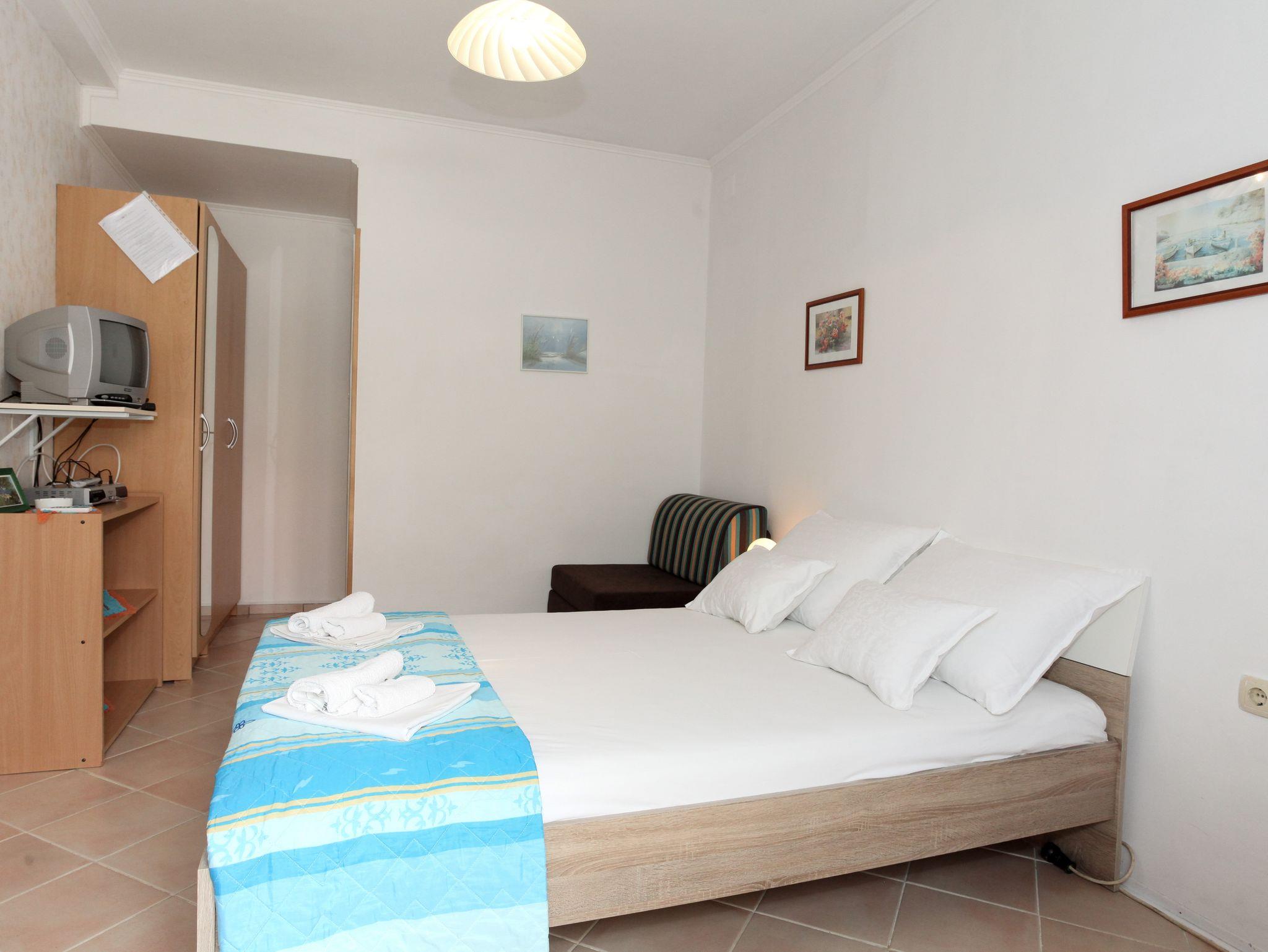 Studio bietet Platz für 2 Gäste. Die Betten sind in Schlafzimmern, die es 1 gibt, innerhalb einer Gesamtfläche von 20m2, angeordnet. Die Gäste haben eine eigene Terrasse zur Verfügung, auf der sie in warmen Sommernächten genießen können. Es ist erlaubt, Speisen auf dem Gemeinschafts-Grill vorzubereiten. IM PREIS INBEGRIFFEN: Kurtaxe, Endreinigung, Parkplatz, Internet, Zusatzbett, Bügeleisen, Bügelbrett. VERBINDLICHE ZUSÄTZLICHE KOSTEN: Aufzahlung für Kurzaufenthalte (prozentualer Zuschlag pro Nächtigungsanzahl: 30% - 1, 20% - 2, 10% - 3). UNVERBINDLICHE ZUSÄTZLICHE KOSTEN: Klimatisierung (5,00 € pro Nacht). Die Verfügbarkeit zusätzlicher Dienstleistungen in Ihrem reservierten Termin und die Preise derselben (falls nicht aufgeführt) müssen im Voraus überprüft werden. Zusätzliche Dienstleistungen die in der Zahlungsaufforderung nicht aufgeführt sind werden direkt beim Vermieter bezahlt, angenommen der Gast nutzt auch diese.