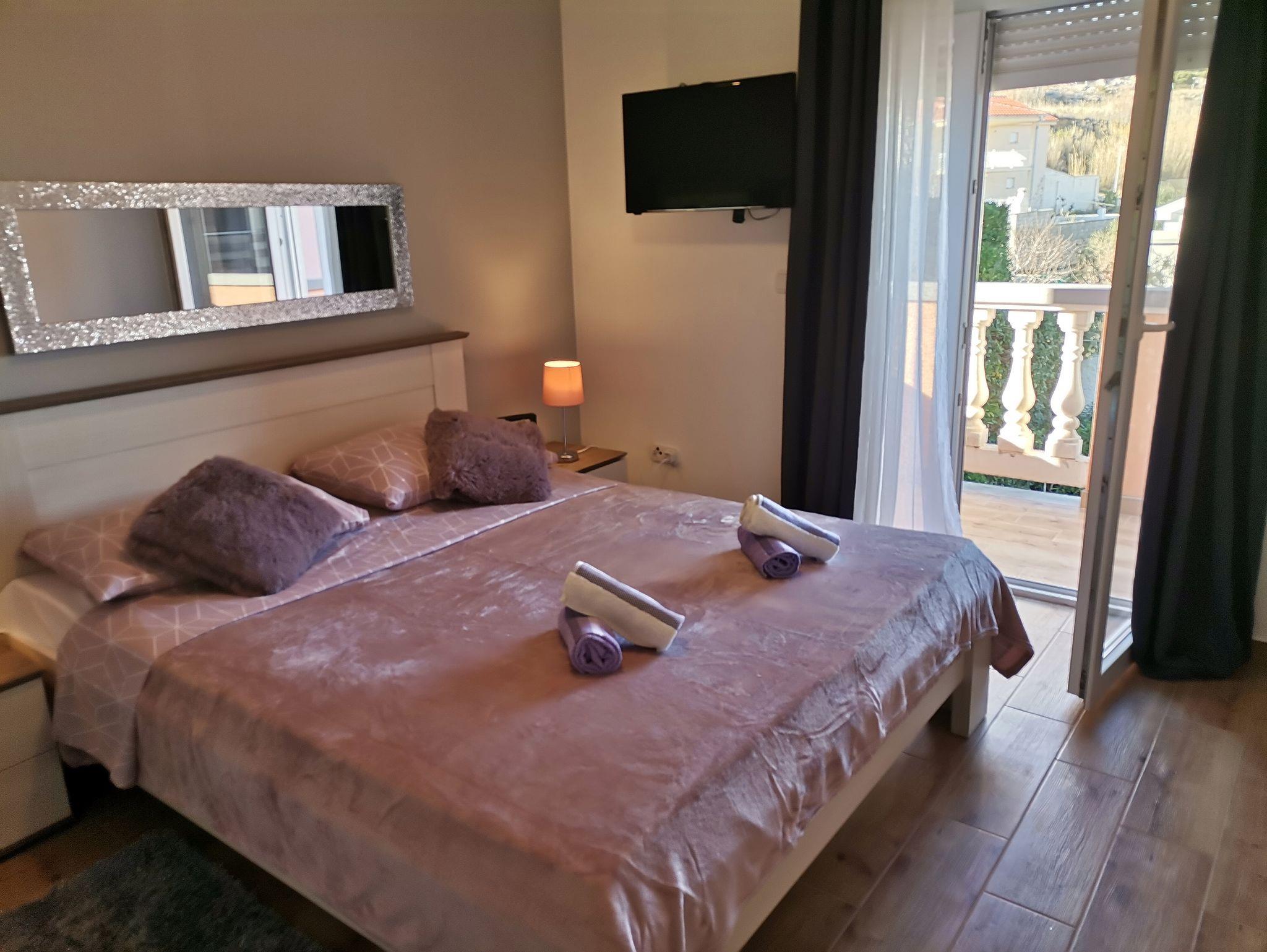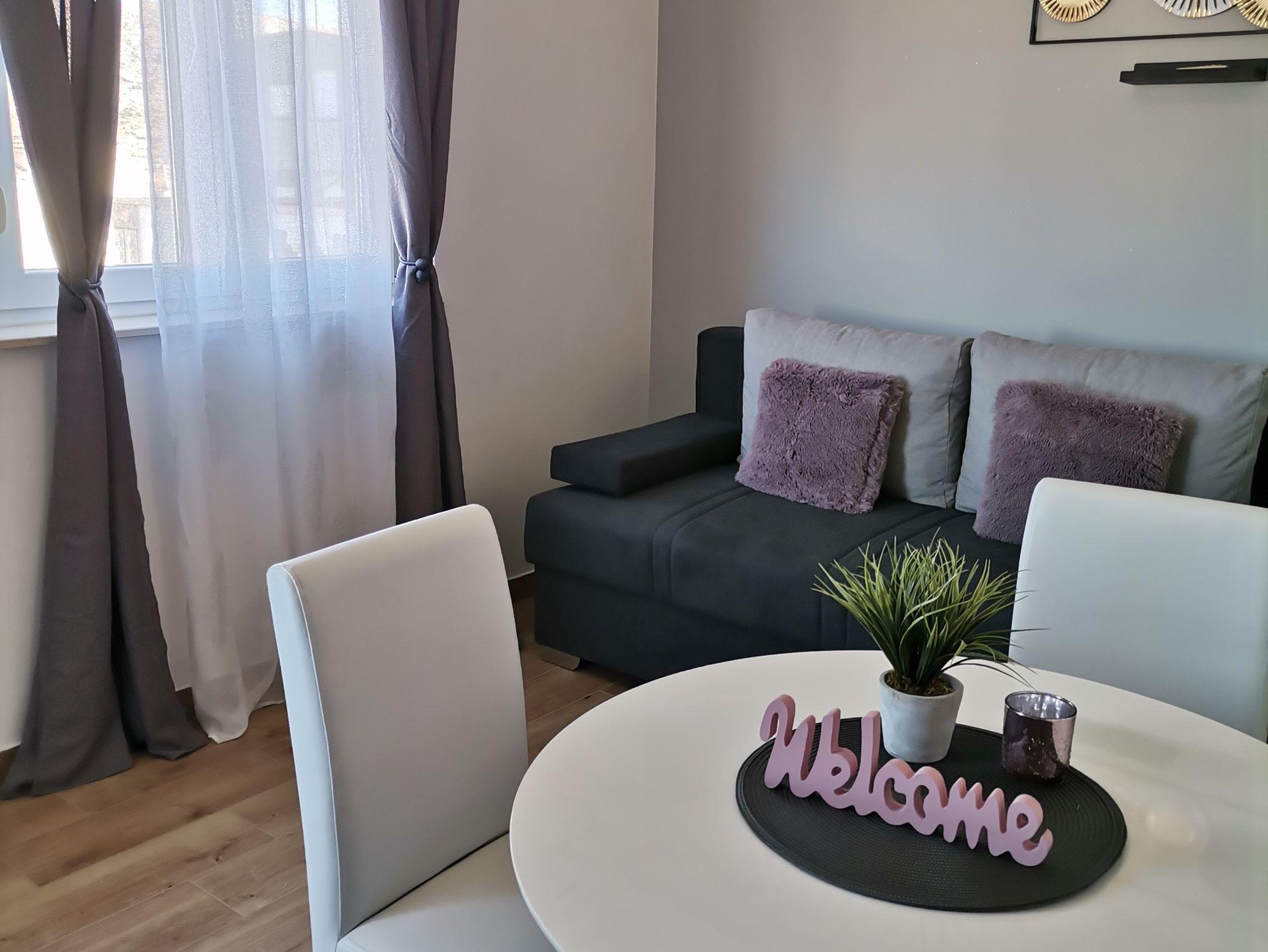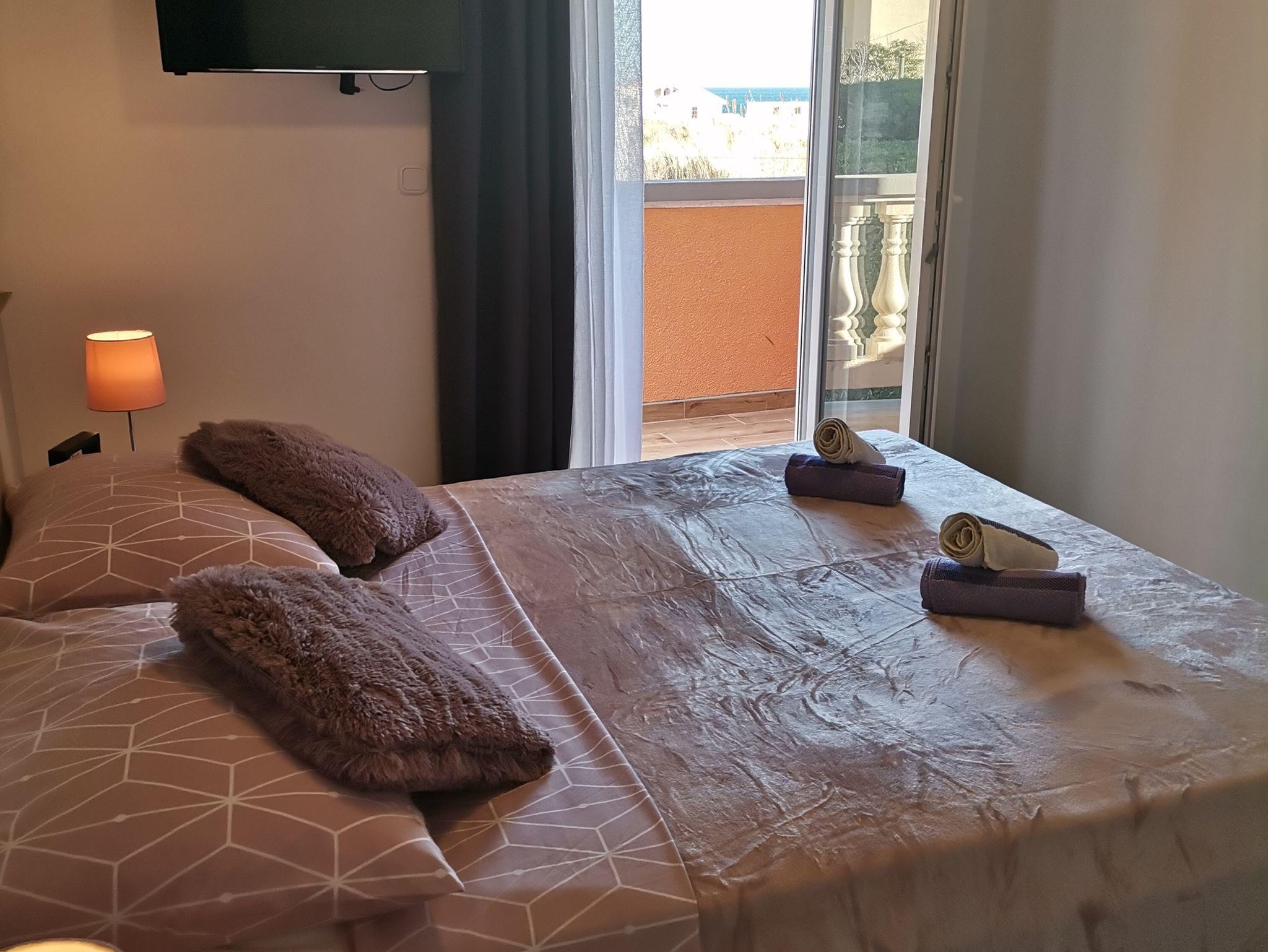 Ferienwohnung bietet Platz für 2 Gäste. Die Betten sind in Schlafzimmern, die es 1 gibt, innerhalb einer Gesamtfläche von 28m2, angeordnet. Die Gäste haben einen eigenen Balkon zur Verfügung, auf der sie in warmen Sommernächten genießen können. Das Apartment bietet Meerblick. Es ist erlaubt, Speisen auf dem Gemeinschafts-Grill vorzubereiten. Während ihres Aufenthalts können Gäste das gemeinsam zur Nutzung stehende Schwimmbad benutzen. IM PREIS INBEGRIFFEN: Kurtaxe, Endreinigung, Klimatisierung, Pool, Parkplatz, Internet, Wäschewaschen, Bügeleisen, Föhn. VERBINDLICHE ZUSÄTZLICHE KOSTEN: Aufzahlung für Kurzaufenthalte (prozentualer Zuschlag pro Nächtigungsanzahl: 30% - 1, 20% - 2, 10% - 3). Die Verfügbarkeit zusätzlicher Dienstleistungen in Ihrem reservierten Termin und die Preise derselben (falls nicht aufgeführt) müssen im Voraus überprüft werden. Zusätzliche Dienstleistungen die in der Zahlungsaufforderung nicht aufgeführt sind werden direkt beim Vermieter bezahlt, angenommen der Gast nutzt auch diese. Ermäßigung auf den Grundpreis: Gratistag 21=19 (bei einem Aufenthalt von 21 Tagen oder mehr erhalten Sie 2 Gratistage für den Aufenthalt bis 31.12.26).