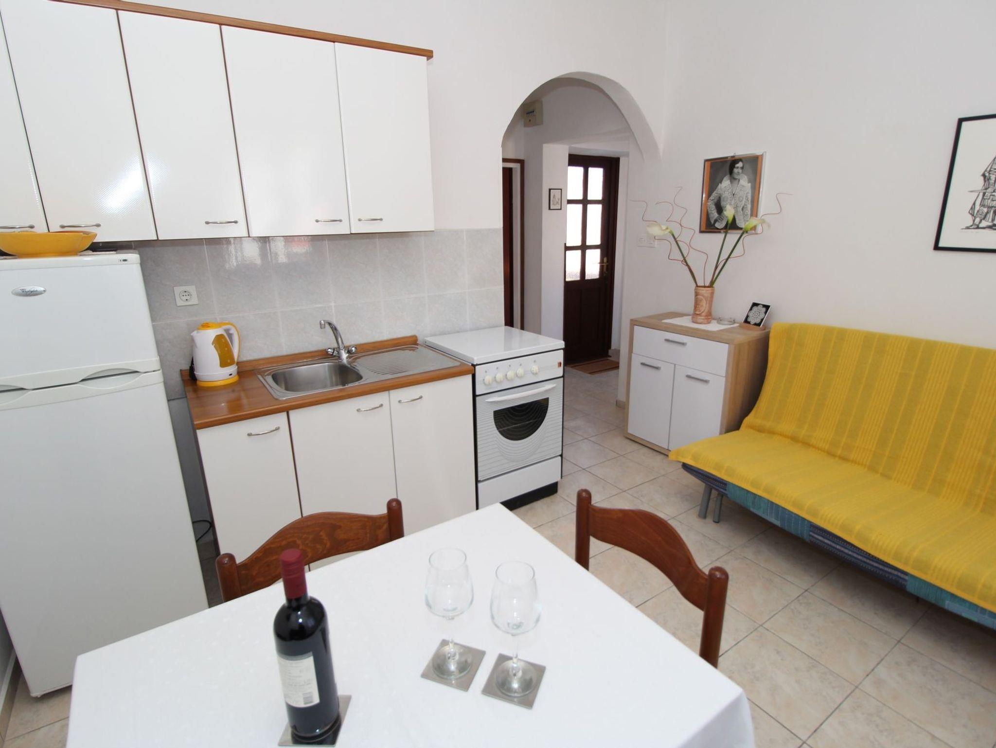 Ferienwohnung bietet Platz für 3 Gäste. Die Betten sind in Schlafzimmern, die es 1 gibt, und in Esszimmer, innerhalb einer Gesamtfläche von 25m2, angeordnet. Die Gäste haben einen eigenen Balkon zur Verfügung, auf der sie in warmen Sommernächten genießen können. Das Apartment bietet Meerblick. Es ist erlaubt, Speisen auf dem Gemeinschafts-Grill vorzubereiten. In der Unterkunftseinheit besteht die Möglichkeit des Mitbringens von Haustieren gegen Aufpreis. IM PREIS INBEGRIFFEN: Kurtaxe, Endreinigung, Parkplatz, Internet, Kinderbett. VERBINDLICHE ZUSÄTZLICHE KOSTEN: Aufzahlung für Kurzaufenthalte (prozentualer Zuschlag pro Nächtigungsanzahl: 30% - 1, 20% - 2, 10% - 3). UNVERBINDLICHE ZUSÄTZLICHE KOSTEN: Klimatisierung (7,00 € pro Nacht), Wäschewaschen (5,00 € Waschen), Haustiere (5,00 € pro Nacht). Die Verfügbarkeit zusätzlicher Dienstleistungen in Ihrem reservierten Termin und die Preise derselben (falls nicht aufgeführt) müssen im Voraus überprüft werden. Zusätzliche Dienstleistungen die in der Zahlungsaufforderung nicht aufgeführt sind werden direkt beim Vermieter bezahlt, angenommen der Gast nutzt auch diese.