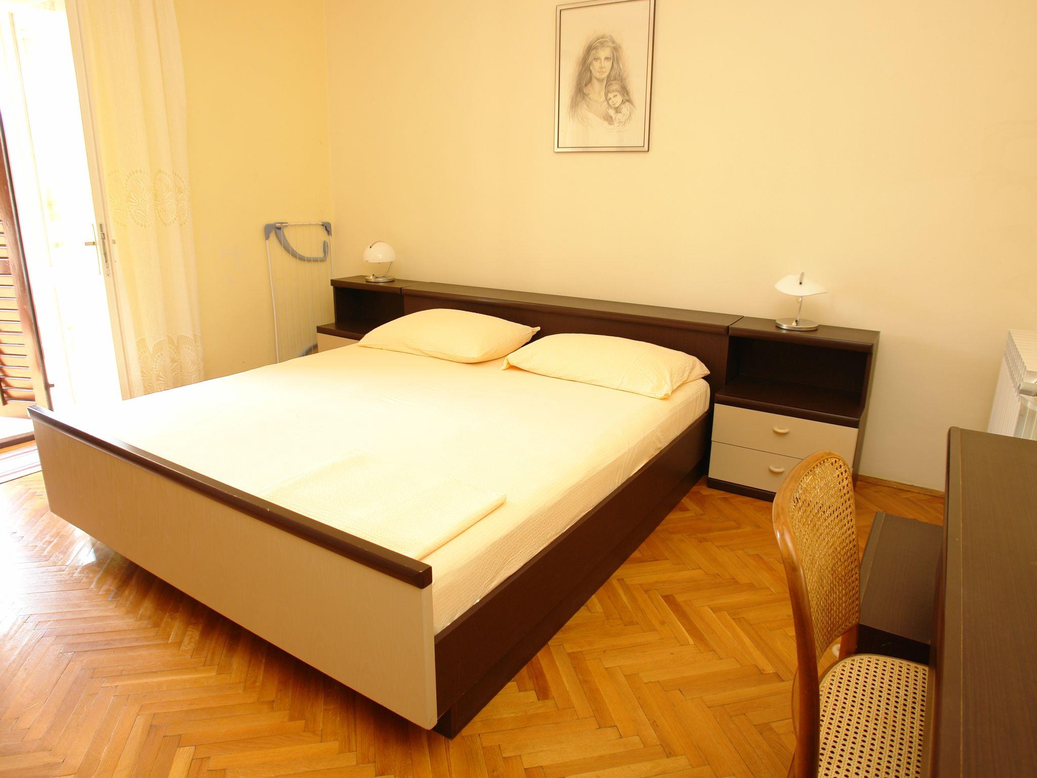 Zimmer bietet Platz für 2 Gäste. Die Betten sind in Schlafzimmern, die es 1 gibt, innerhalb einer Gesamtfläche von 19m2, angeordnet. Die Gäste haben einen eigenen Balkon zur Verfügung, auf der sie in warmen Sommernächten genießen können. Das Zimmer bietet Meerblick. Es ist erlaubt, Speisen auf dem Gemeinschafts-Grill vorzubereiten. In der Unterkunftseinheit besteht die Möglichkeit des Mitbringens von Haustieren gegen Aufpreis. Die reservierte Unterkunftseinheit ist ein Zimmer mit eigenem Badezimmer ohne die Möglichkeit der Nutzung einer Küche. IM PREIS INBEGRIFFEN: Kurtaxe, Endreinigung, Parkplatz, Internet, Kinderbett. VERBINDLICHE ZUSÄTZLICHE KOSTEN: Aufzahlung für Kurzaufenthalte (prozentualer Zuschlag pro Nächtigungsanzahl: 30% - 1, 20% - 2, 10% - 3). UNVERBINDLICHE ZUSÄTZLICHE KOSTEN: Klimatisierung (7,00 € pro Nacht), Wäschewaschen (5,00 € Waschen), Haustiere (5,00 € pro Nacht). Die Verfügbarkeit zusätzlicher Dienstleistungen in Ihrem reservierten Termin und die Preise derselben (falls nicht aufgeführt) müssen im Voraus überprüft werden. Zusätzliche Dienstleistungen die in der Zahlungsaufforderung nicht aufgeführt sind werden direkt beim Vermieter bezahlt, angenommen der Gast nutzt auch diese.