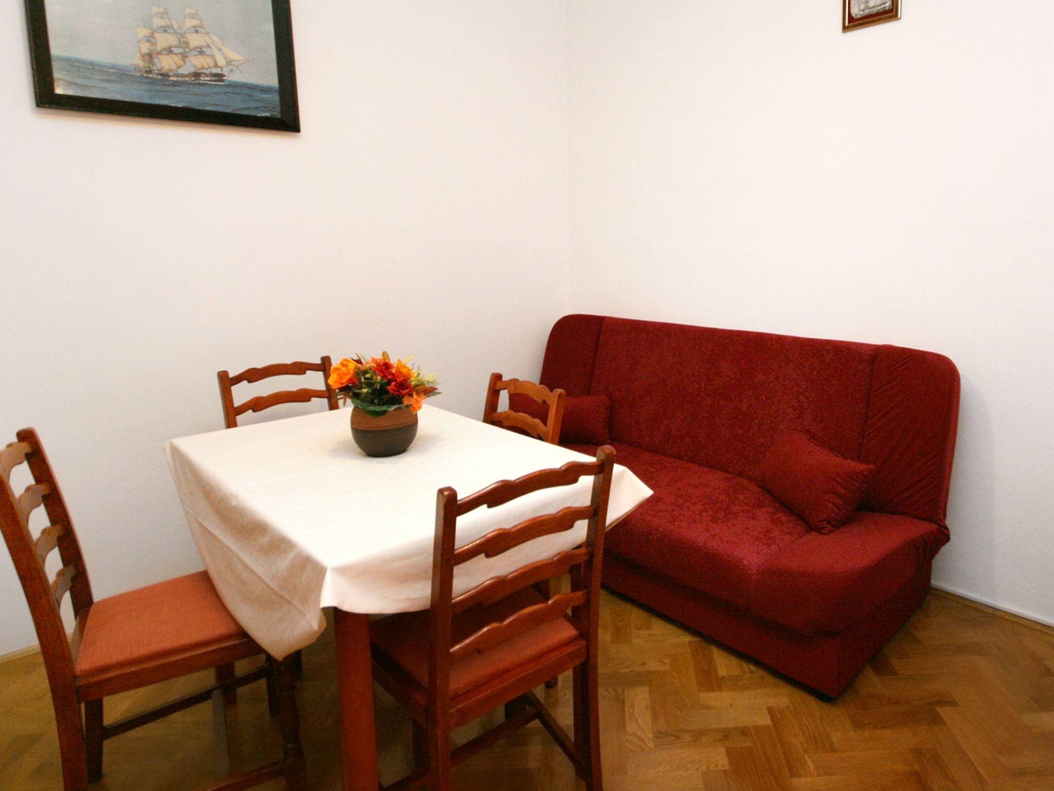 Ferienwohnung bietet Platz für 3 Gäste. Die Betten sind in Schlafzimmern, die es 1 gibt, und in Esszimmer, innerhalb einer Gesamtfläche von 29m2, angeordnet. Die Gäste haben eine eigene Terrasse zur Verfügung, auf der sie in warmen Sommernächten genießen können. Das Apartment bietet Meerblick. Es ist erlaubt, Speisen auf dem Gemeinschafts-Grill vorzubereiten. IM PREIS INBEGRIFFEN: Kurtaxe, Endreinigung, Klimatisierung, Parkplatz, Internet, Bügeleisen, tragbarer Grill. Die Verfügbarkeit zusätzlicher Dienstleistungen in Ihrem reservierten Termin und die Preise derselben (falls nicht aufgeführt) müssen im Voraus überprüft werden. Zusätzliche Dienstleistungen die in der Zahlungsaufforderung nicht aufgeführt sind werden direkt beim Vermieter bezahlt, angenommen der Gast nutzt auch diese.