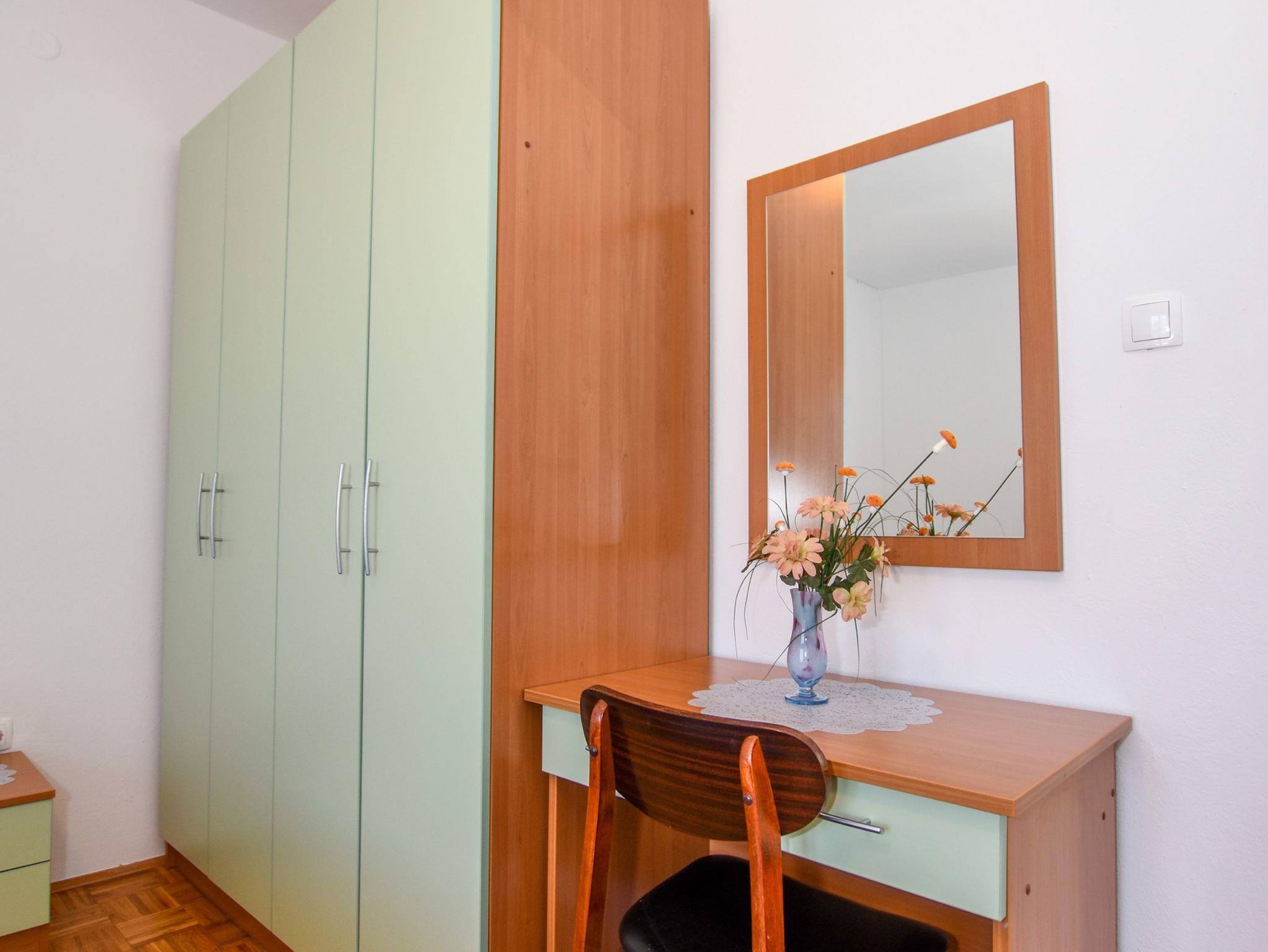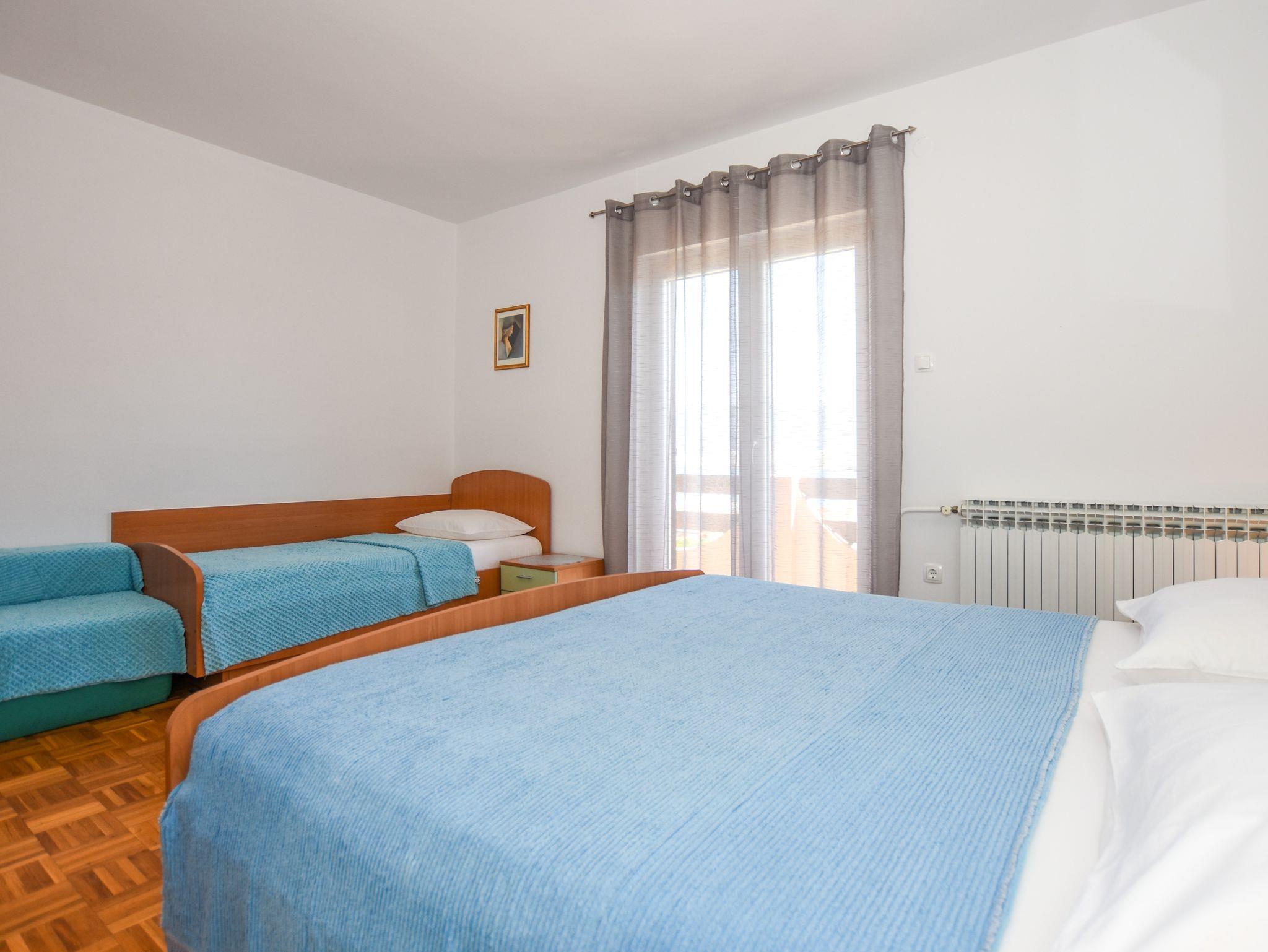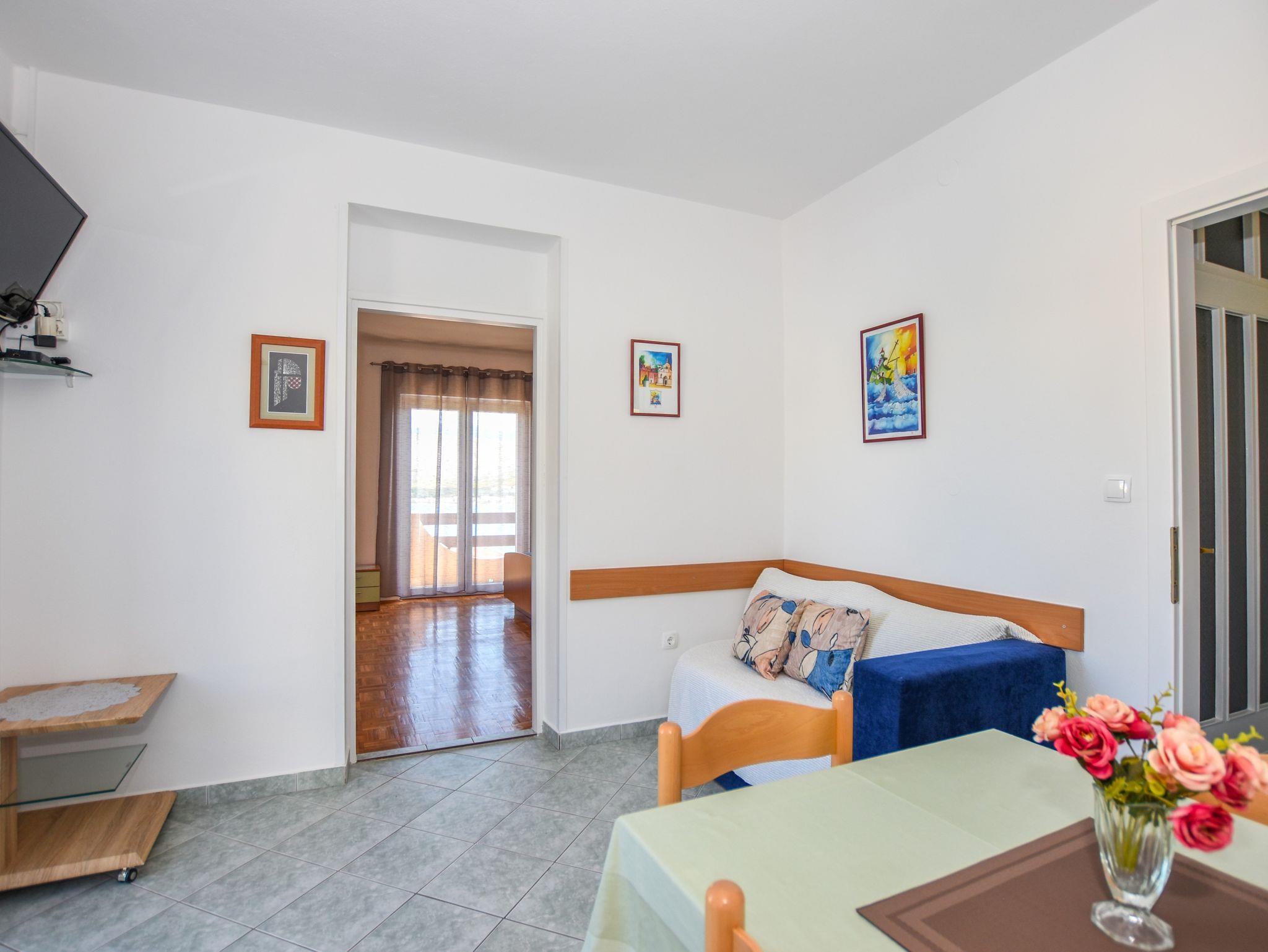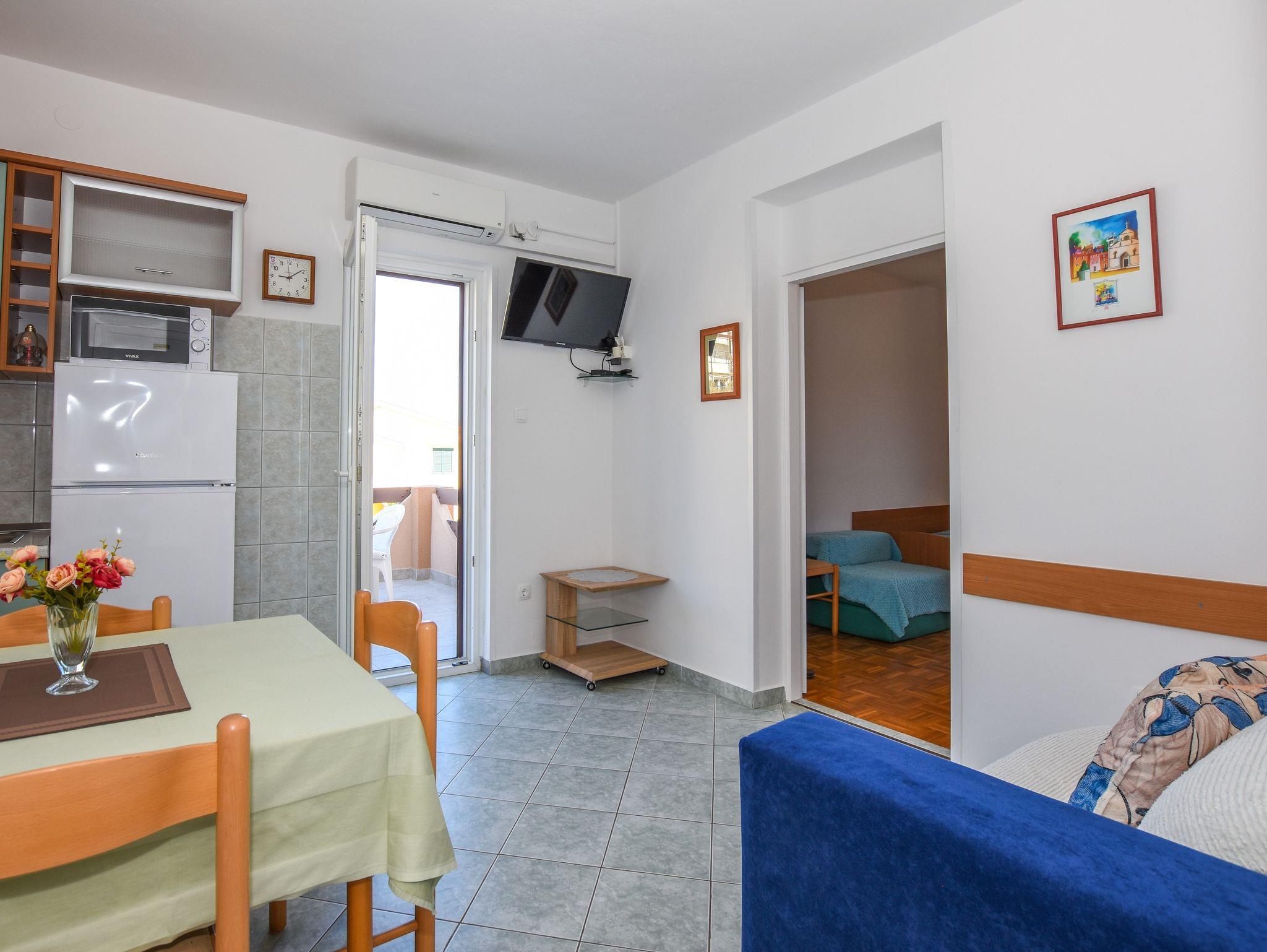 Ferienwohnung bietet Platz für 3 Gäste. Die Betten sind in Schlafzimmern, die es 1 gibt, innerhalb einer Gesamtfläche von 34m2, angeordnet. Die Gäste haben eine eigene Terrasse zur Verfügung, auf der sie in warmen Sommernächten genießen können. Das Apartment bietet Meerblick. Es ist erlaubt, Speisen auf dem Gemeinschafts-Grill vorzubereiten. IM PREIS INBEGRIFFEN: Kurtaxe, Endreinigung, Klimatisierung, Zentralheizung, Parkplatz, Internet, Kinderbett, Bügeleisen, Bügelbrett, Föhn. VERBINDLICHE ZUSÄTZLICHE KOSTEN: Aufzahlung für Kurzaufenthalte (prozentualer Zuschlag pro Nächtigungsanzahl: 30% - 1, 20% - 2, 10% - 3). UNVERBINDLICHE ZUSÄTZLICHE KOSTEN: Wäschewaschen (2,00 € Waschen). Die Verfügbarkeit zusätzlicher Dienstleistungen in Ihrem reservierten Termin und die Preise derselben (falls nicht aufgeführt) müssen im Voraus überprüft werden. Zusätzliche Dienstleistungen die in der Zahlungsaufforderung nicht aufgeführt sind werden direkt beim Vermieter bezahlt, angenommen der Gast nutzt auch diese. Ermäßigung auf den Grundpreis: Gratistag 21=19 (bei einem Aufenthalt von 21 Tagen oder mehr erhalten Sie 2 Gratistage für den Aufenthalt bis 31.12.26).