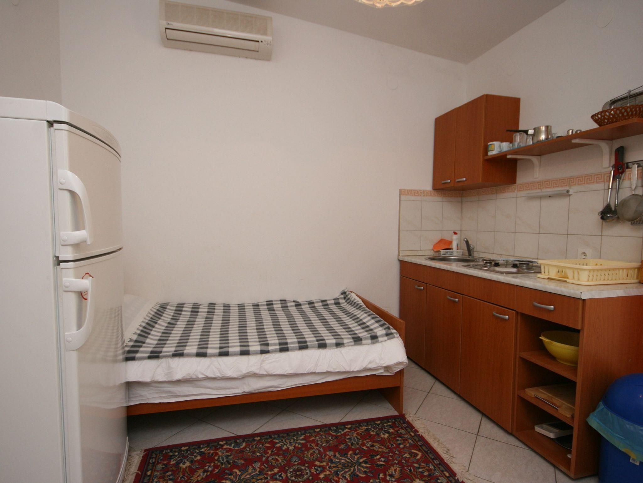 Ferienwohnung bietet Platz für 3 Gäste. Die Betten sind in Schlafzimmern, die es 1 gibt, und in Esszimmer, innerhalb einer Gesamtfläche von 27m2, angeordnet. Die Gäste haben eine eigene Terrasse zur Verfügung, auf der sie in warmen Sommernächten genießen können. Das Apartment bietet Meerblick. Es ist erlaubt, Speisen auf dem Gemeinschafts-Grill vorzubereiten. In der Unterkunftseinheit besteht die Möglichkeit des Mitbringens von Haustieren gegen Aufpreis. Unterkunftseinheit hat Räume, die von dem Rest der Einheit abgetrennt werden. IM PREIS INBEGRIFFEN: Kurtaxe, Endreinigung, Parkplatz, Internet, Föhn. UNVERBINDLICHE ZUSÄTZLICHE KOSTEN: Klimatisierung (5,00 € pro Nacht), Wäschewaschen (3,00 € Waschen), Haustiere (8,00 € pro Nacht). Die Verfügbarkeit zusätzlicher Dienstleistungen in Ihrem reservierten Termin und die Preise derselben (falls nicht aufgeführt) müssen im Voraus überprüft werden. Zusätzliche Dienstleistungen die in der Zahlungsaufforderung nicht aufgeführt sind werden direkt beim Vermieter bezahlt, angenommen der Gast nutzt auch diese. Ermäßigung auf den Grundpreis: Gratistag 14=13 (bei einem Aufenthalt von 14 Tagen oder mehr erhalten Sie einen Gratistag für den Aufenthalt bis 31.12.26).